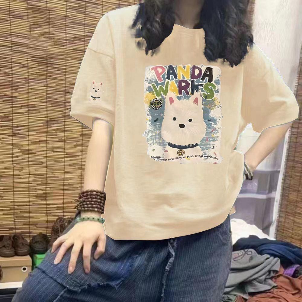 통통녀 플러스 사이즈 300kg 면화 여성 티셔츠 짧은 소매 여름 새로운 약간 뚱뚱한 느슨한 슬림 작은 코트 조수스토어 가기