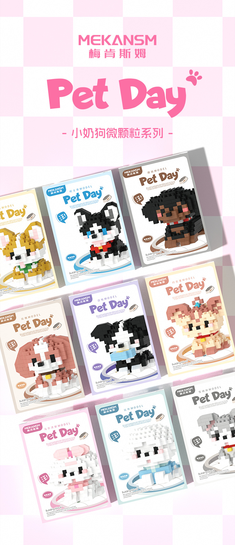 새로운 고양이 개 동물 허스키 오렌지 고양이 퍼즐 빌딩 블록 조립 어린이 날 장난감 소녀 선물 도매스토어 가기