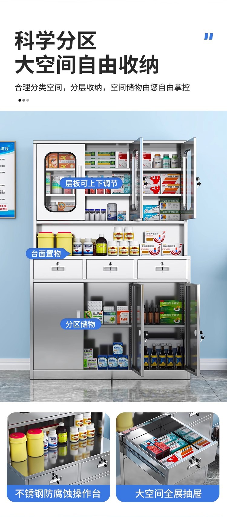 • 304 스테인레스 스틸 약품 캐비닛