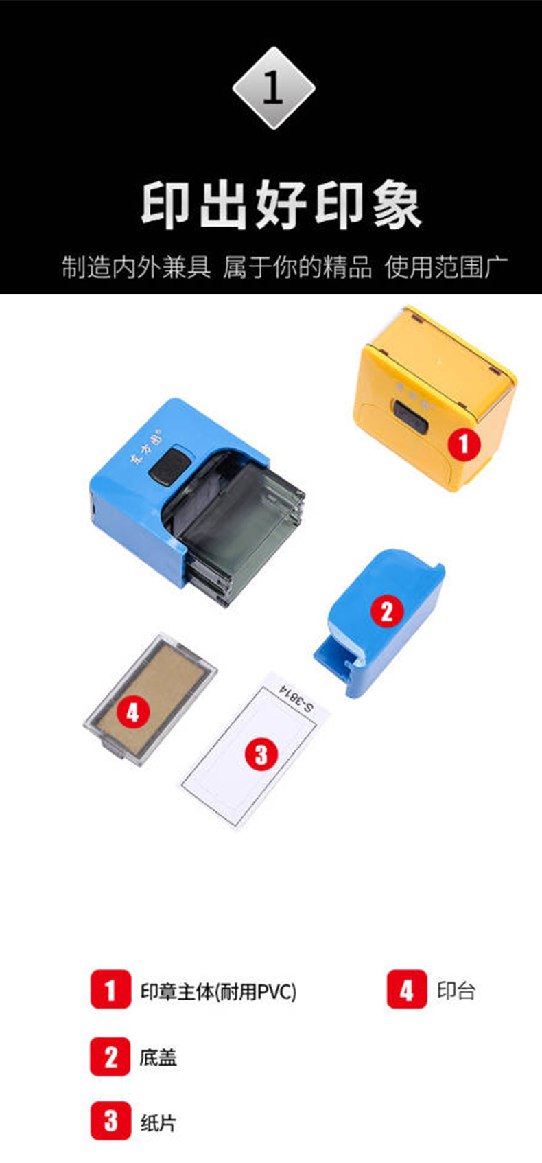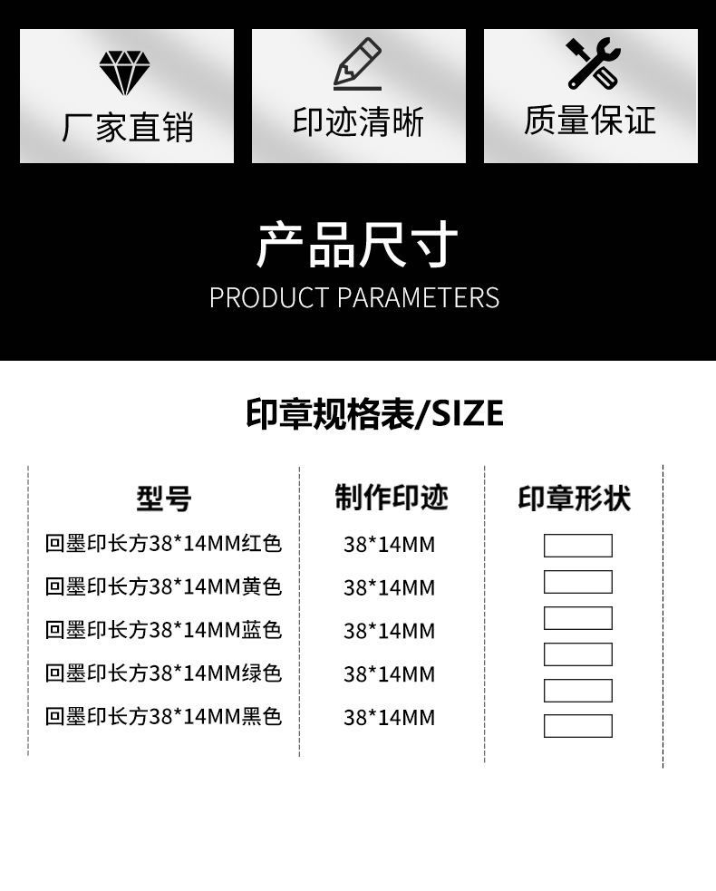 동양 그림 플립 씰 컬러 평면 씰 직사각형 38*14MM 백 잉크 씰 소재 도매스토어 가기