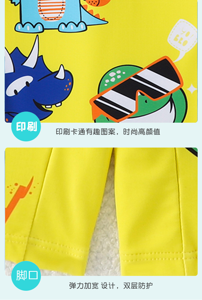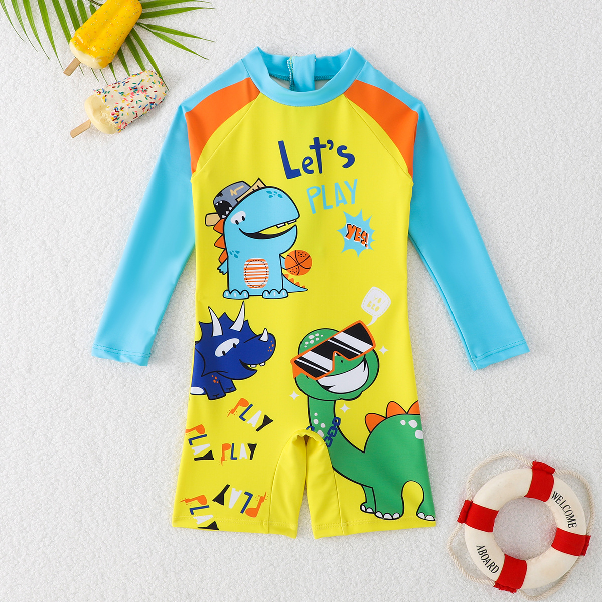 어린이 수영복 소년 긴팔 점프수트 2025 신상 노란색 공룡 프린트 지퍼 수영복 소년 수영복스토어 가기