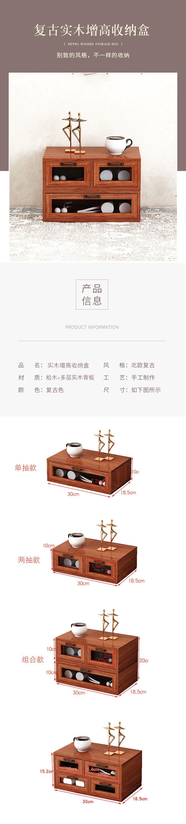 책상 빈티지 스토리지 박스 데스크탑 화장품 캐비닛 나무 컴퓨터 높은 랙 사무실 기숙사 데스크탑 랙스토어 가기