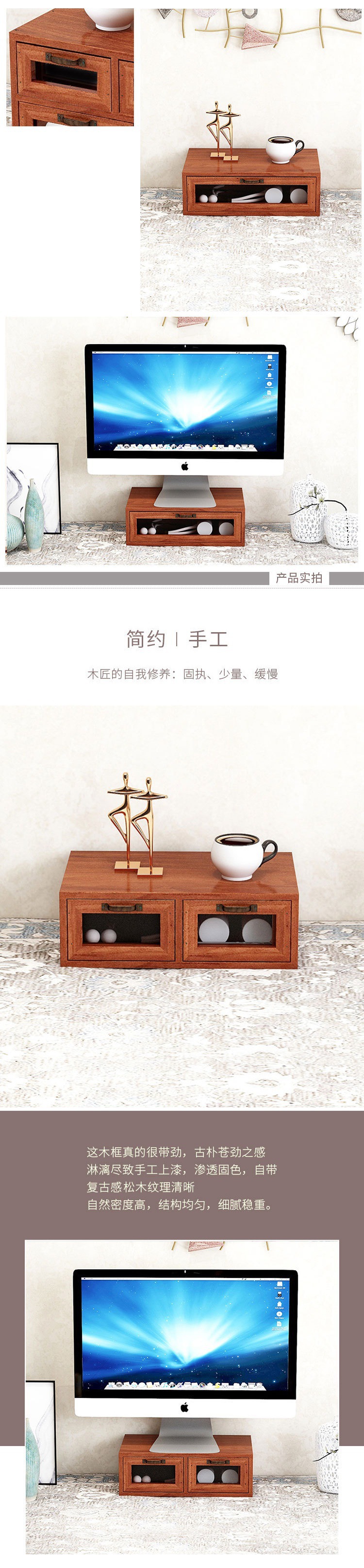 책상 빈티지 스토리지 박스 데스크탑 화장품 캐비닛 나무 컴퓨터 높은 랙 사무실 기숙사 데스크탑 랙
