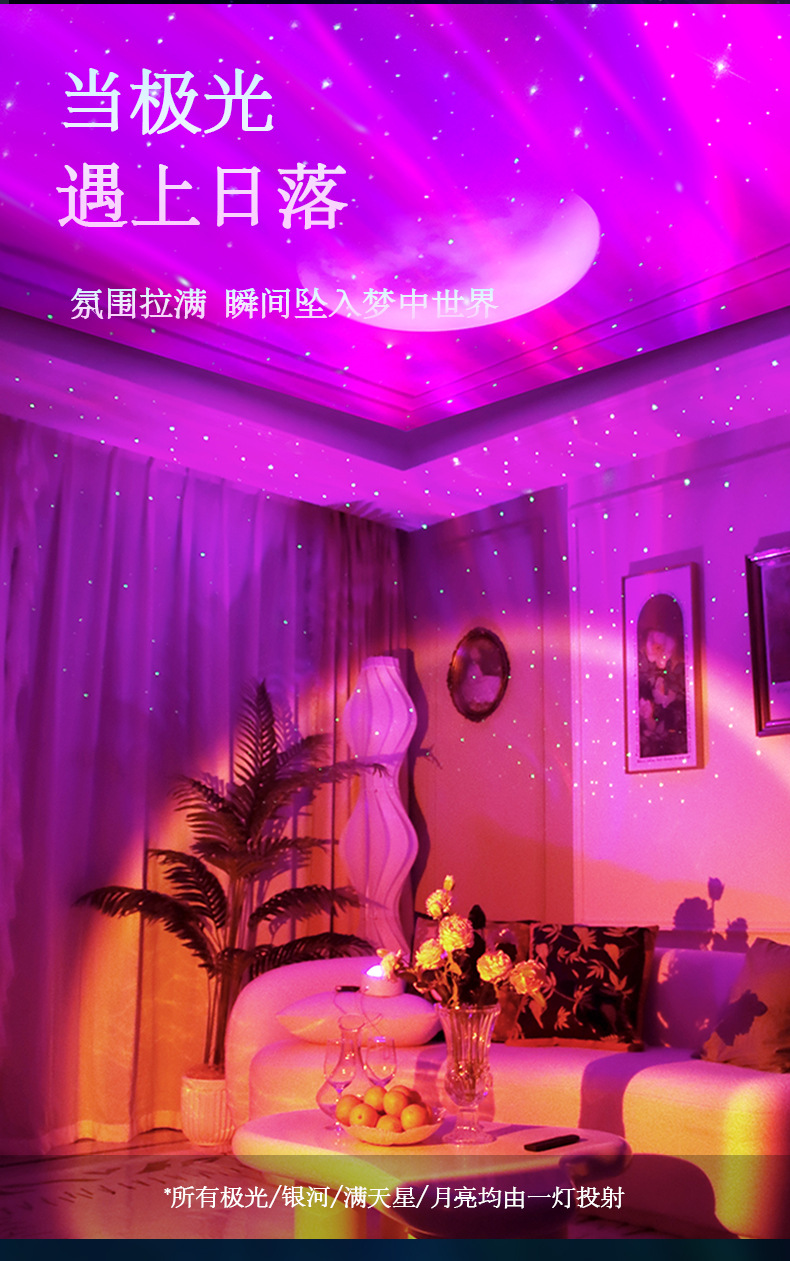 국경 간 별빛 원격 제어 물 파문 침실 분위기와 북극 별빛 라이브 분위기 빛 창조적 인 야간 조명스토어 가기