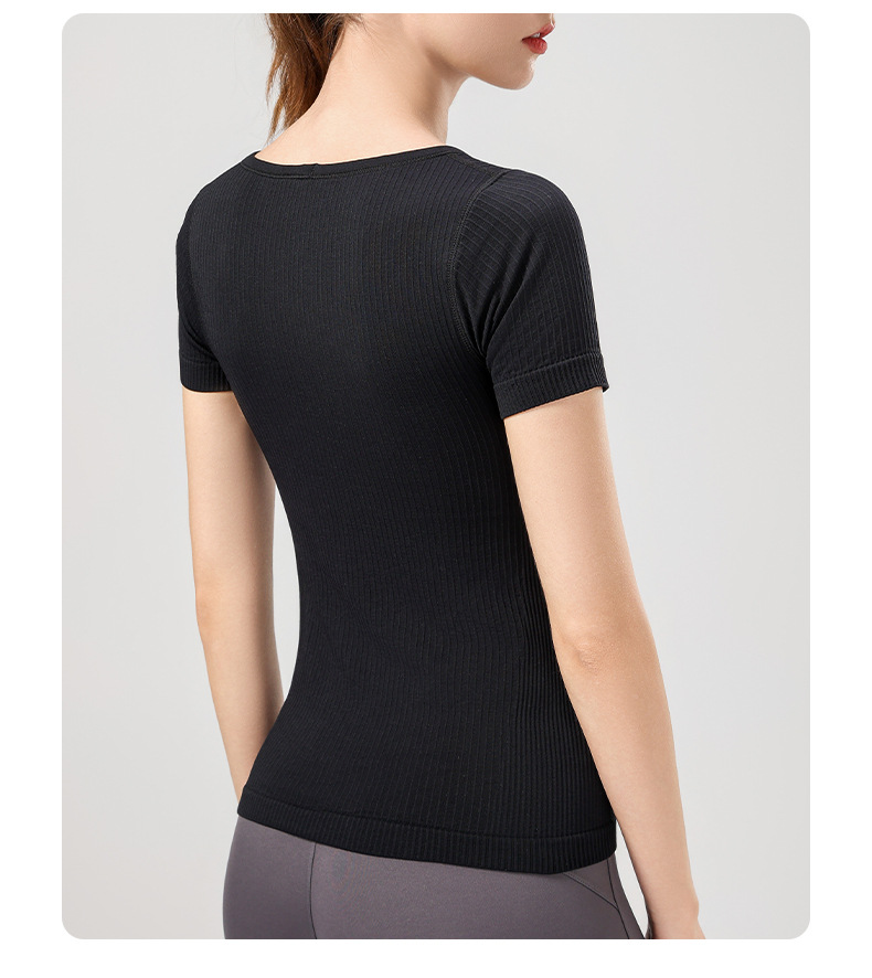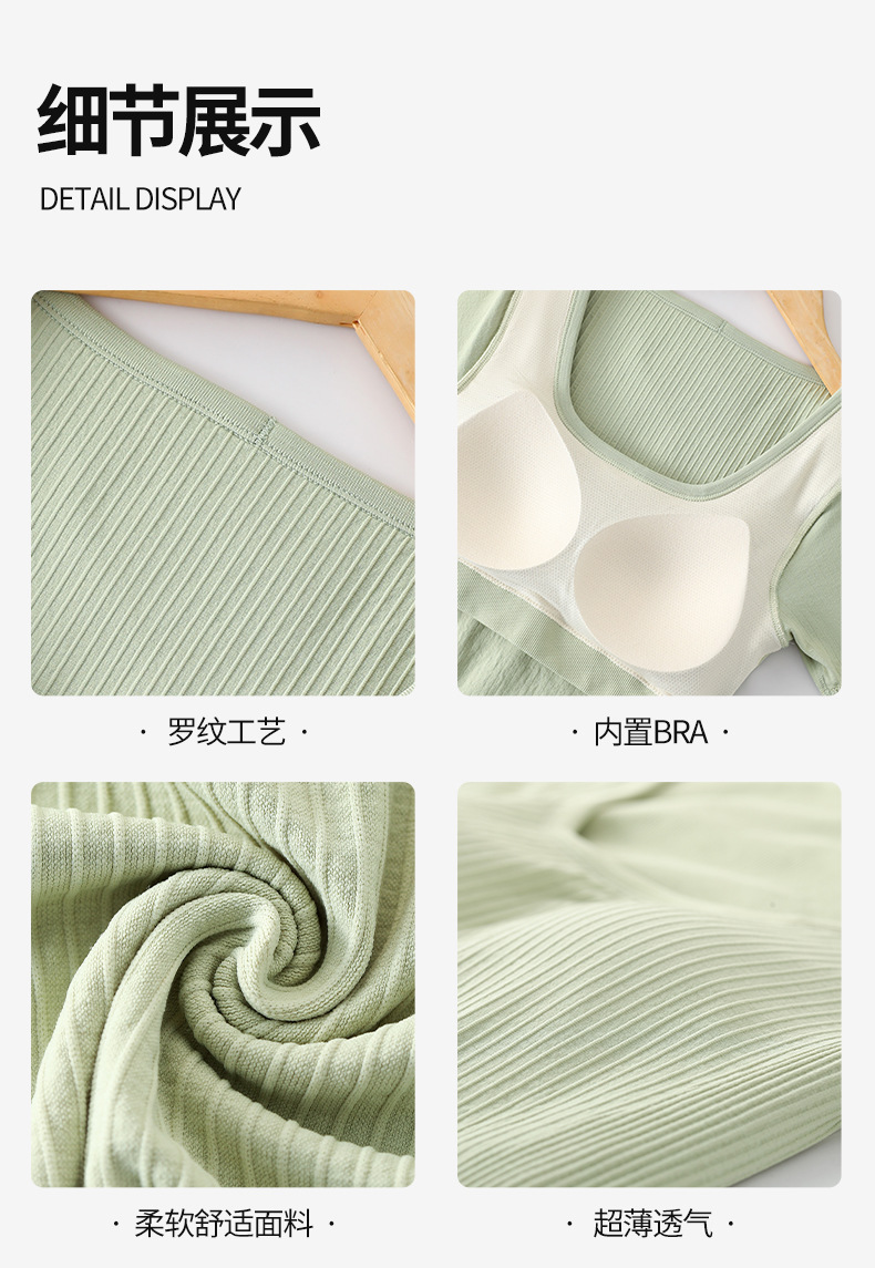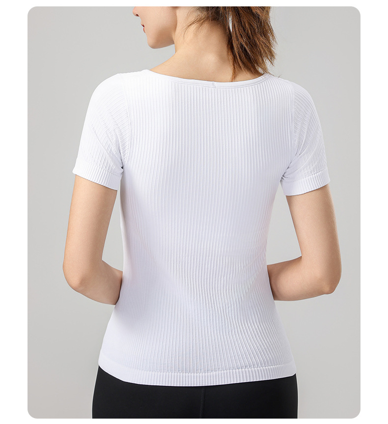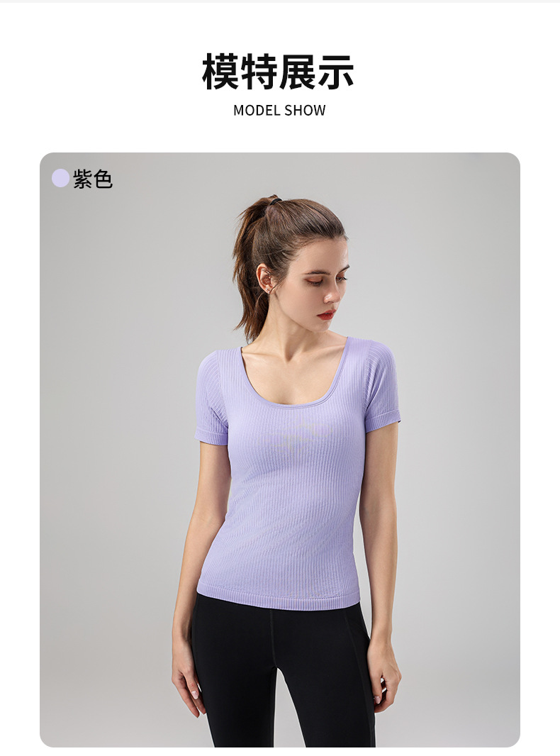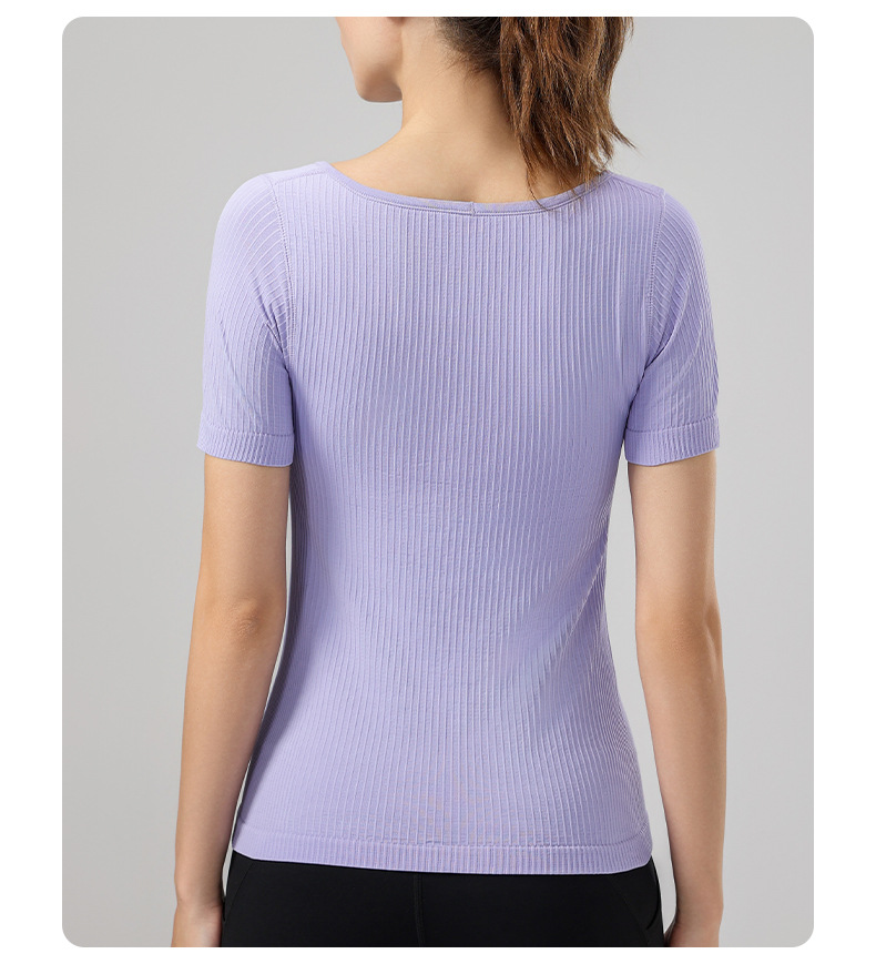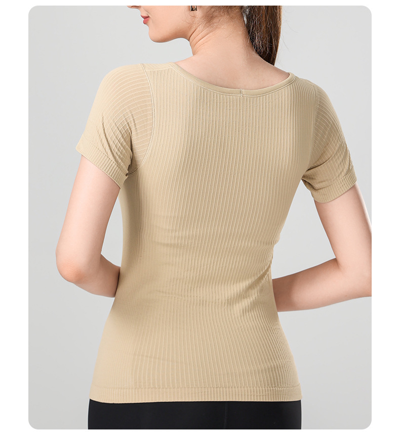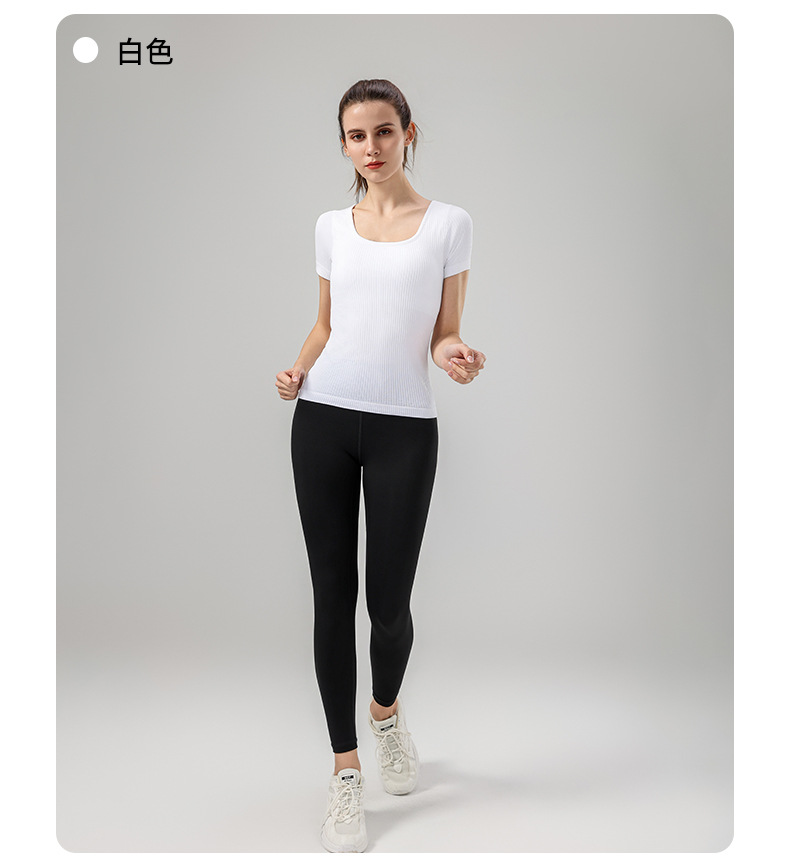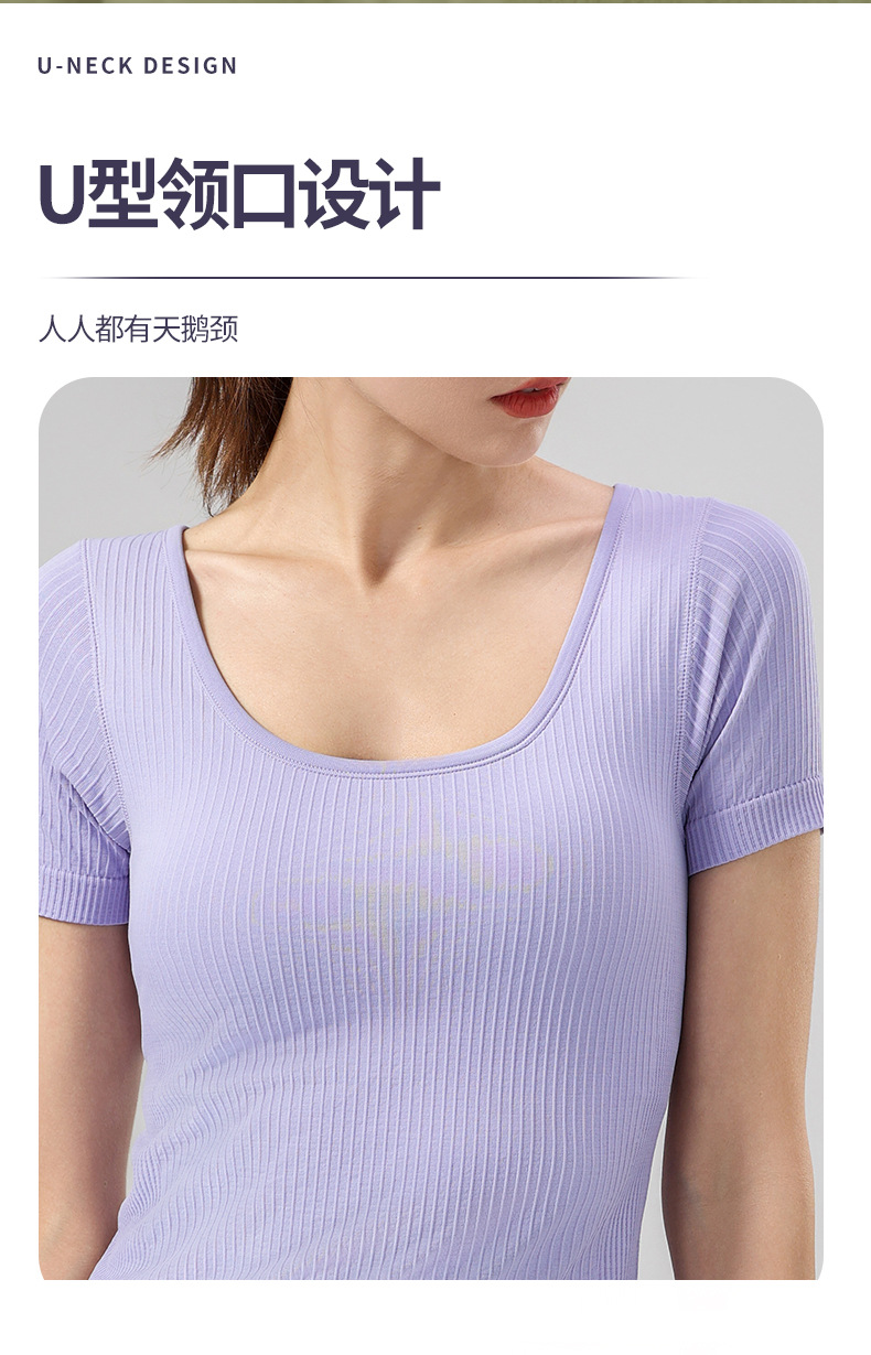 니트 골지 요가복 여성용 반팔 일체형 컵 편안한 고탄성 스포츠 티셔츠 여성용 속건성 피트니스 상의