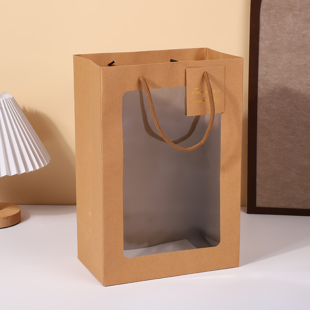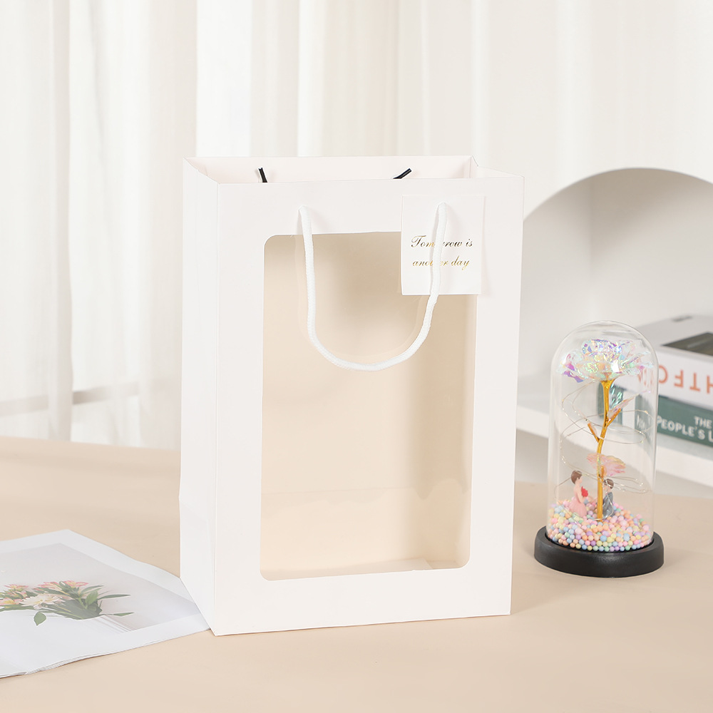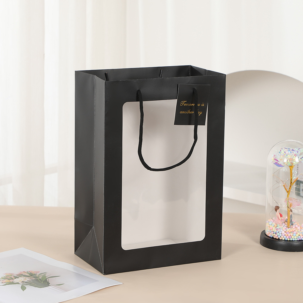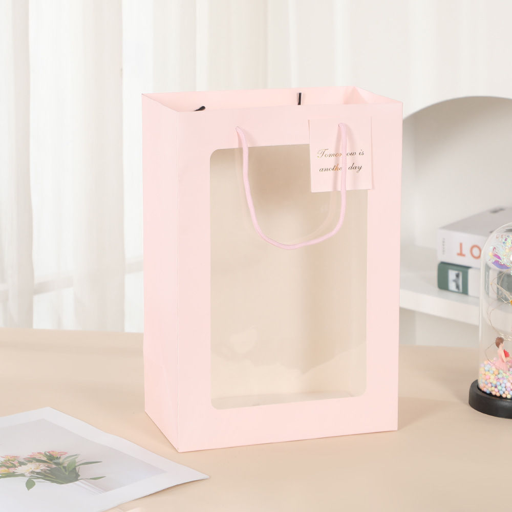 창 가방 재고 투명한 창 핸드백 창조적 인 선물 창 종이 가방 꽃 꽃다발 포장 손 선물 가방스토어 가기