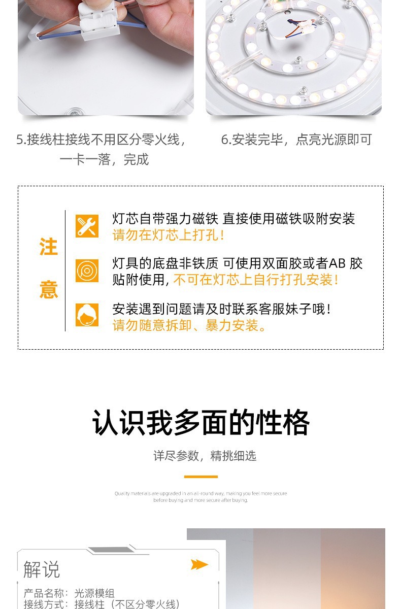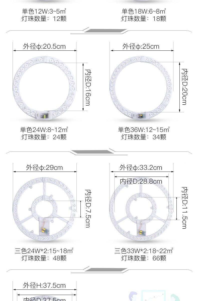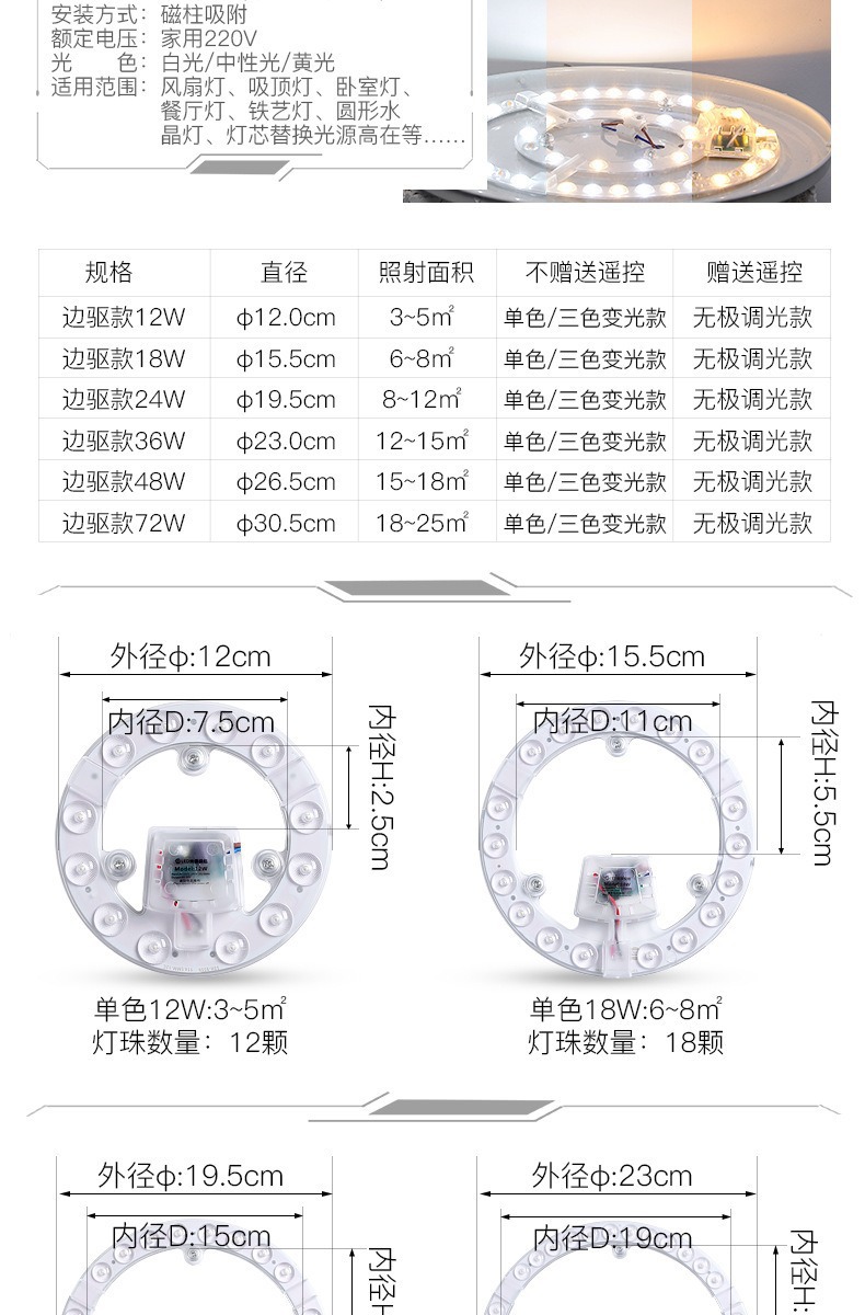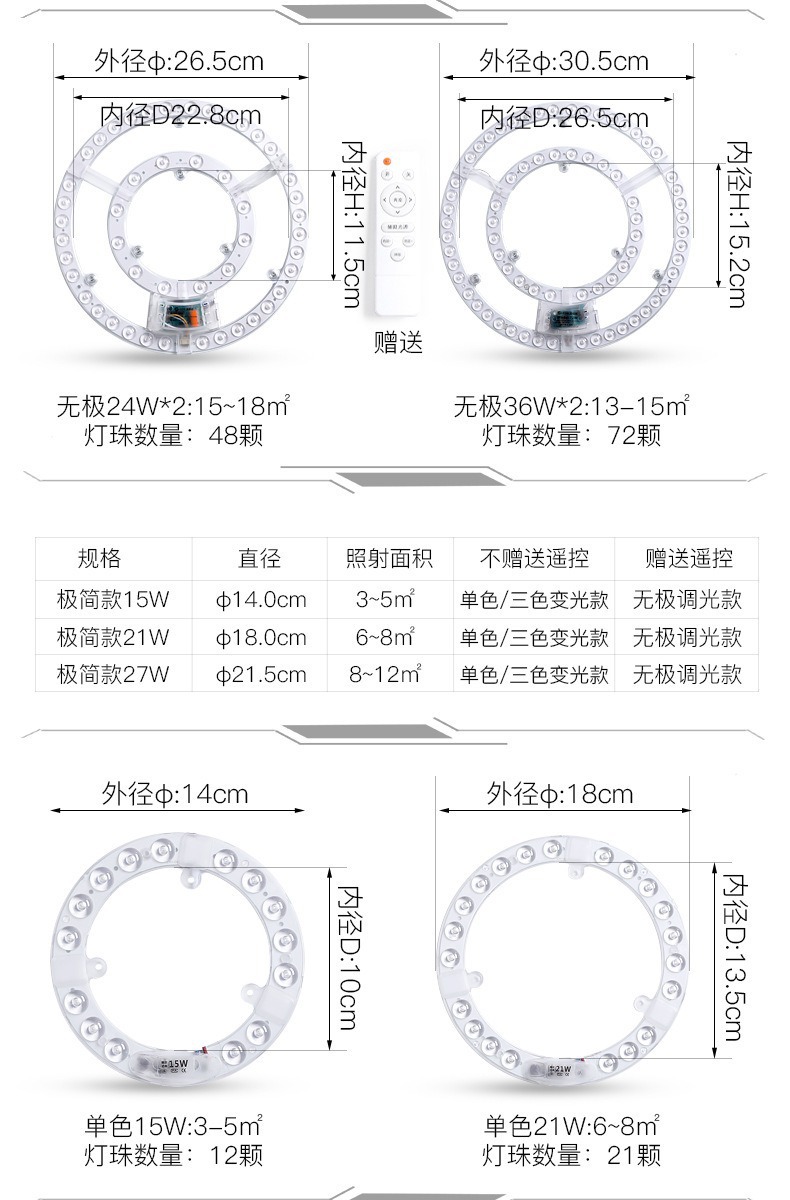 LED 천장 램프 코어 원형 회귀 교체 램프 패널 개조 광원 12W18W24W Acousto-Optic 레이더 유도 램프