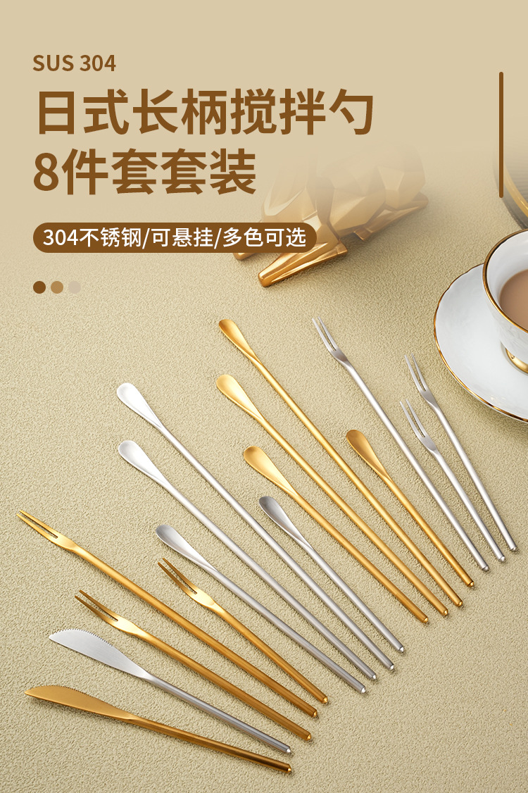 일본 304 스테인레스 스틸 긴 손잡이 아이스 스푼 크리에이티브 바 혼합 스푼 커피 꿀 혼합 스푼 과일 포크