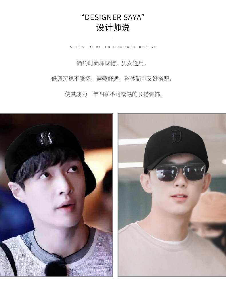 한국 스타일 유행 하이 탑 리어 씰 모자 남자의 새로운 야구 모자 유행 쇼 얼굴 작은 반전 모자 착용 모자 베어 모자스토어 가기