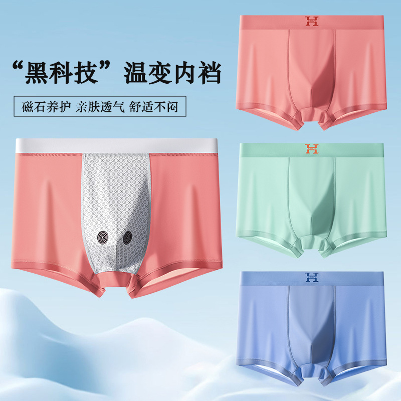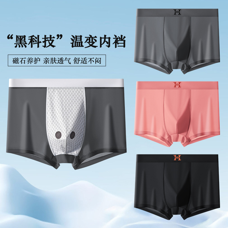 남성 속옷 자석 여름 초박형 통기성 빠른 건조 반바지 원활한 실키 시원한 얼음 실크 복서 바지 도매