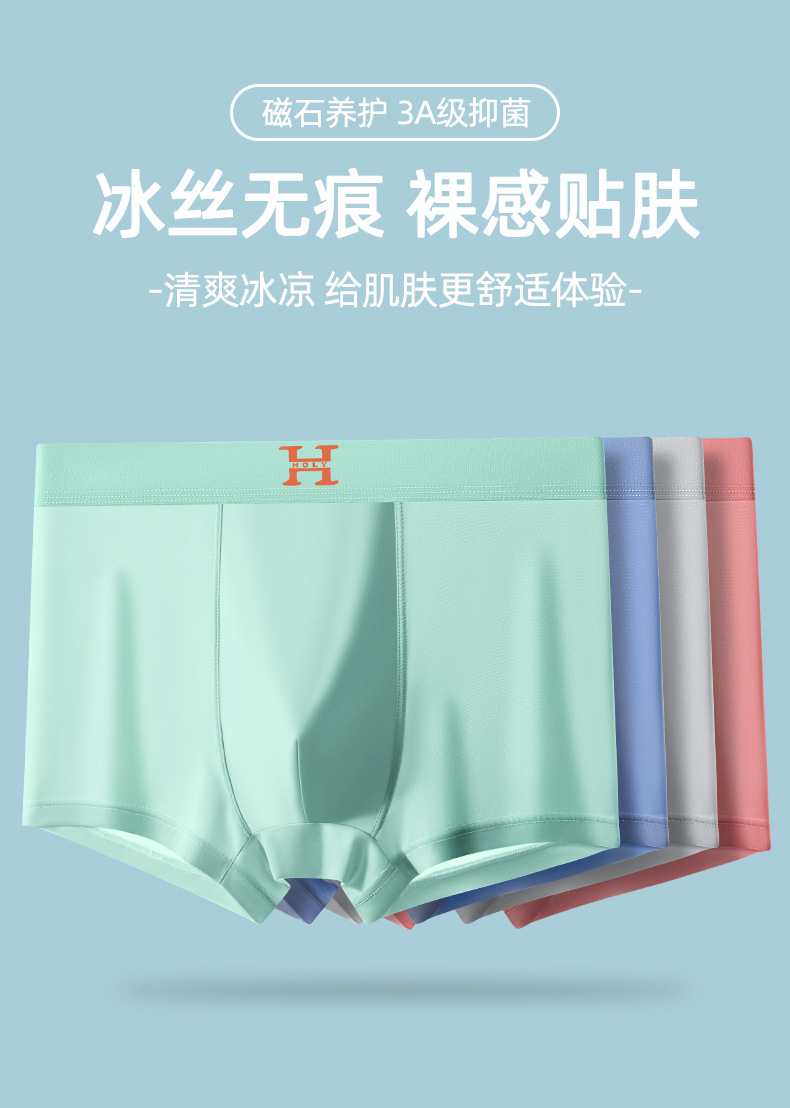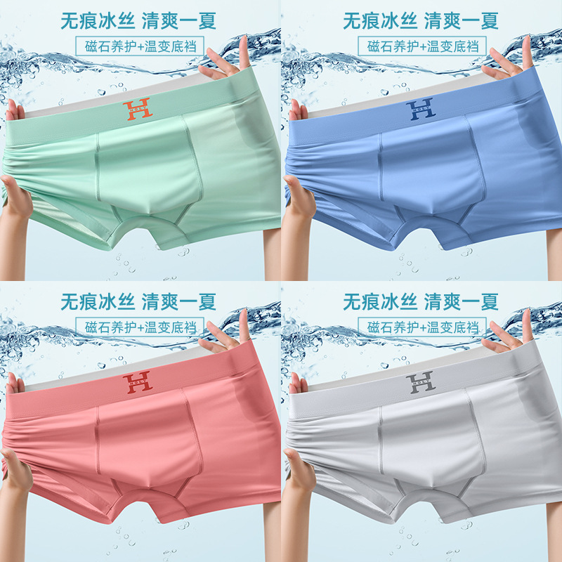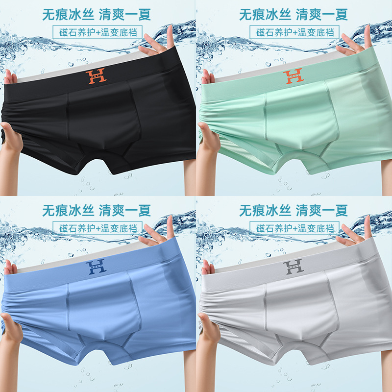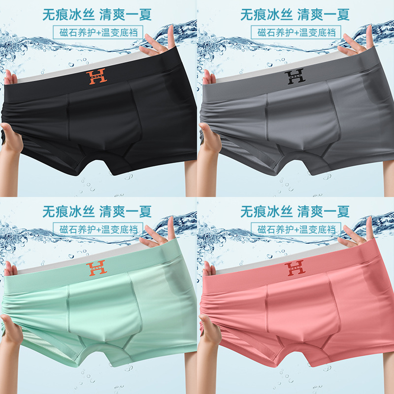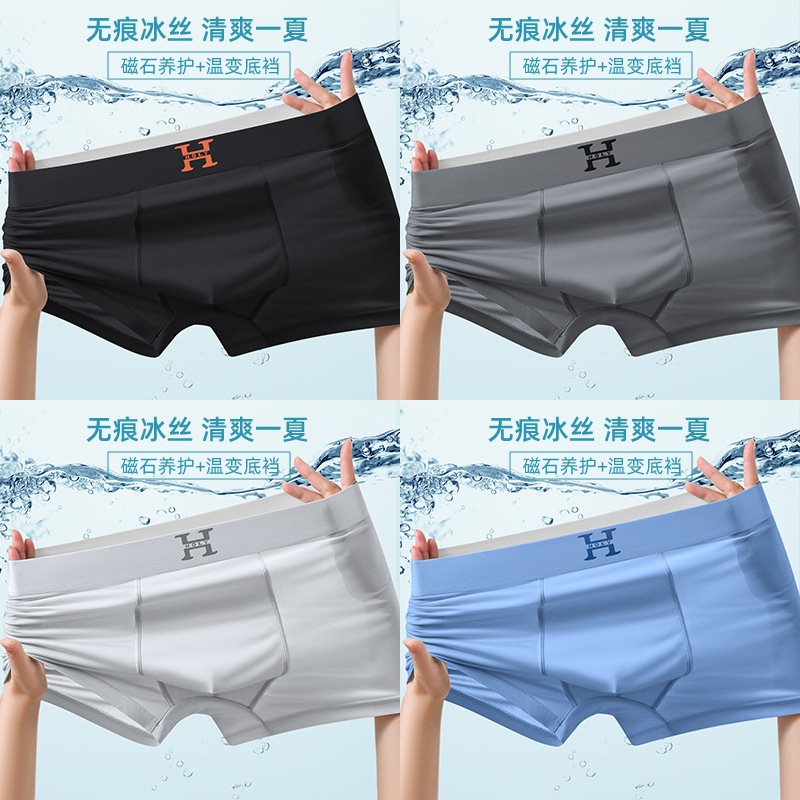 남성 속옷 자석 여름 초박형 통기성 빠른 건조 반바지 원활한 실키 시원한 얼음 실크 복서 바지 도매스토어 가기