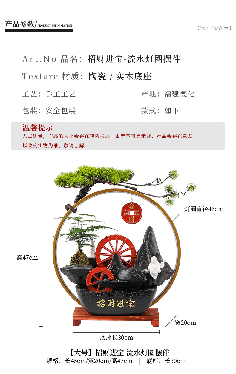 부 만들기 흐르는 물 분수 장식품 순환 물 사무실 거실 바 장식 집들이 새 집을 여는 선물