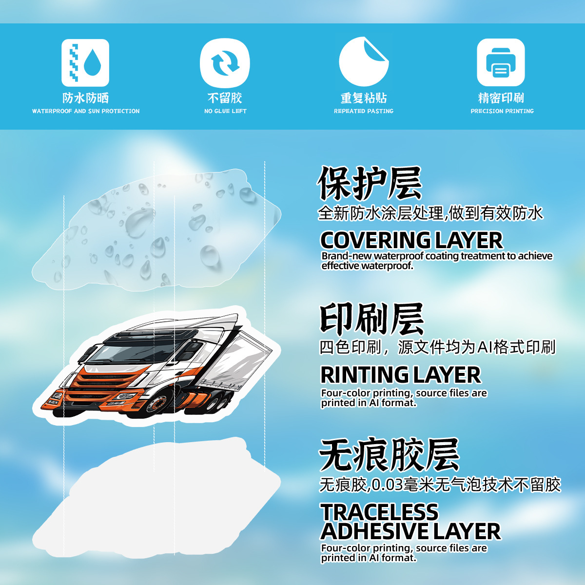 100 장 마스터 트럭 스티커 팩 컴퓨터 수하물 장식 스티커 방수 크리에이티브 Ins 스타일 어린이 스티커