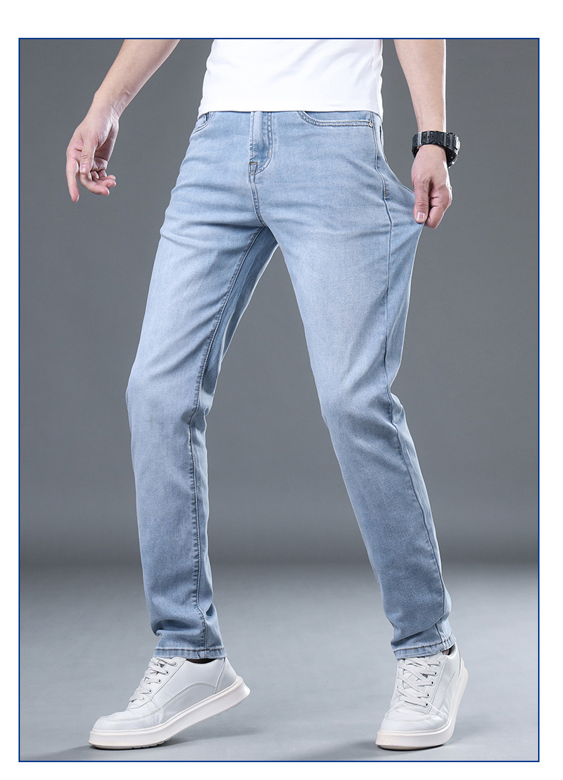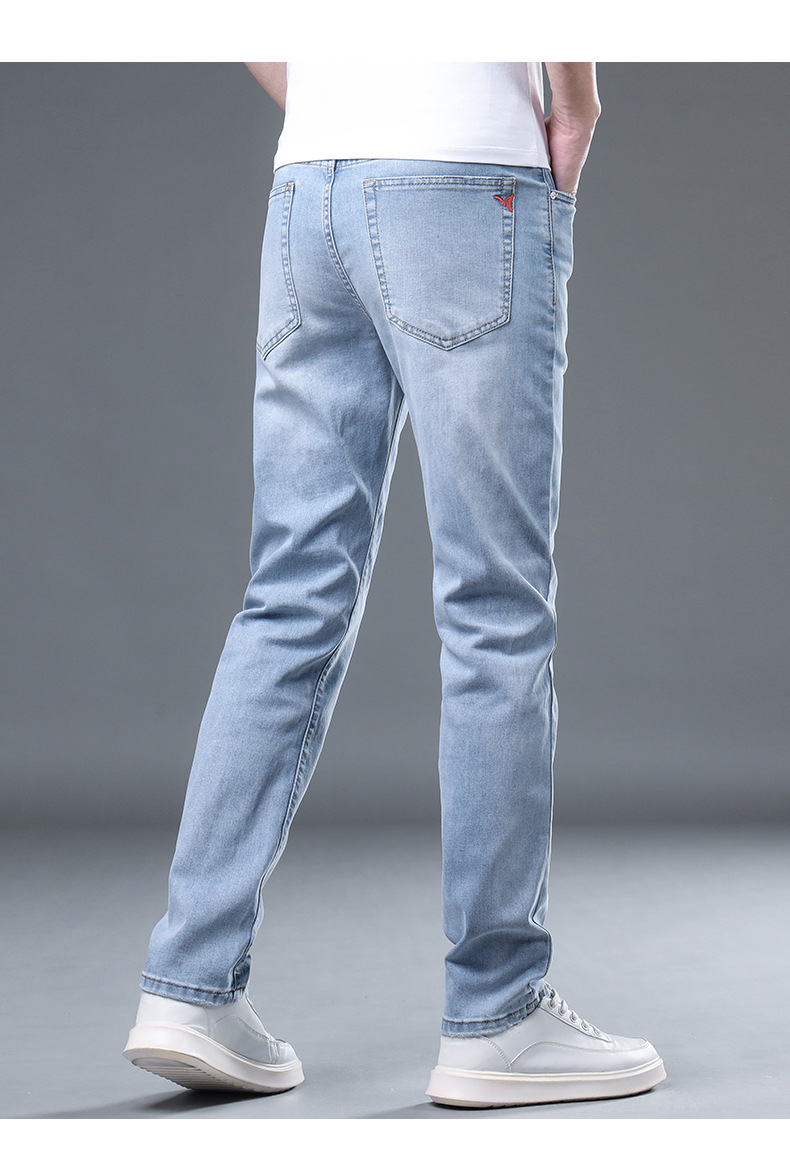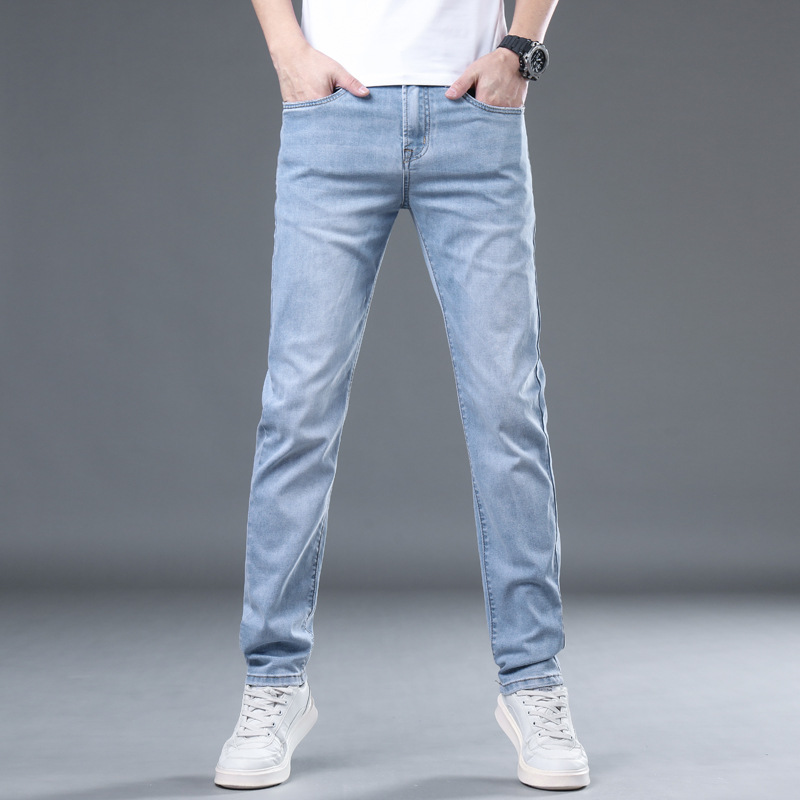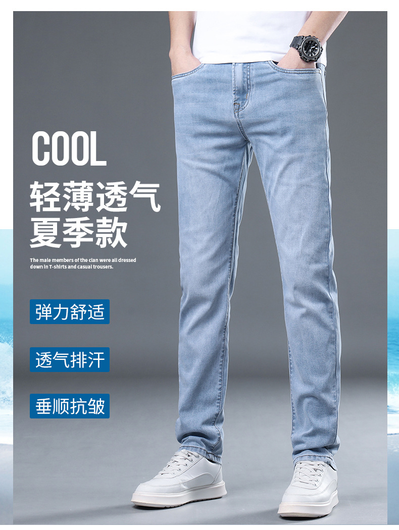 홍콩 아이스 실크 청바지 남성용 봄 여름 얇은 바지 남성용 스트레이트 팬츠 신축성 있는 캐주얼 긴바지 남성용 여름스토어 가기