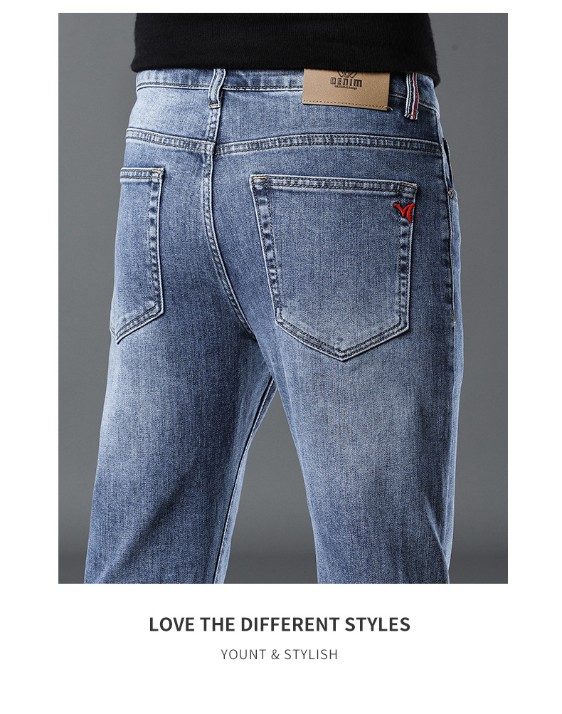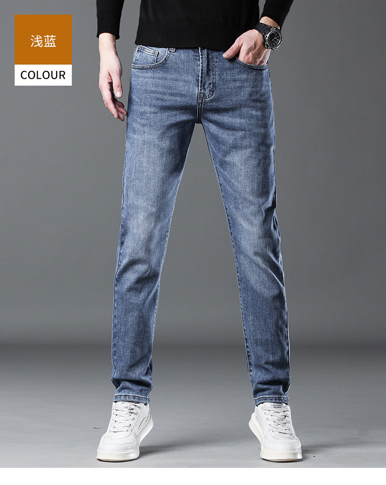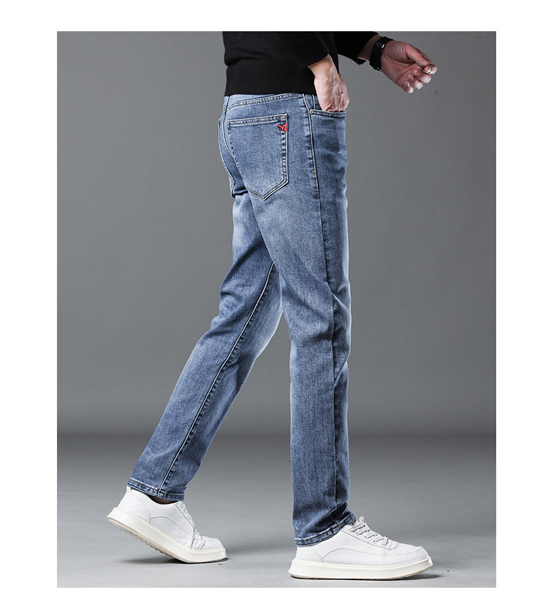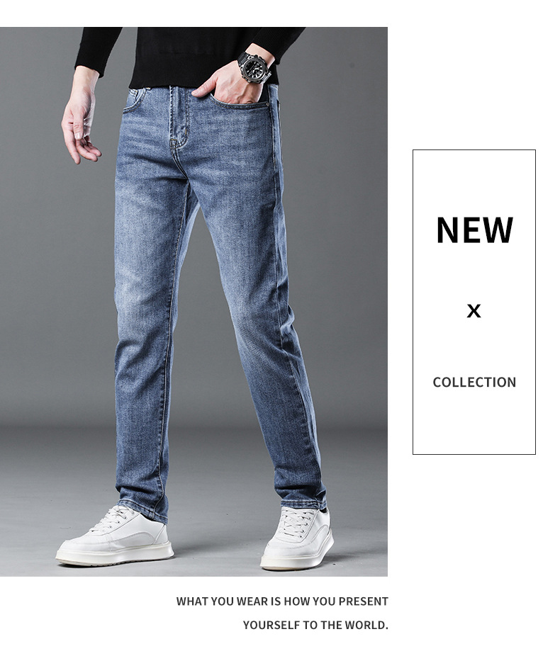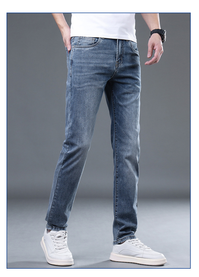 홍콩 아이스 실크 청바지 남성용 봄 여름 얇은 바지 남성용 스트레이트 팬츠 신축성 있는 캐주얼 긴바지 남성용 여름스토어 가기