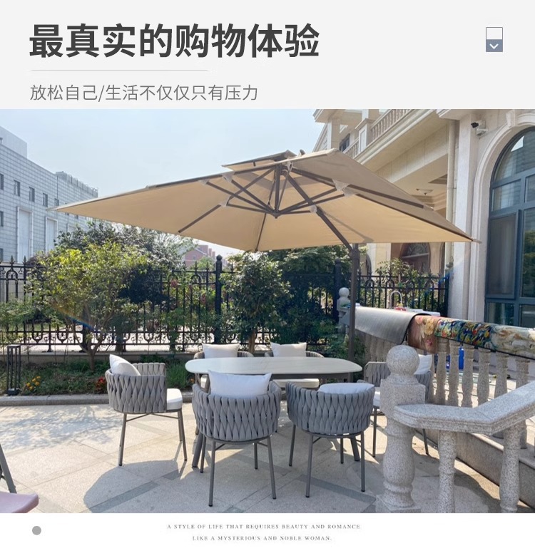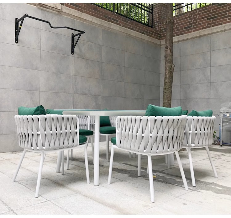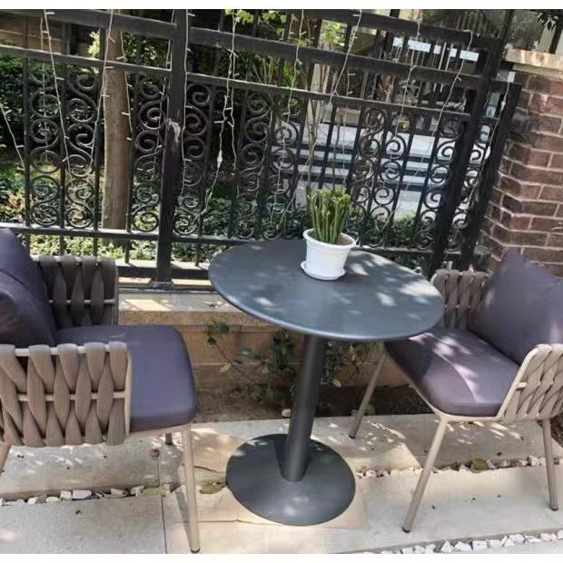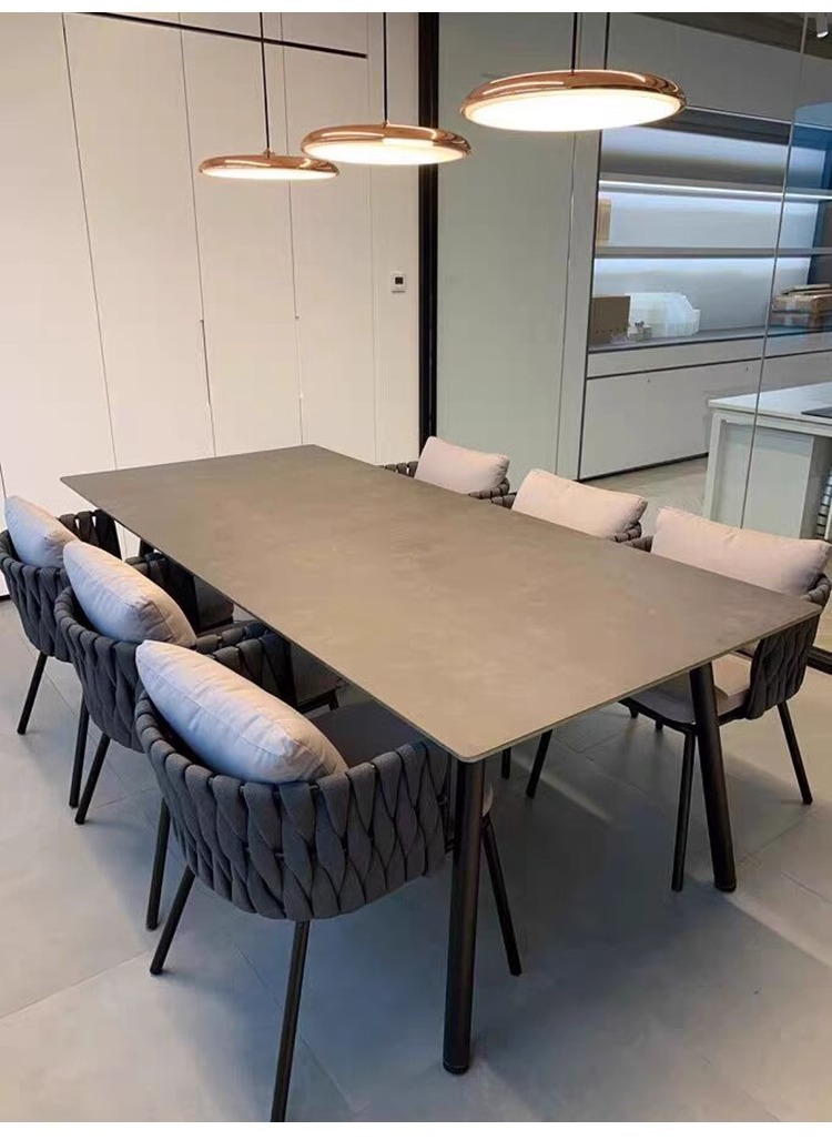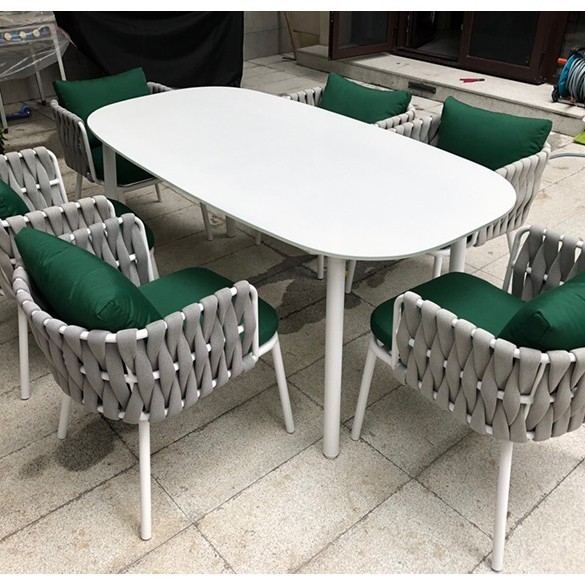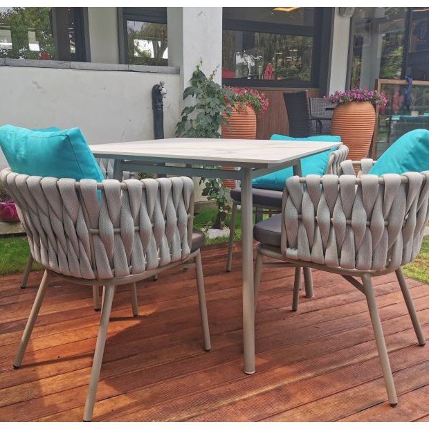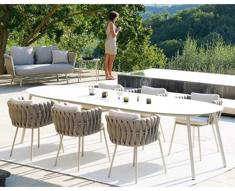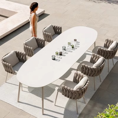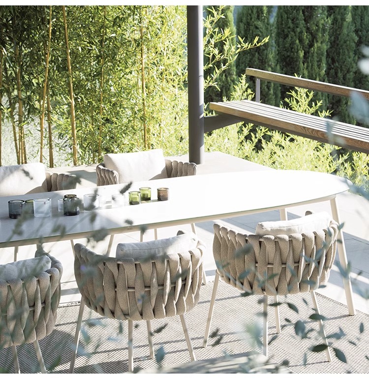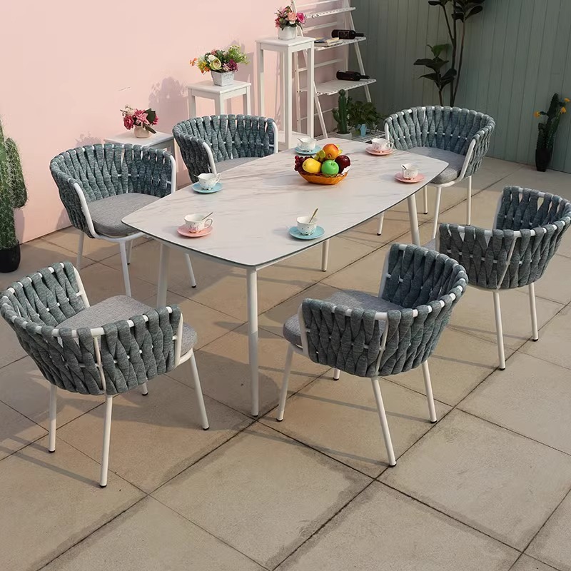 북유럽 스타일 야외 로프 테이블과 의자 빌라 코트야드 정원 야외 등나무 의자 테라스 방수 바위 석판 대리석 식탁 및 의자스토어 가기