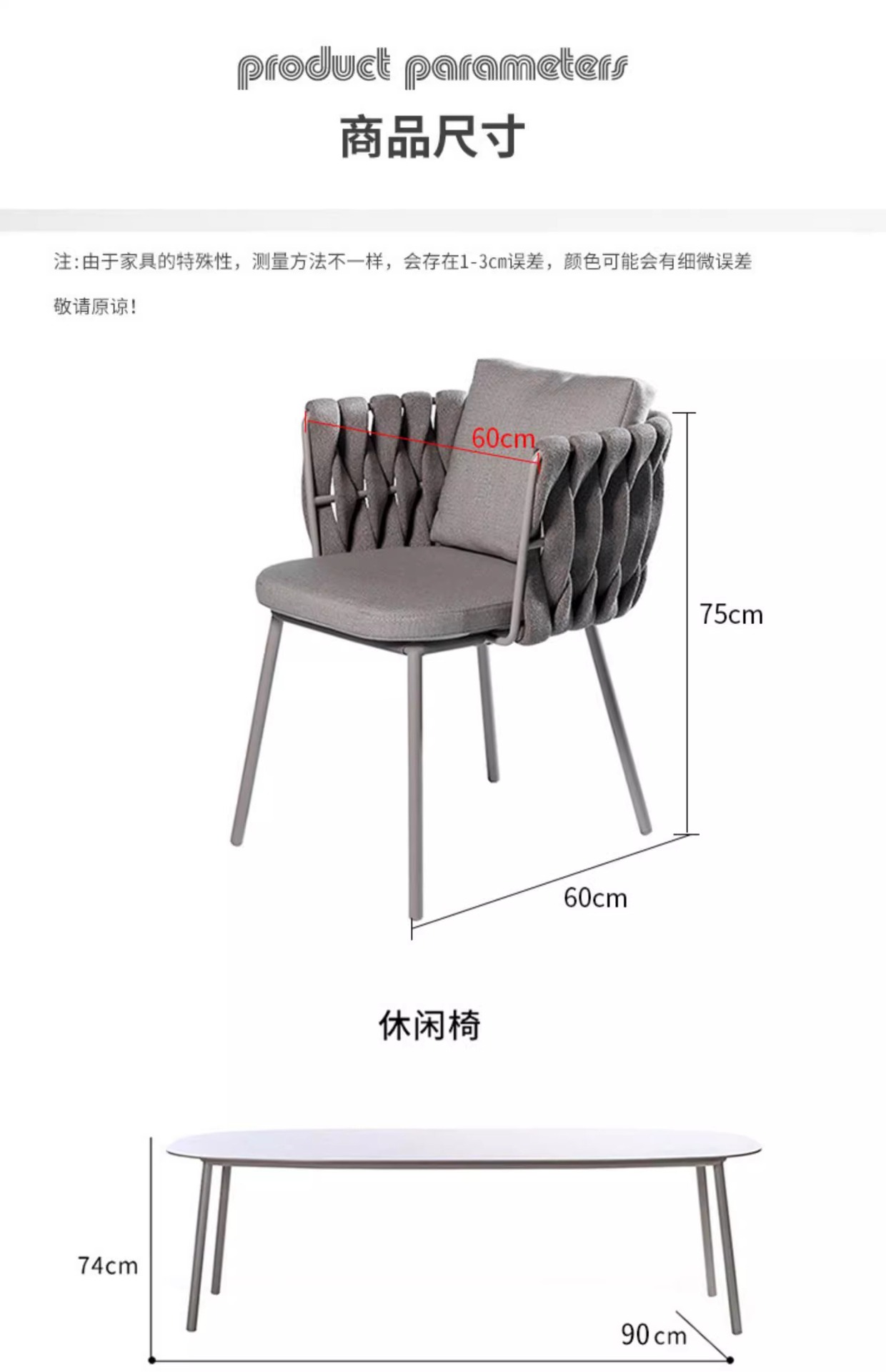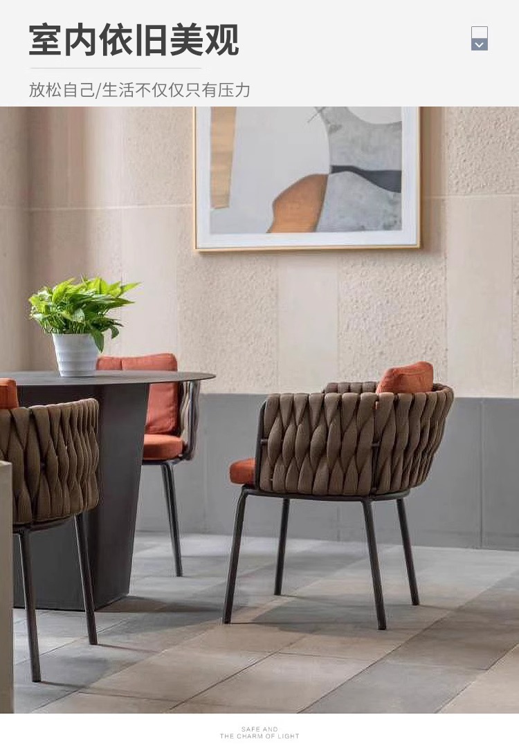 북유럽 스타일 야외 로프 테이블과 의자 빌라 코트야드 정원 야외 등나무 의자 테라스 방수 바위 석판 대리석 식탁 및 의자