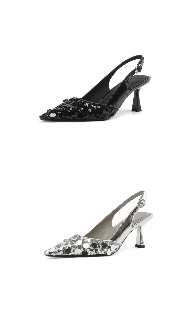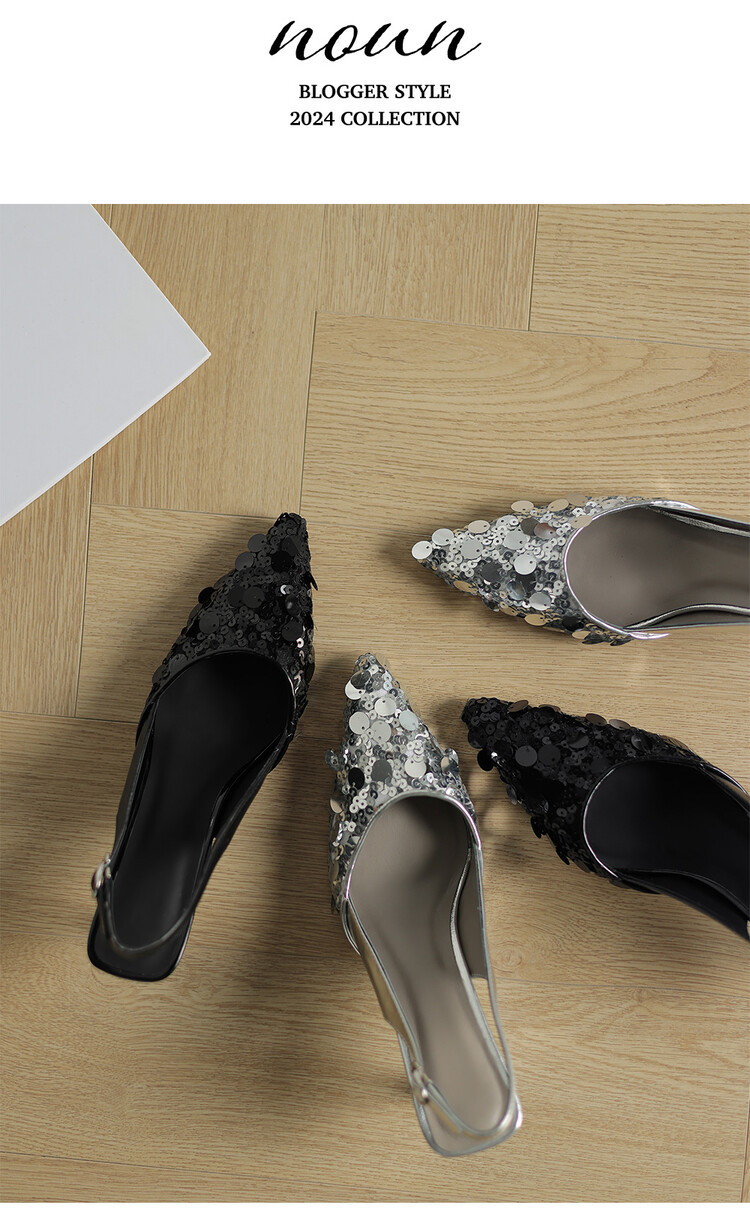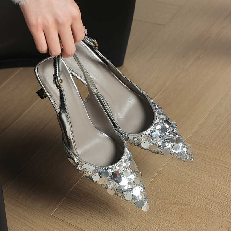 유명 스타일 속편 뾰족한 샌들 여성용 여름 스틸레토 하이힐 하이힐, 탑 및 빈 발 2024 새로운 여성 신발
