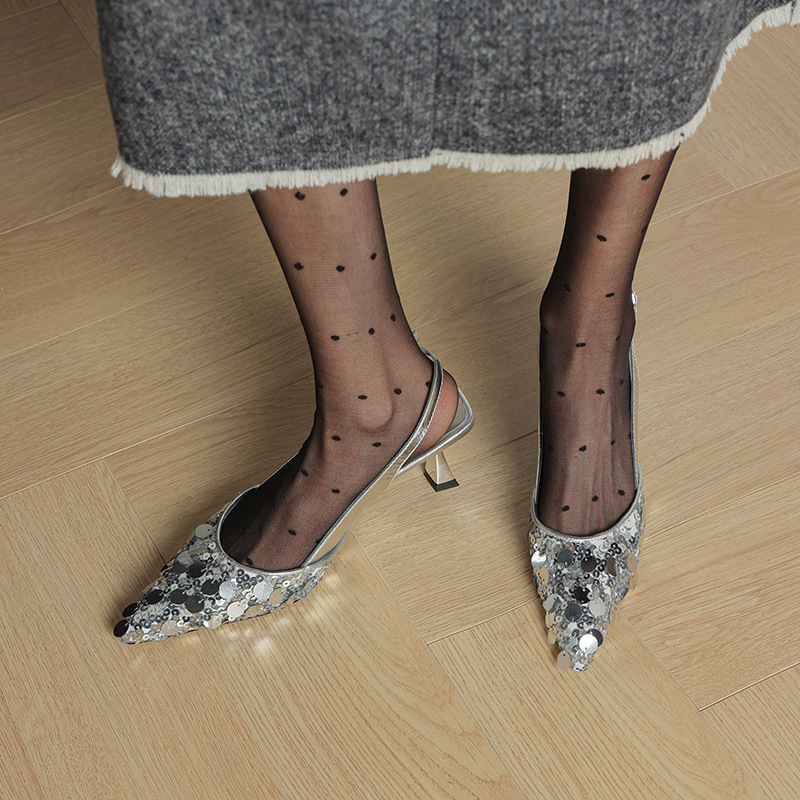 유명 스타일 속편 뾰족한 샌들 여성용 여름 스틸레토 하이힐 하이힐, 탑 및 빈 발 2024 새로운 여성 신발스토어 가기