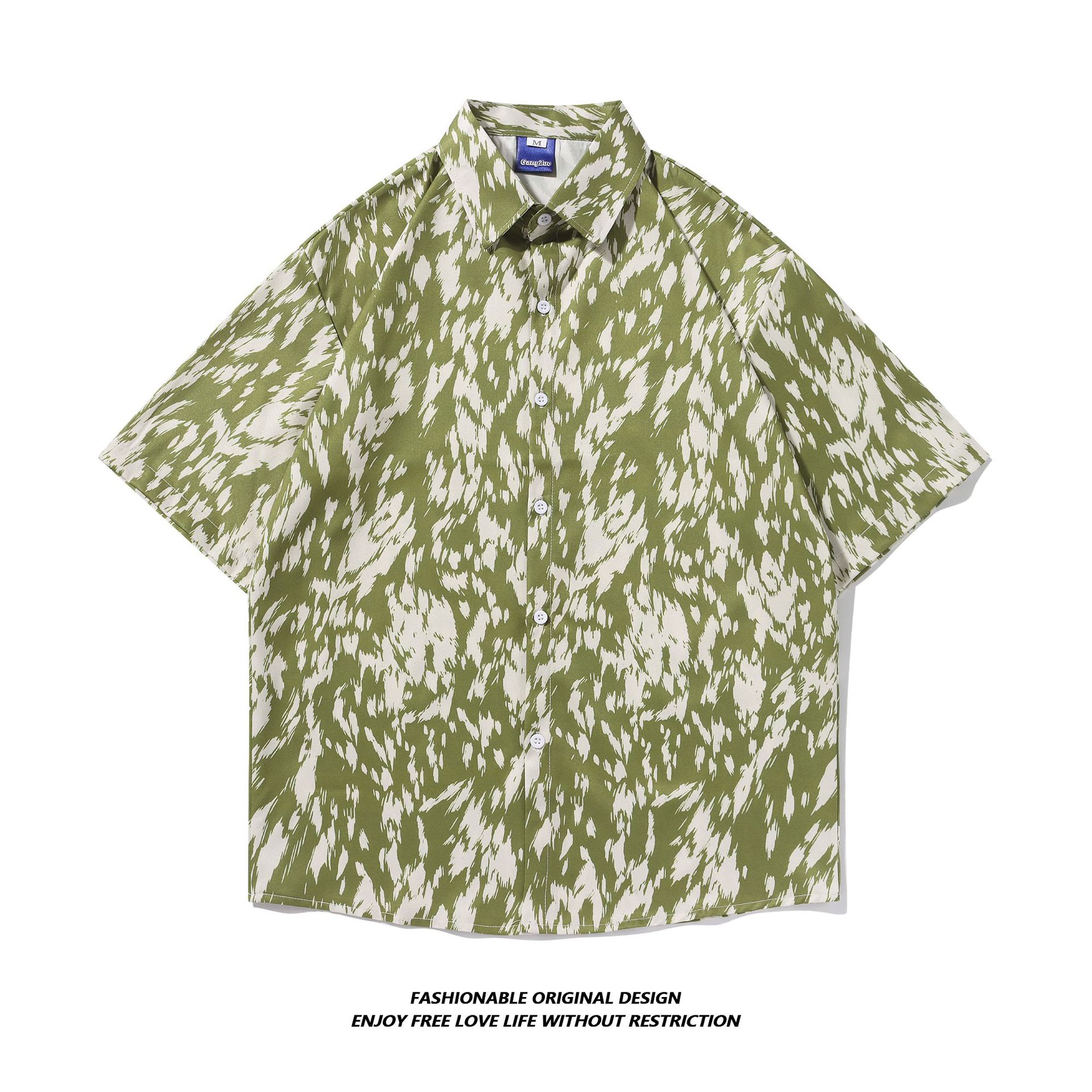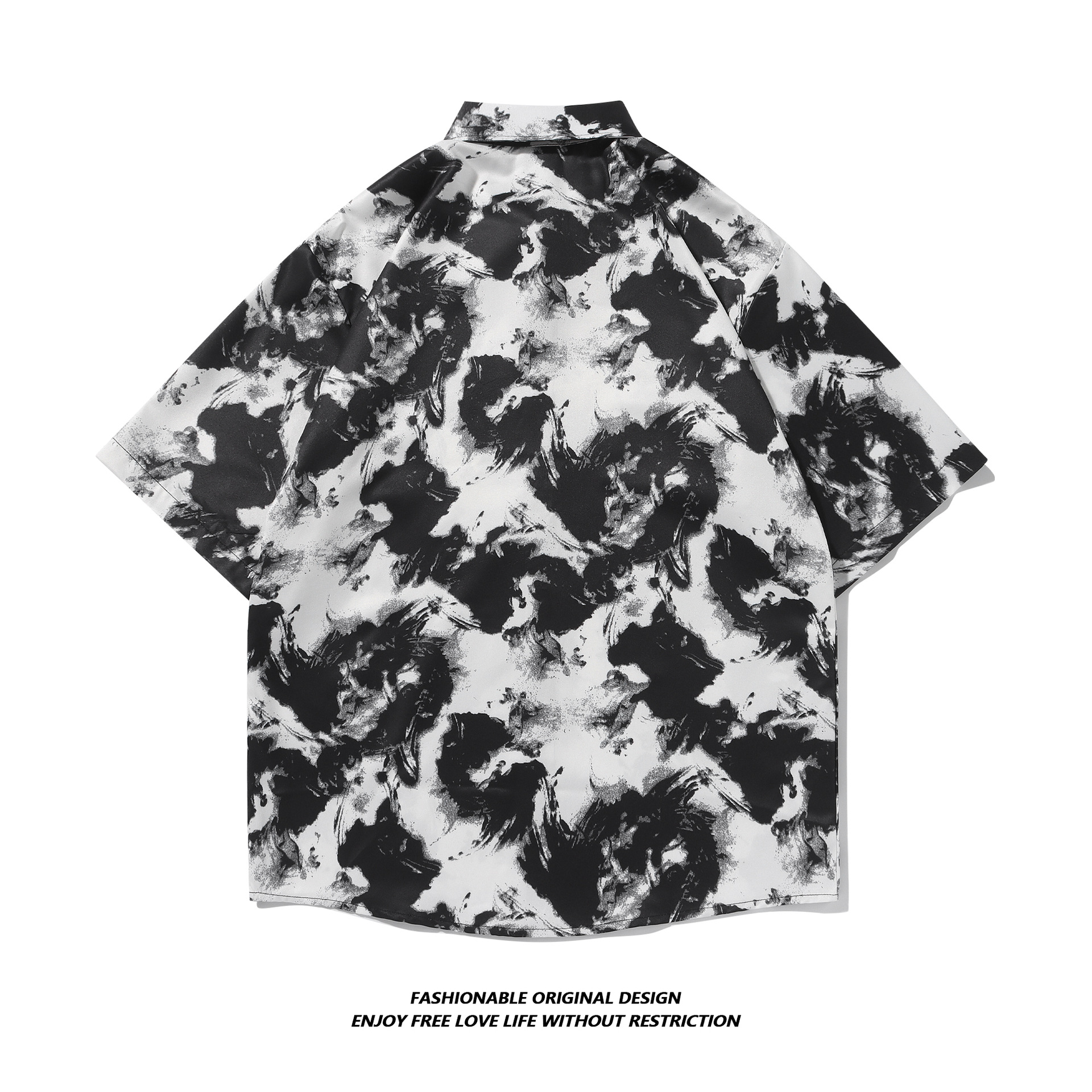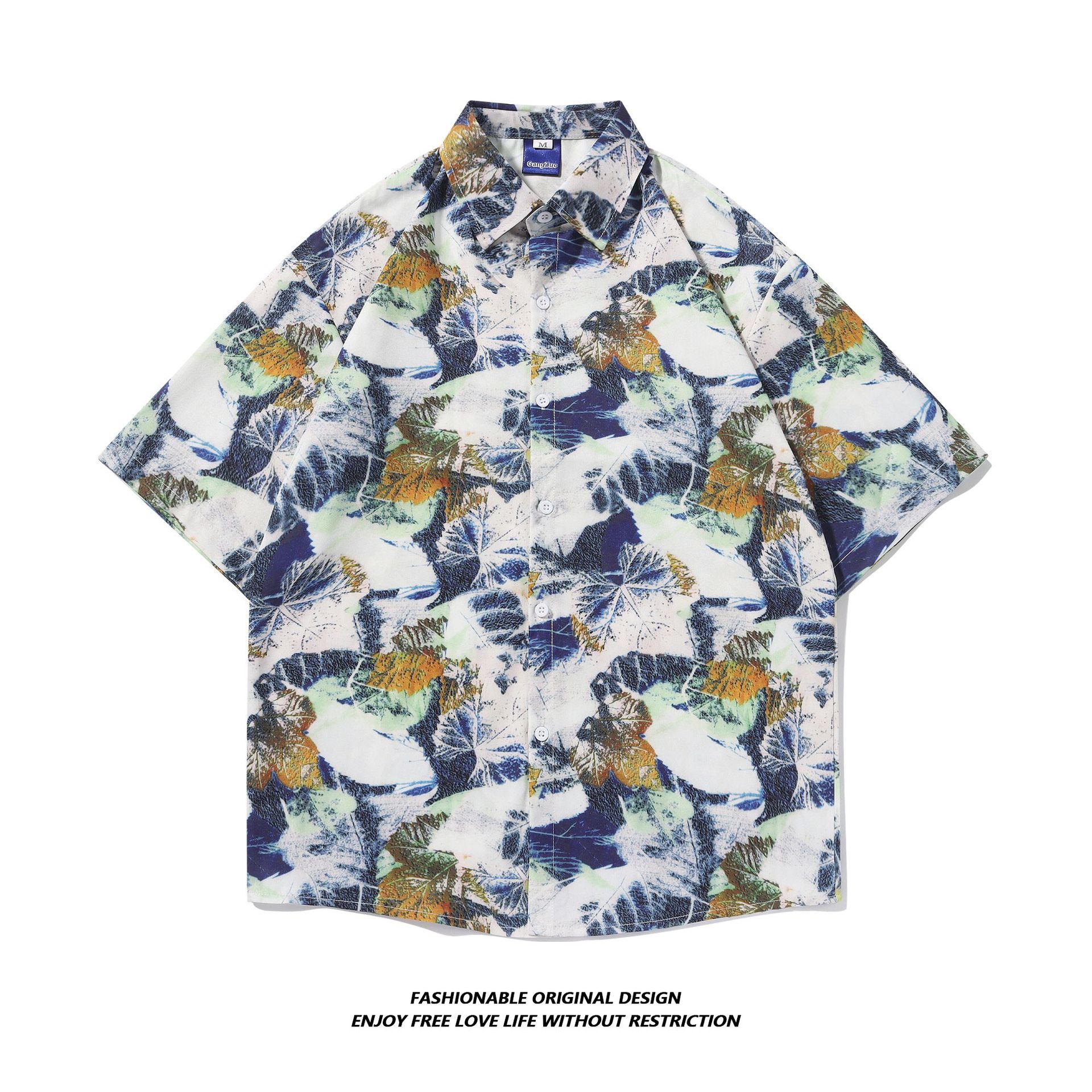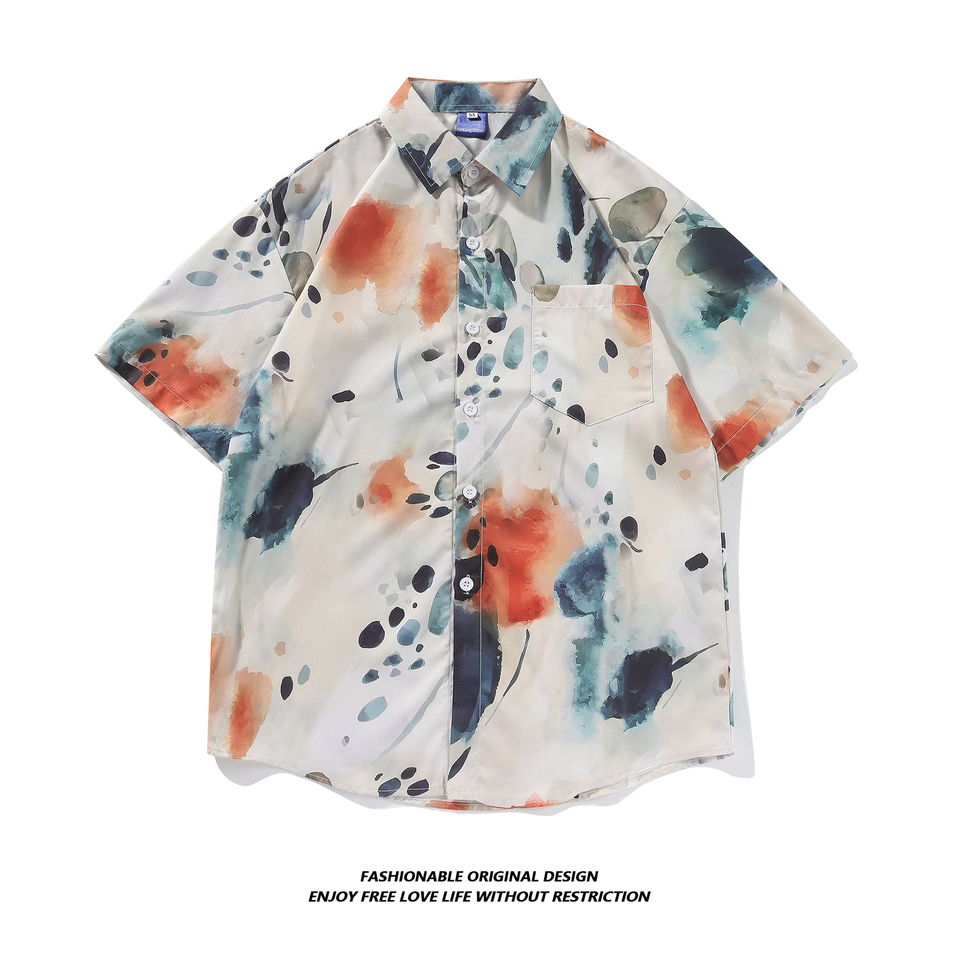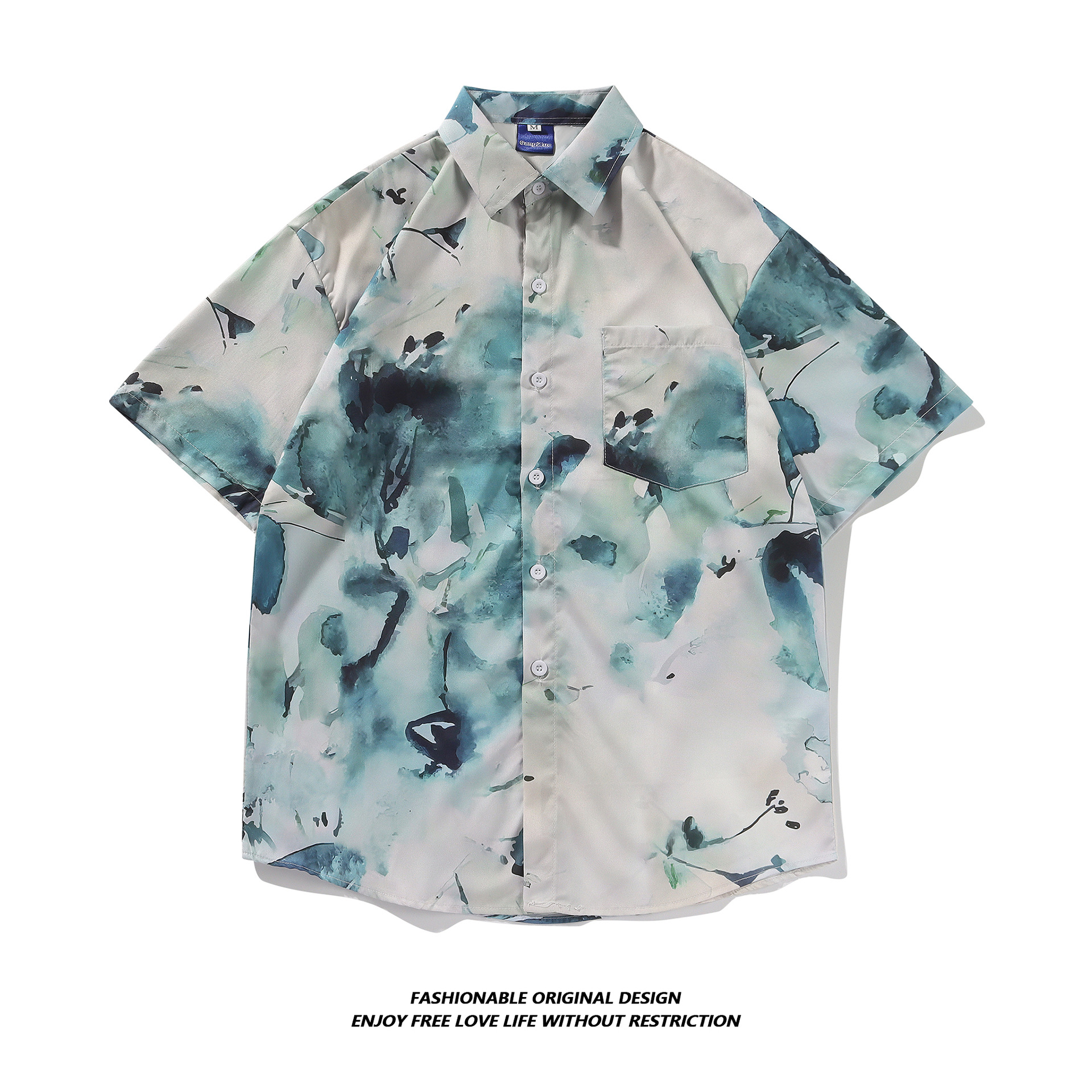 넥타이 염색 셔츠 남성용 반팔 여름 얇은 하이 엔드 느낌 유피 핸섬 반소매 셔츠 일본식 레트로 루즈 재킷 트렌디