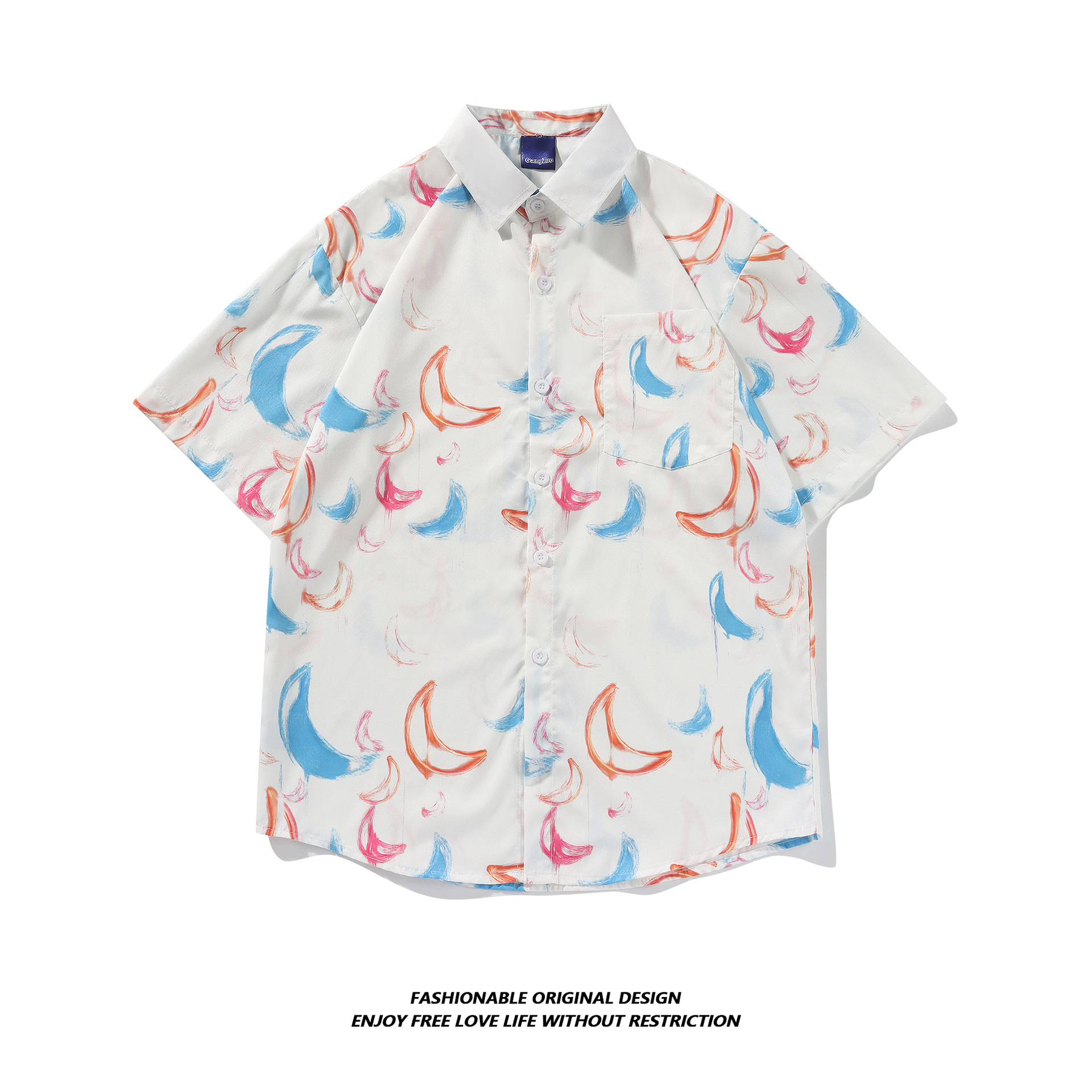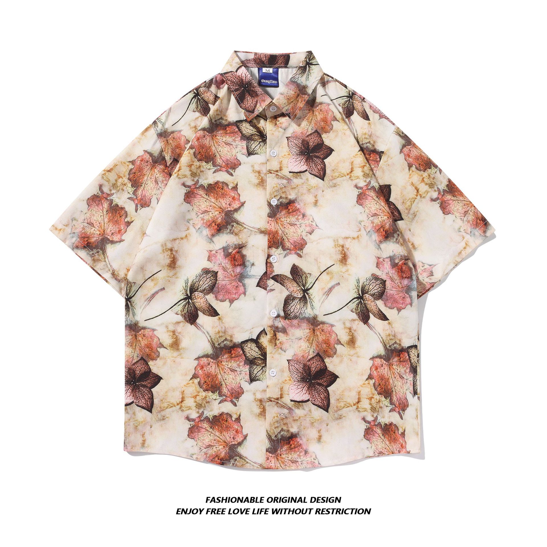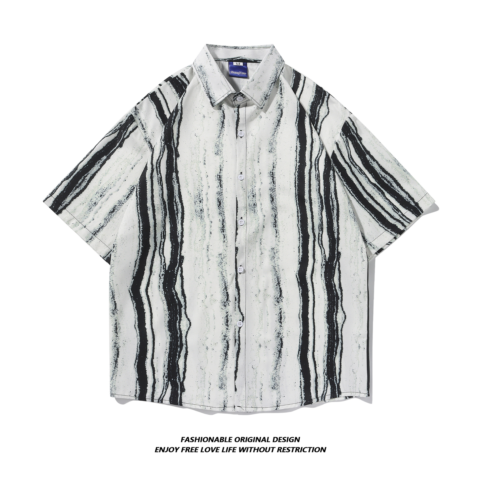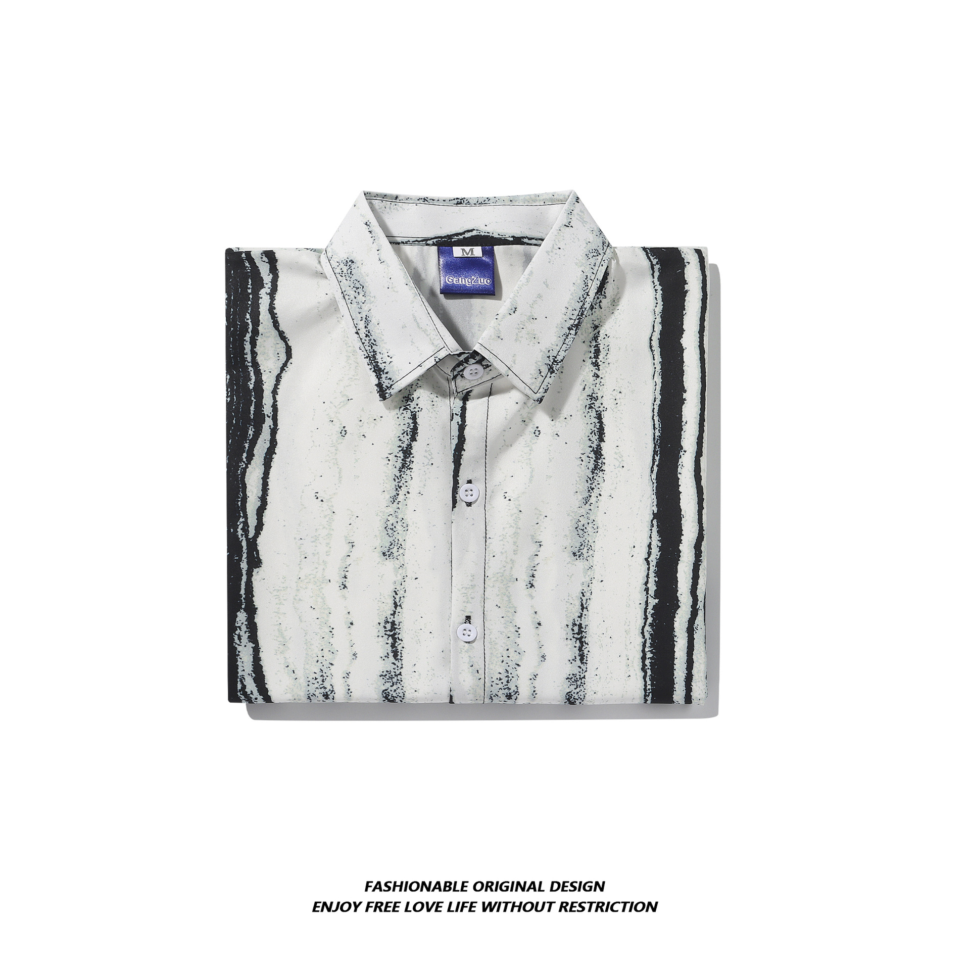 넥타이 염색 셔츠 남성용 반팔 여름 얇은 하이 엔드 느낌 유피 핸섬 반소매 셔츠 일본식 레트로 루즈 재킷 트렌디