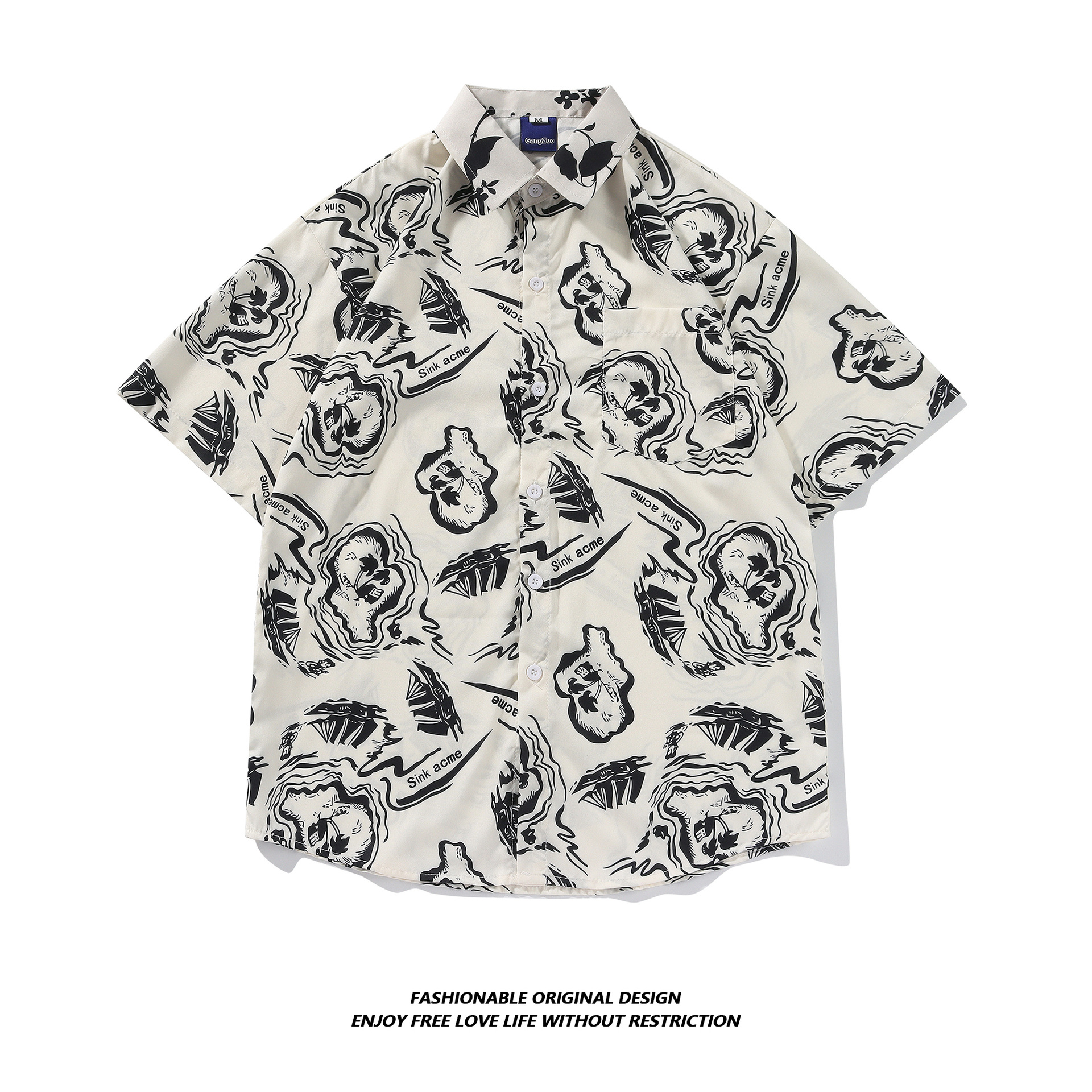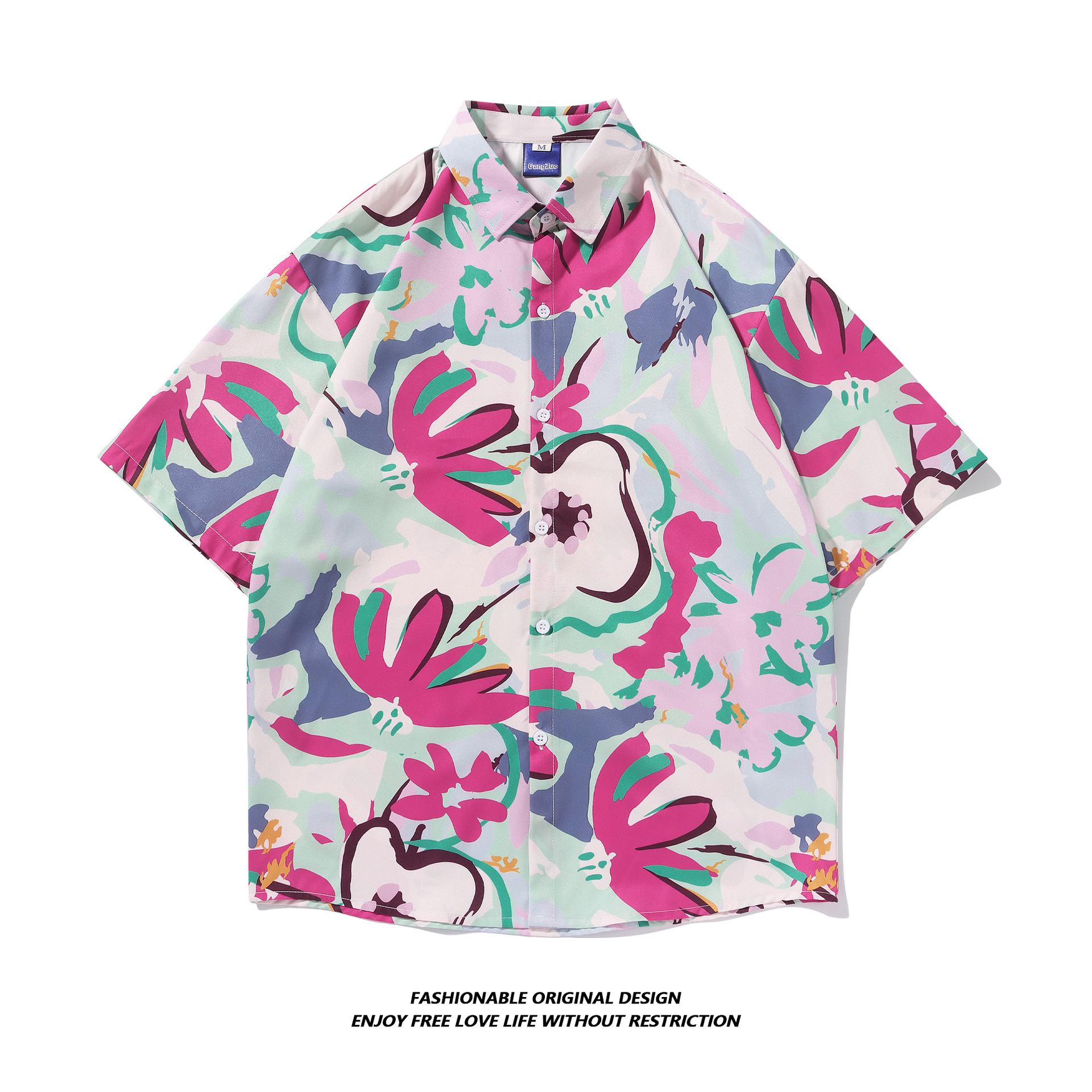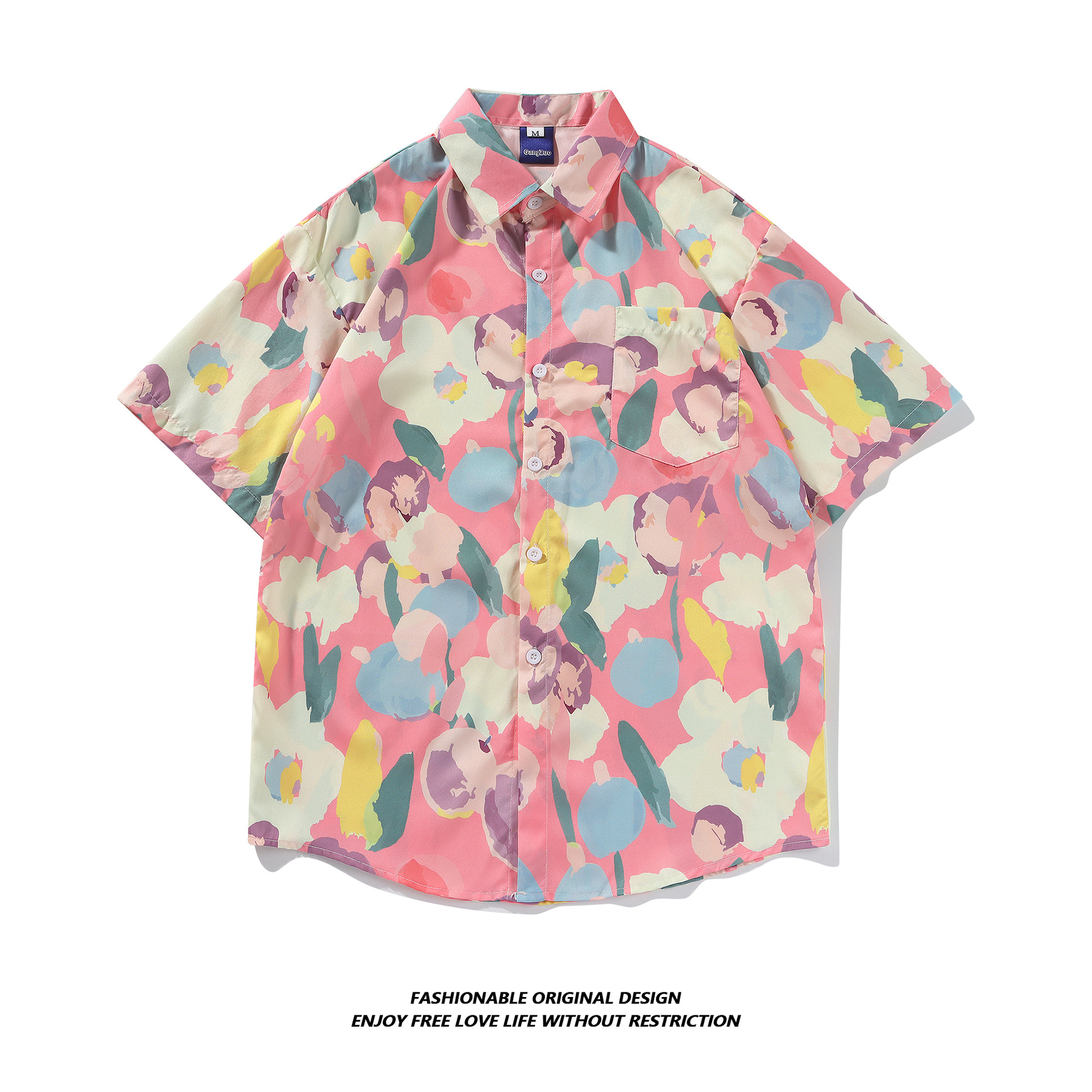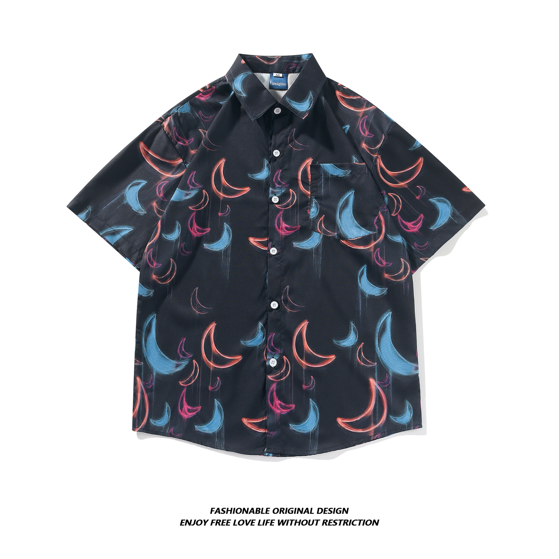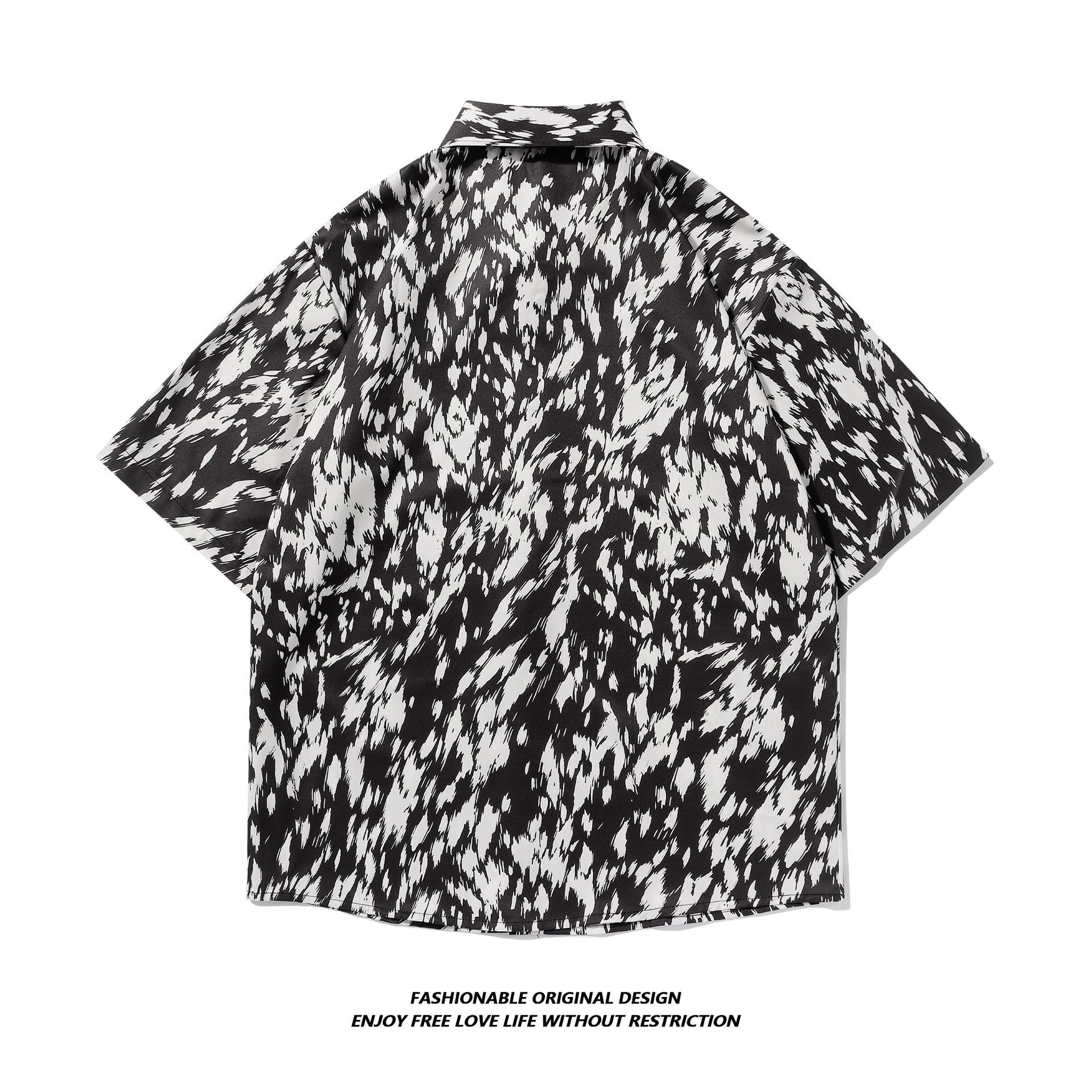 넥타이 염색 셔츠 남성용 반팔 여름 얇은 하이 엔드 느낌 유피 핸섬 반소매 셔츠 일본식 레트로 루즈 재킷 트렌디