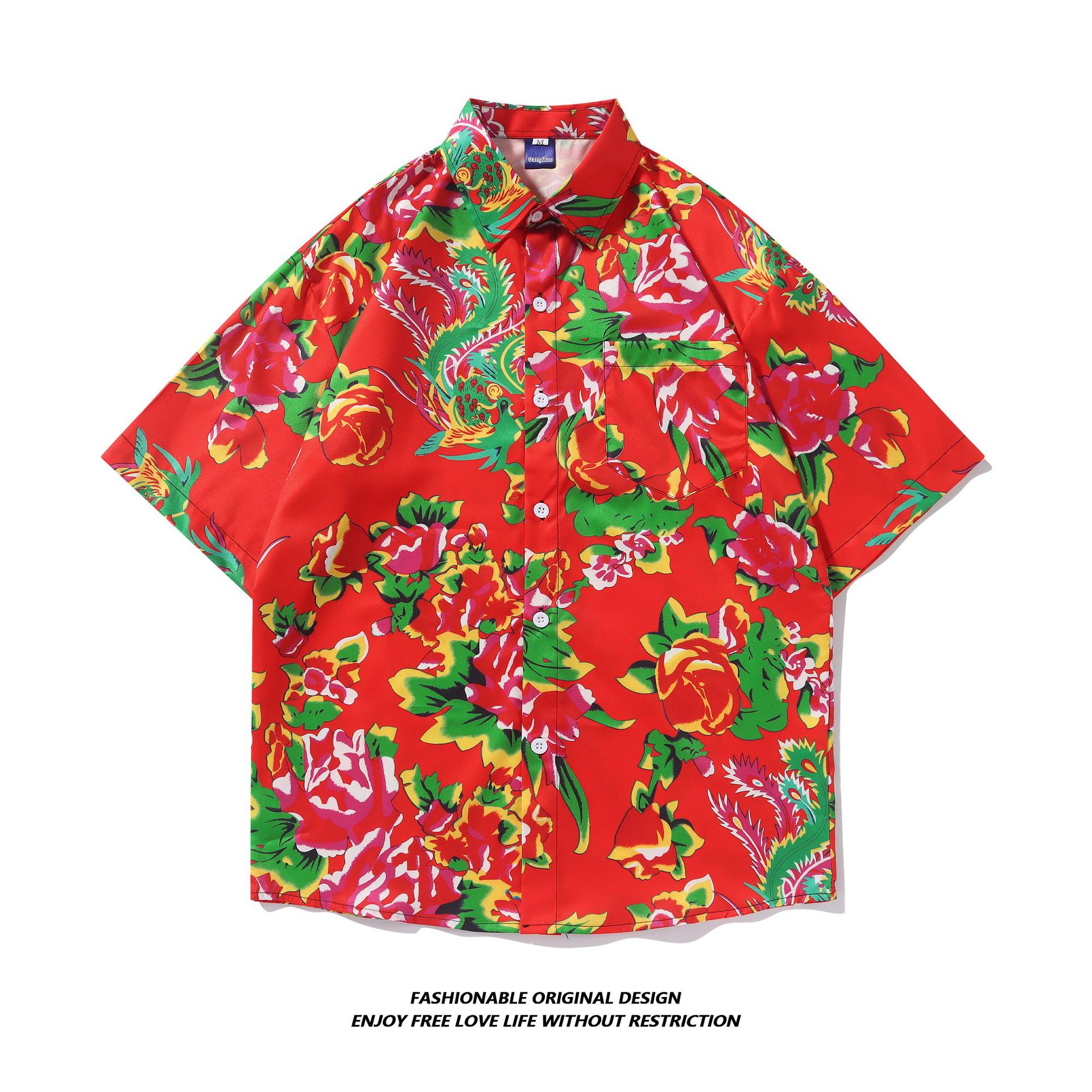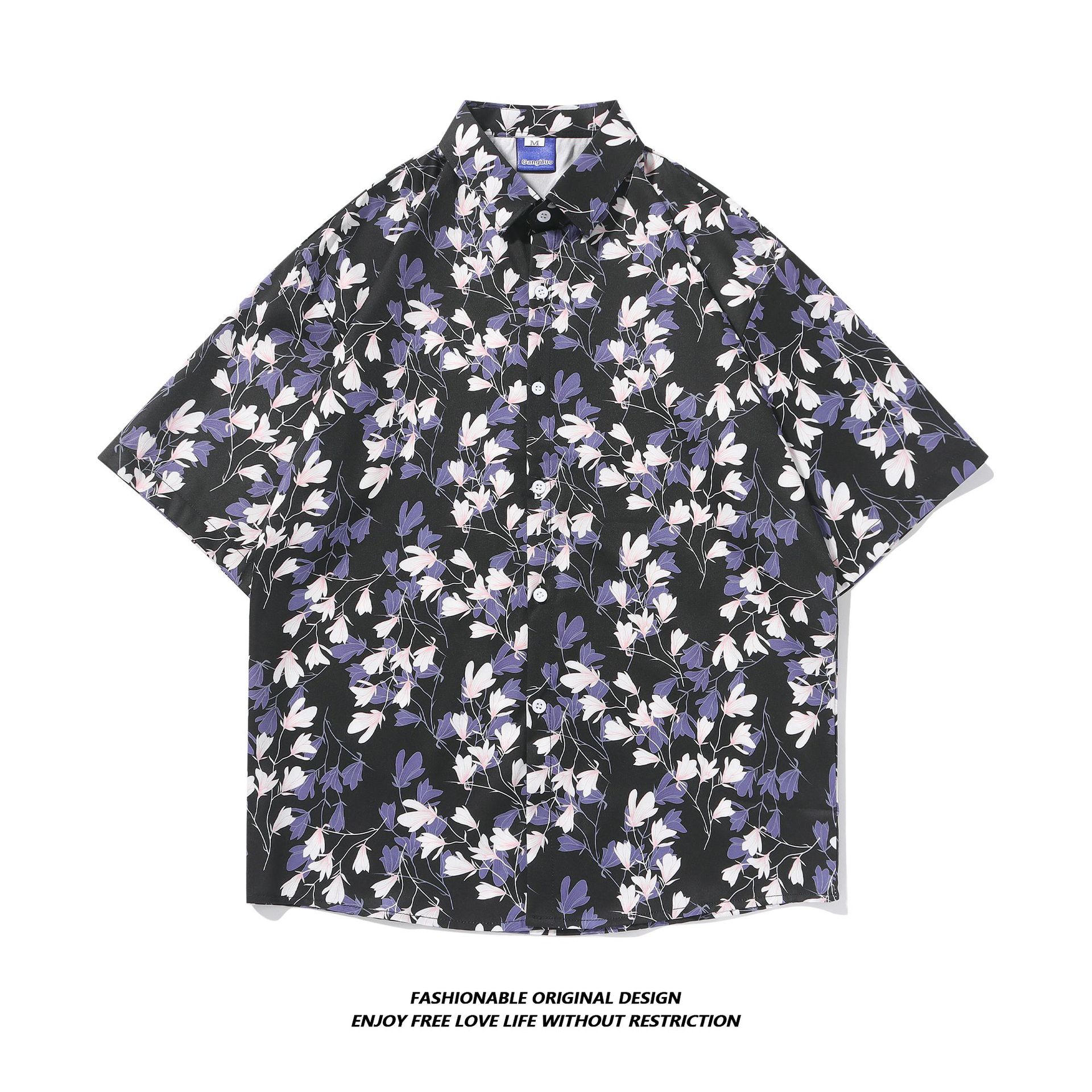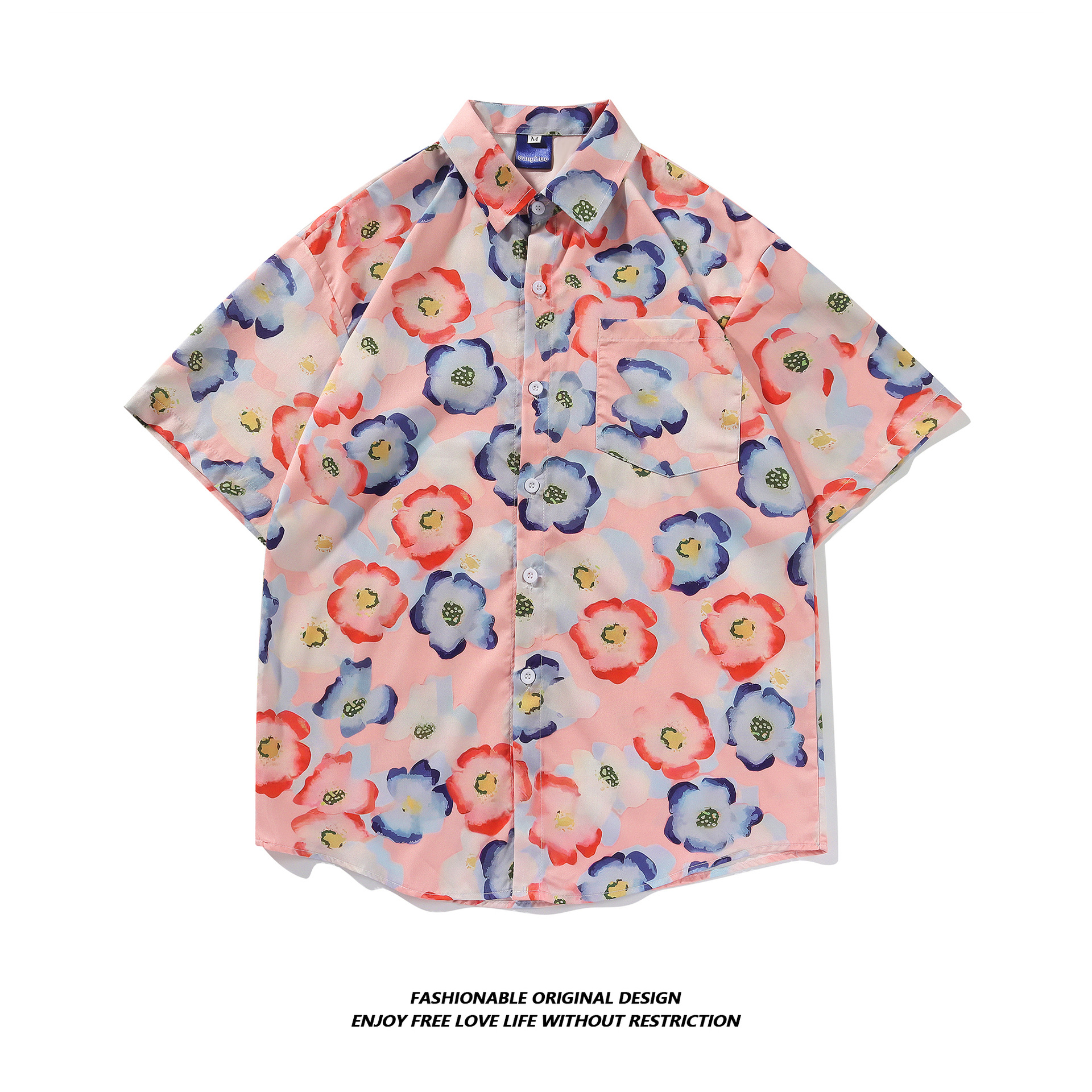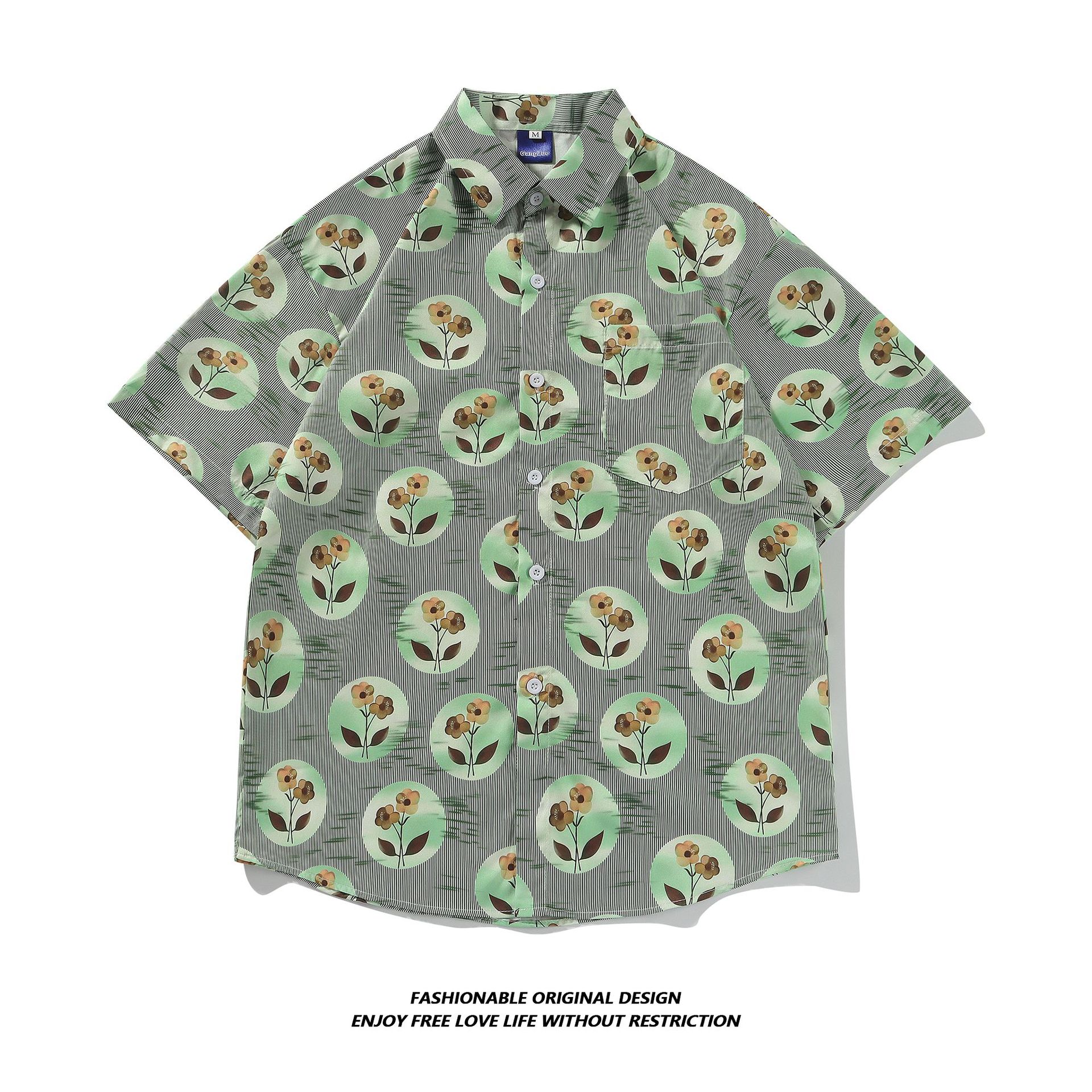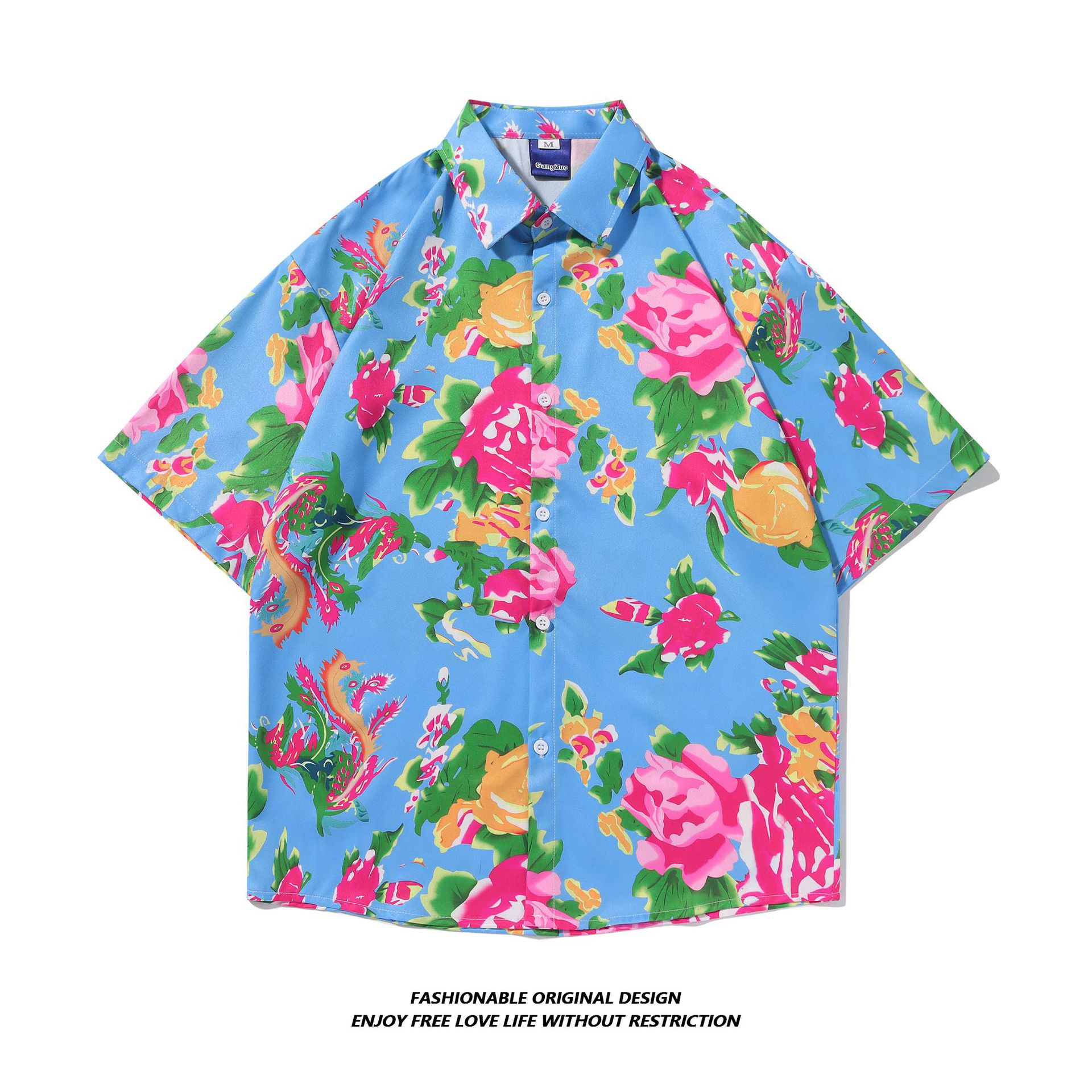 넥타이 염색 셔츠 남성용 반팔 여름 얇은 하이 엔드 느낌 유피 핸섬 반소매 셔츠 일본식 레트로 루즈 재킷 트렌디