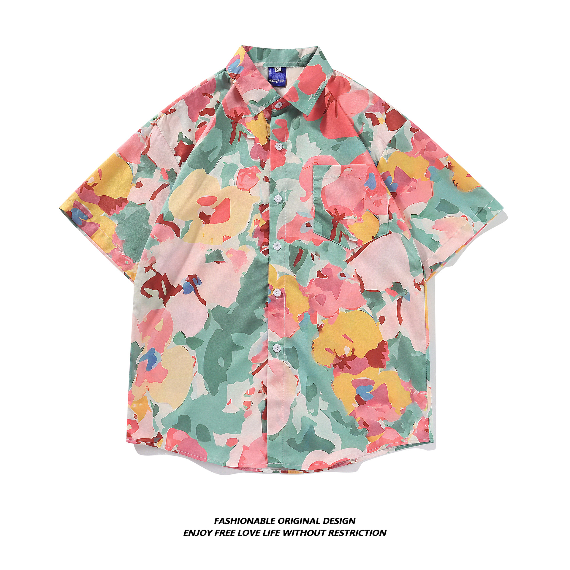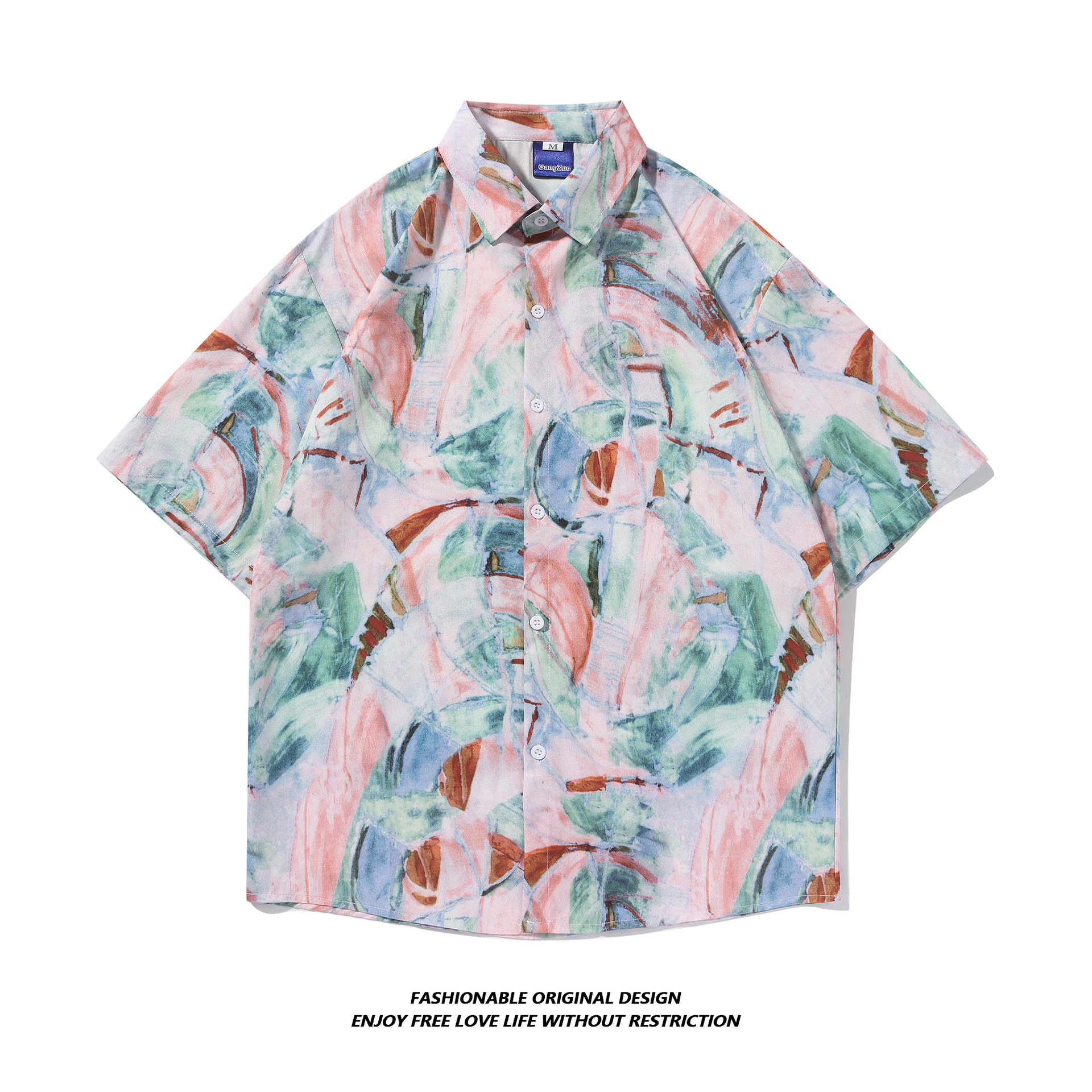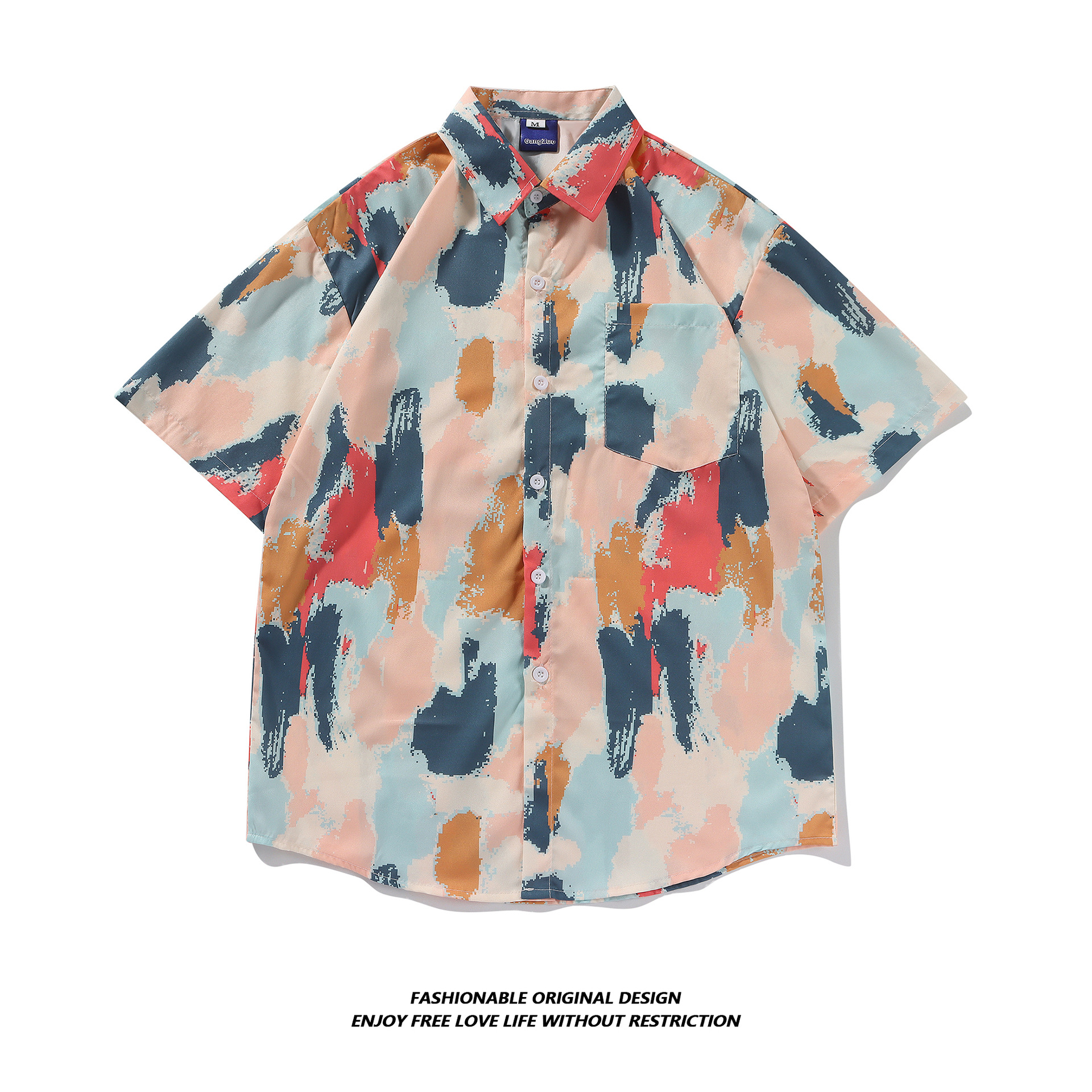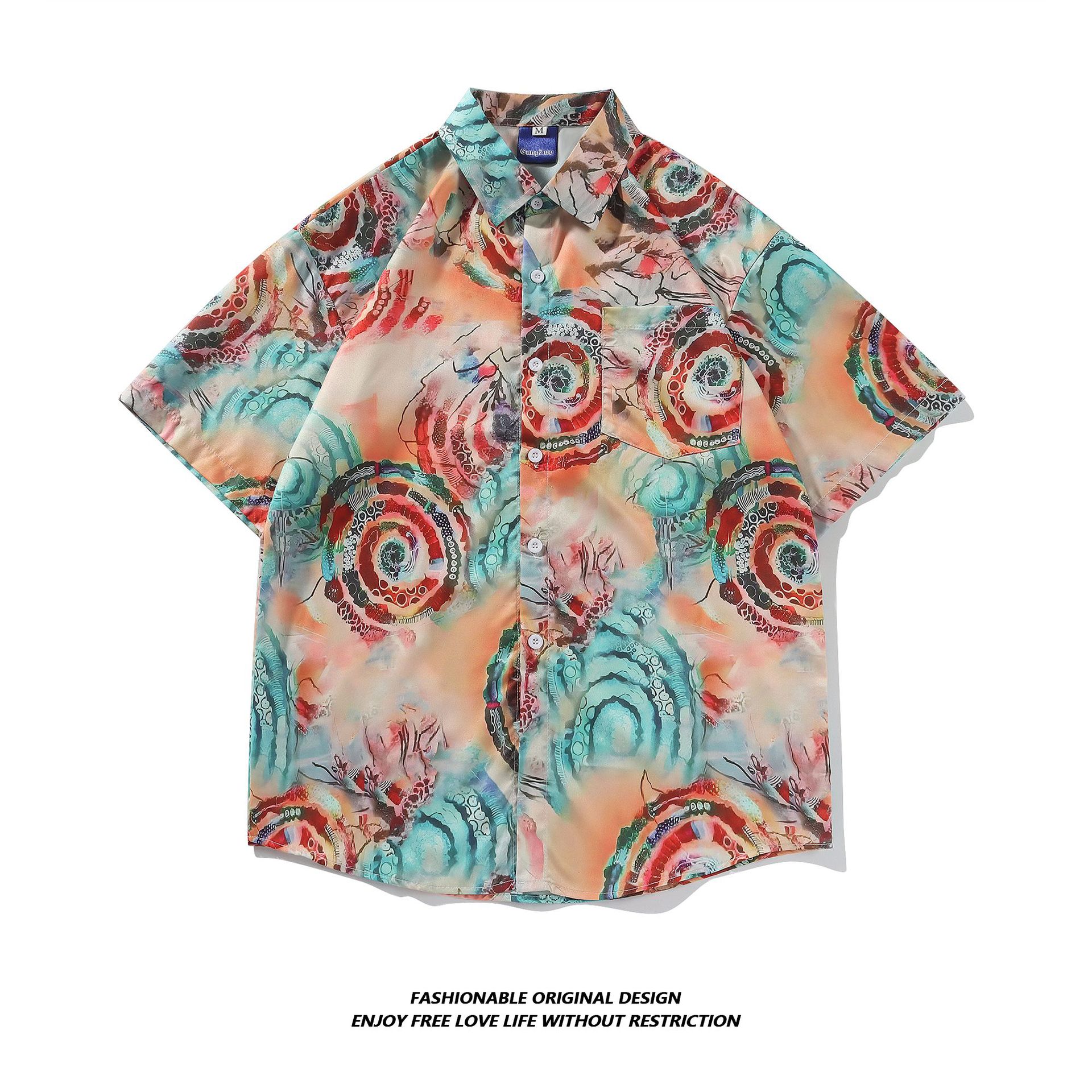 넥타이 염색 셔츠 남성용 반팔 여름 얇은 하이 엔드 느낌 유피 핸섬 반소매 셔츠 일본식 레트로 루즈 재킷 트렌디스토어 가기