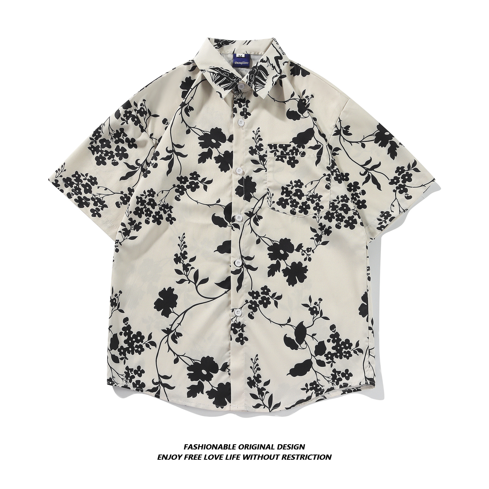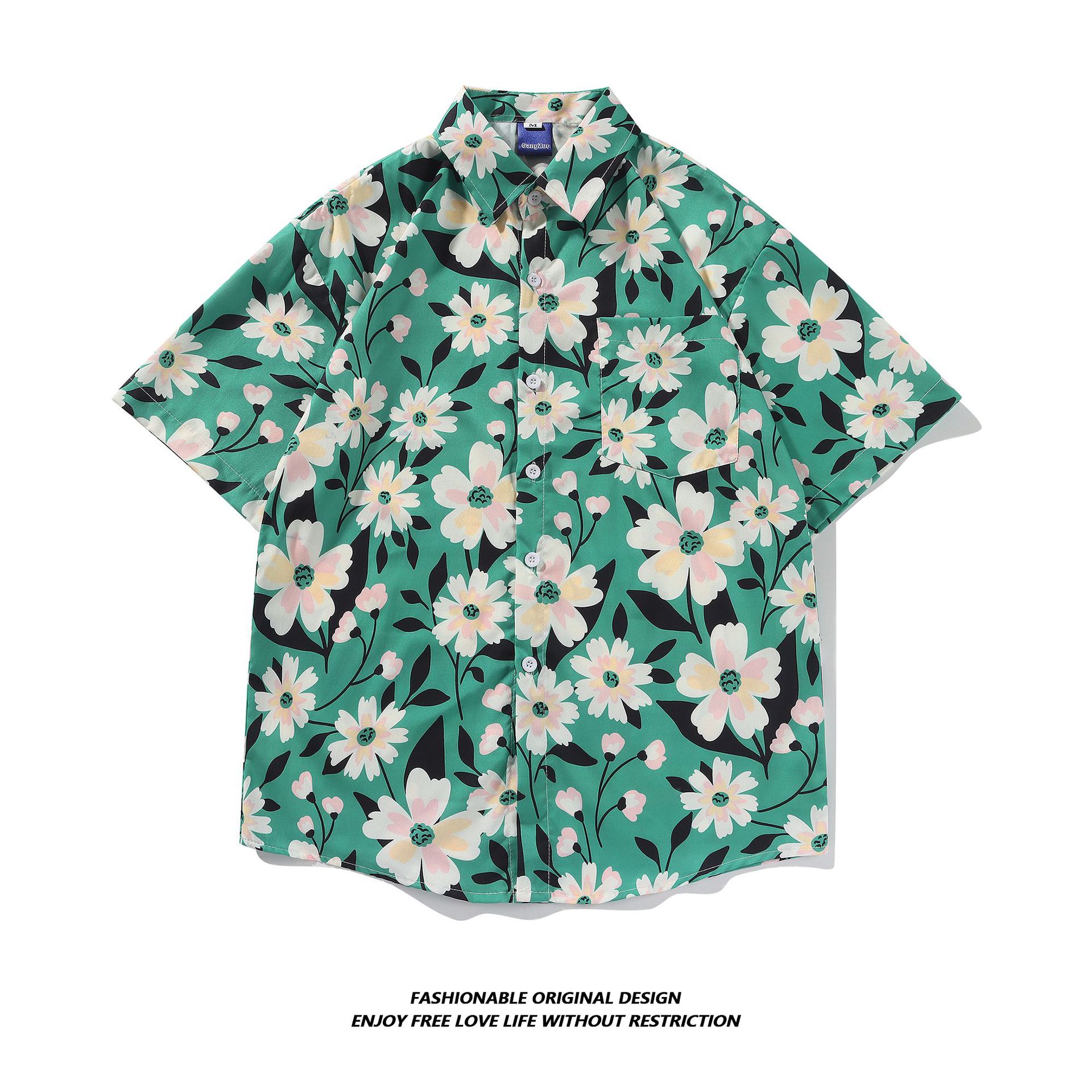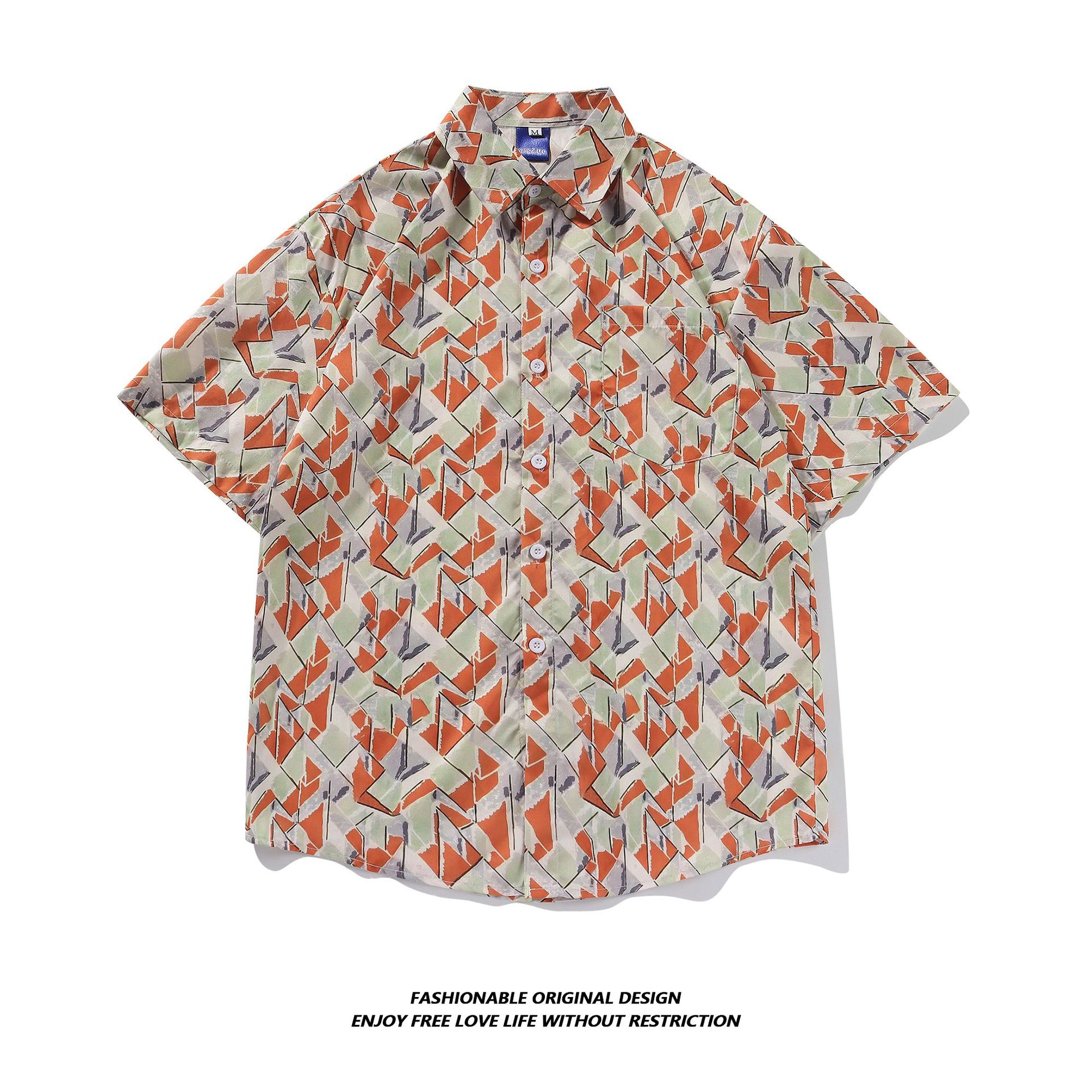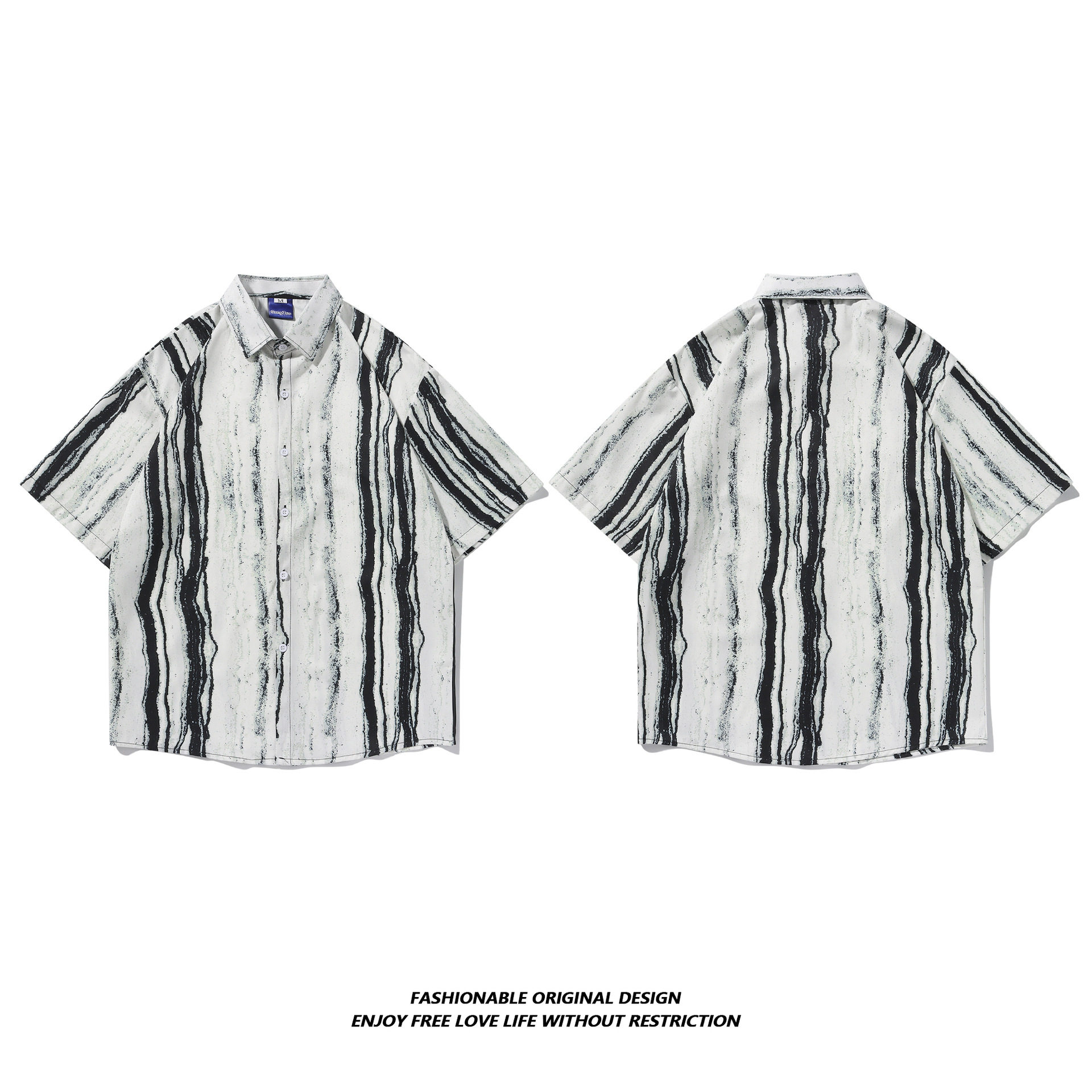 넥타이 염색 셔츠 남성용 반팔 여름 얇은 하이 엔드 느낌 유피 핸섬 반소매 셔츠 일본식 레트로 루즈 재킷 트렌디스토어 가기