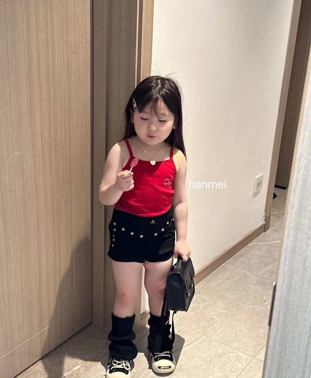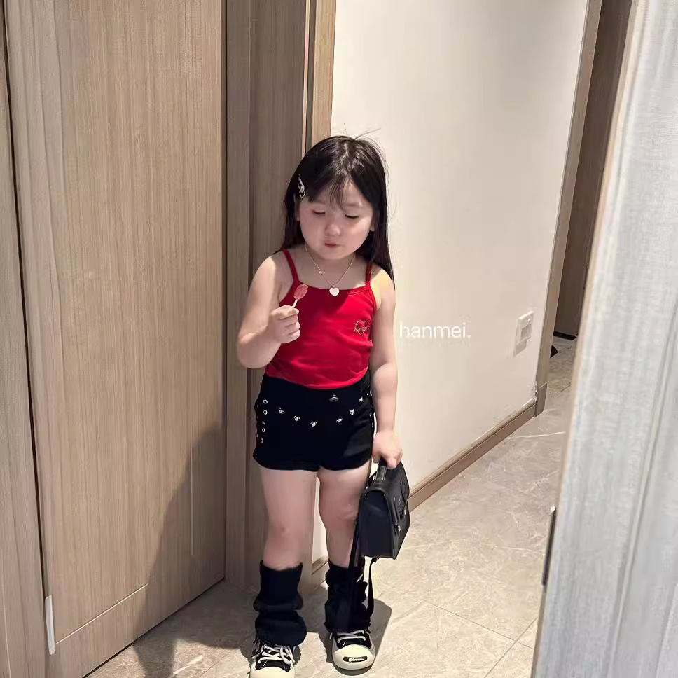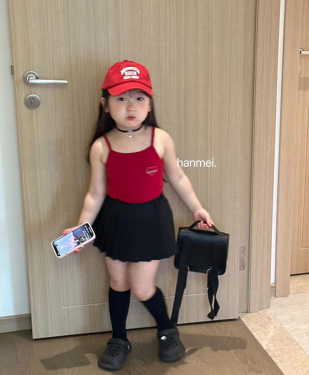 (재고정리) 새로운 귀여운 소녀용 여름 인기 슬리브리스 탑, 슬림핏 레드 탑스토어 가기