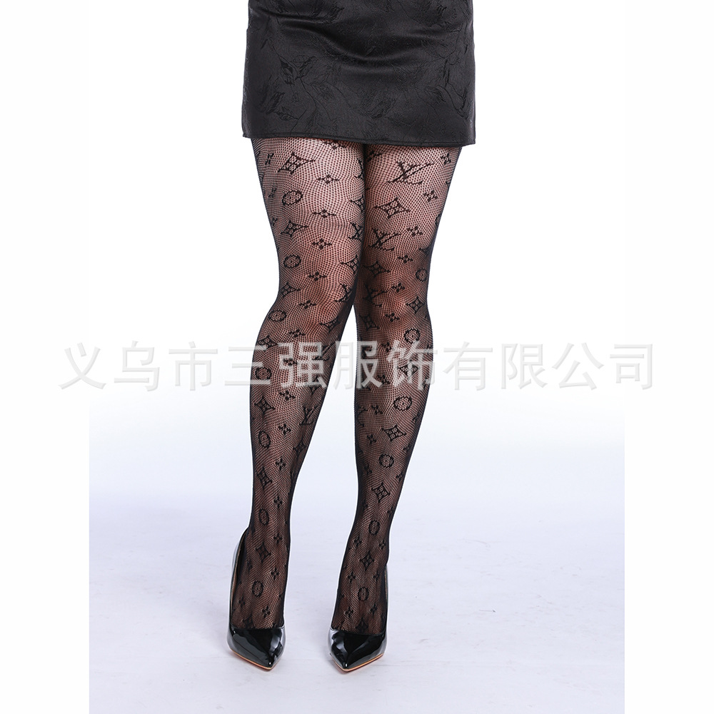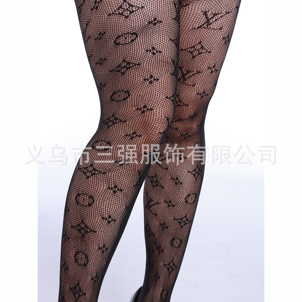 유럽과 미국의 국경 간 편지 Jacquard L V 라운드 그리드 그물 스타킹 높은 탄성 슬리밍 안티 훅 실크 여자의 블랙 스타킹스토어 가기