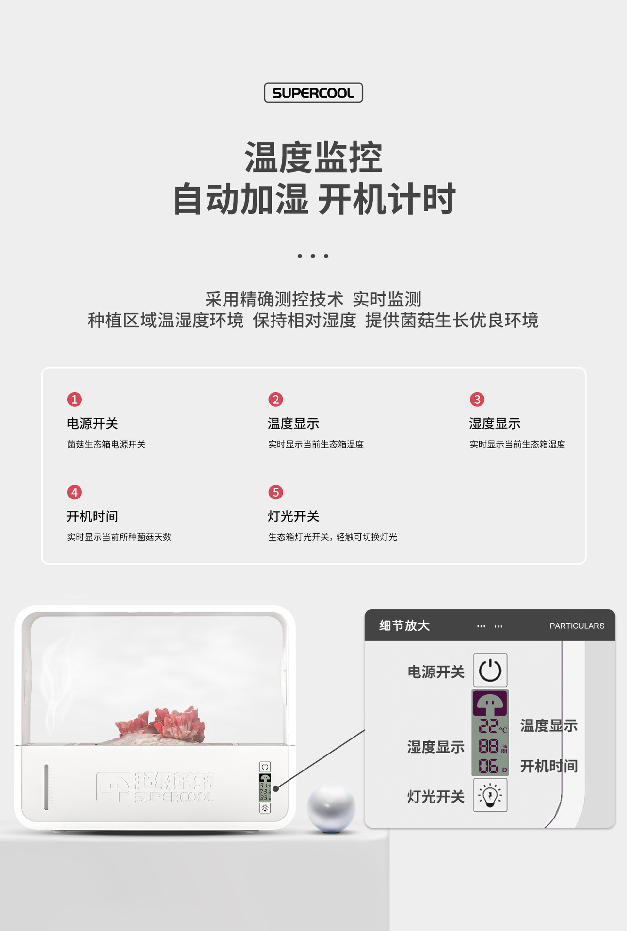 버섯 생태 상자 데스크탑 스마트 버섯 심기 기계 무토양 재배 심기 상자 표고 버섯 작은 심기 상자 국경 간스토어 가기