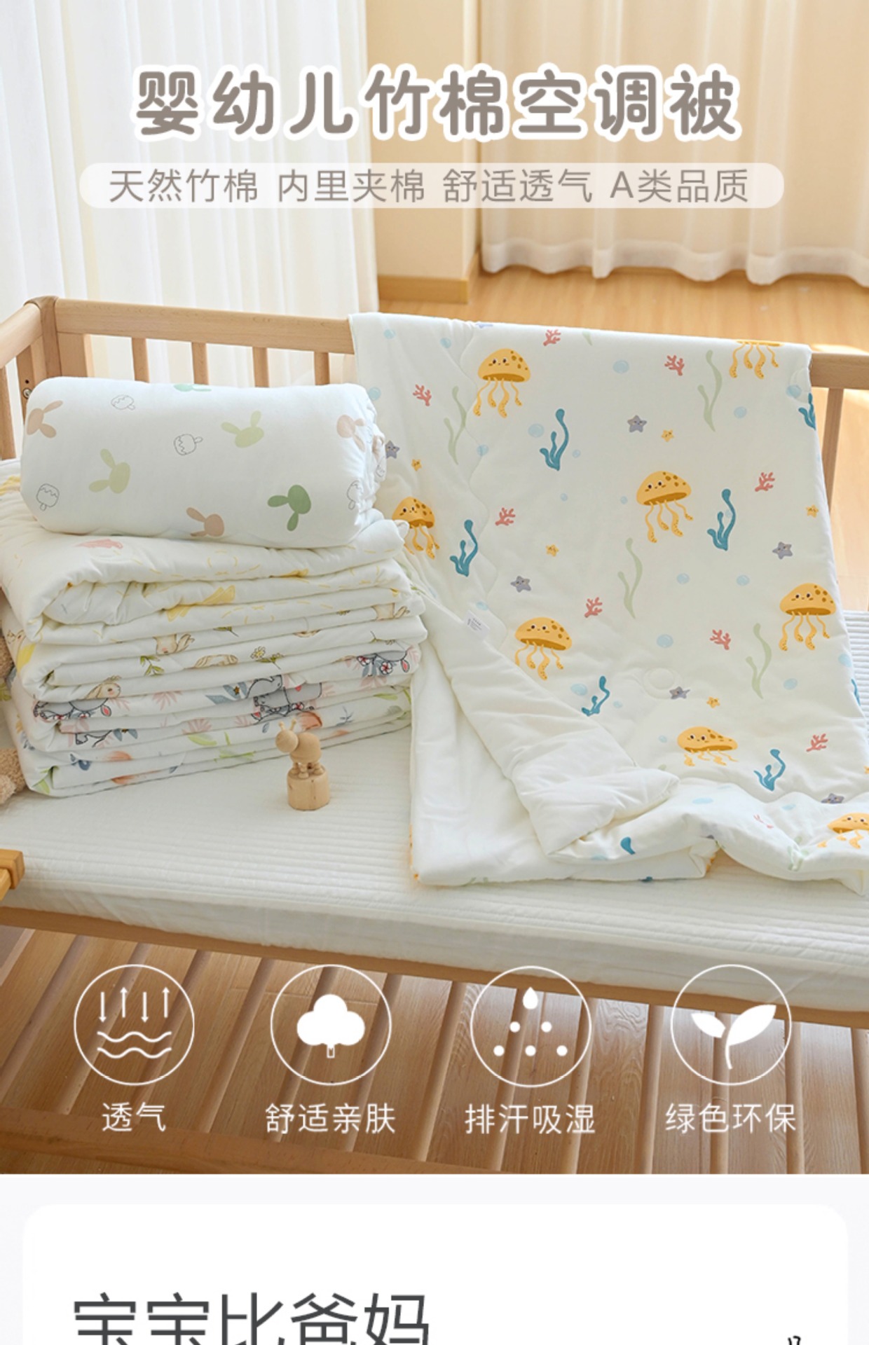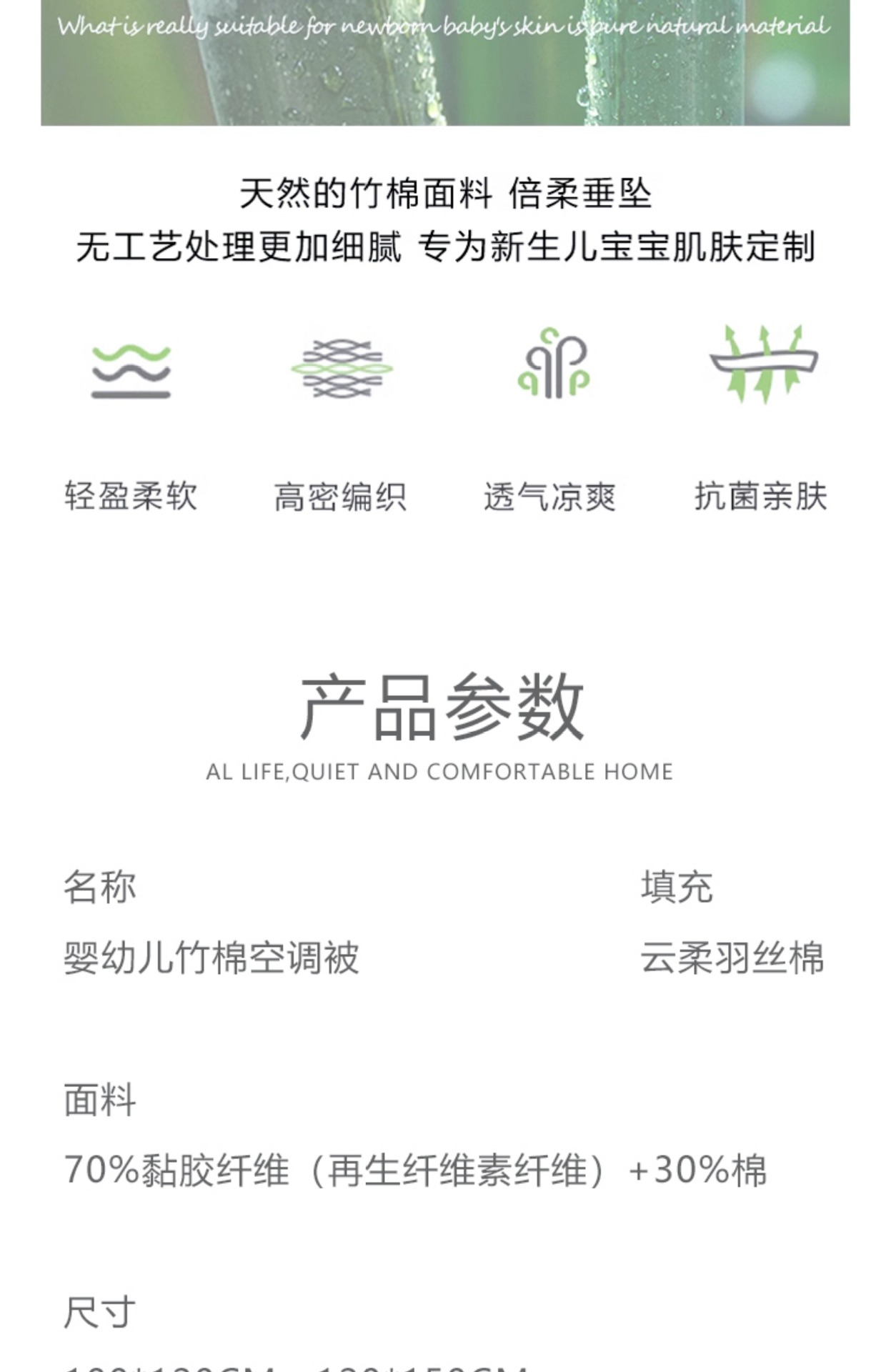 天然纤维、透气凉爽、抗菌亲肤、A类品质