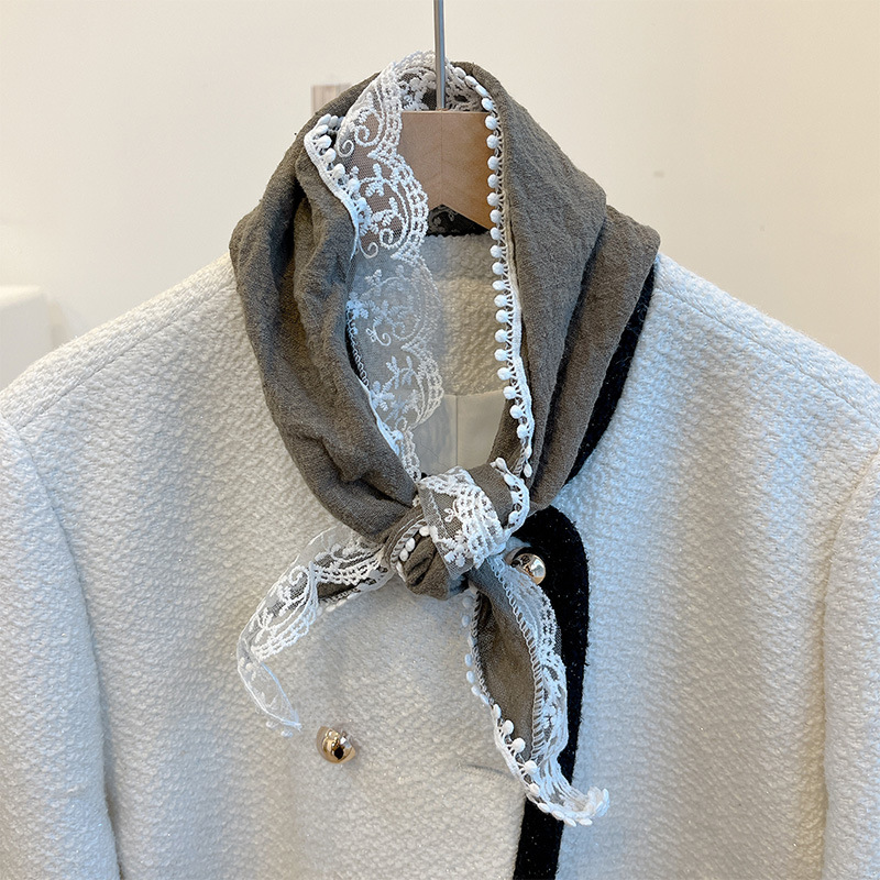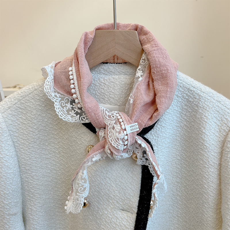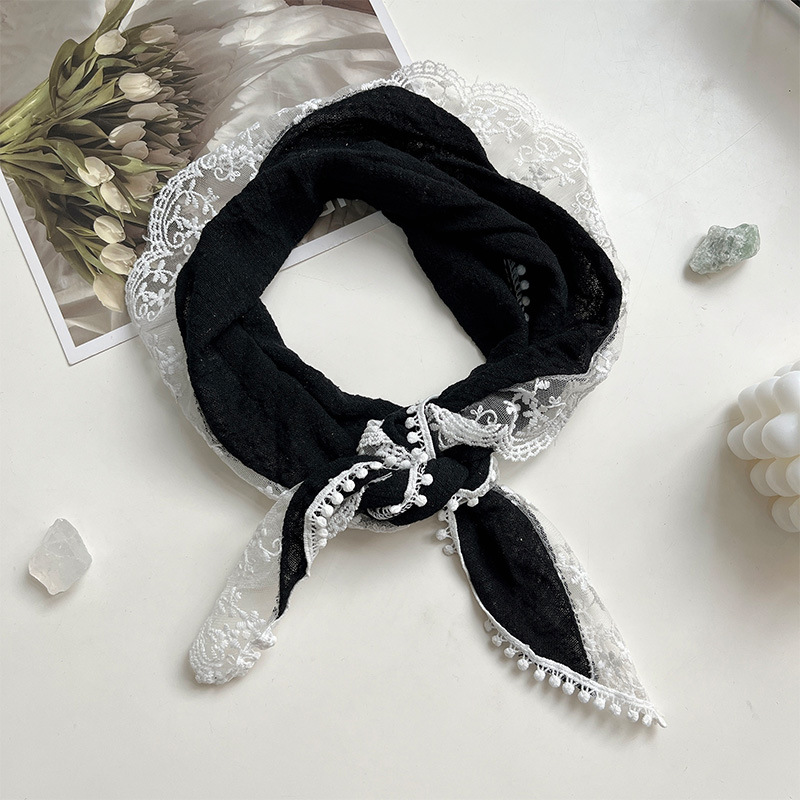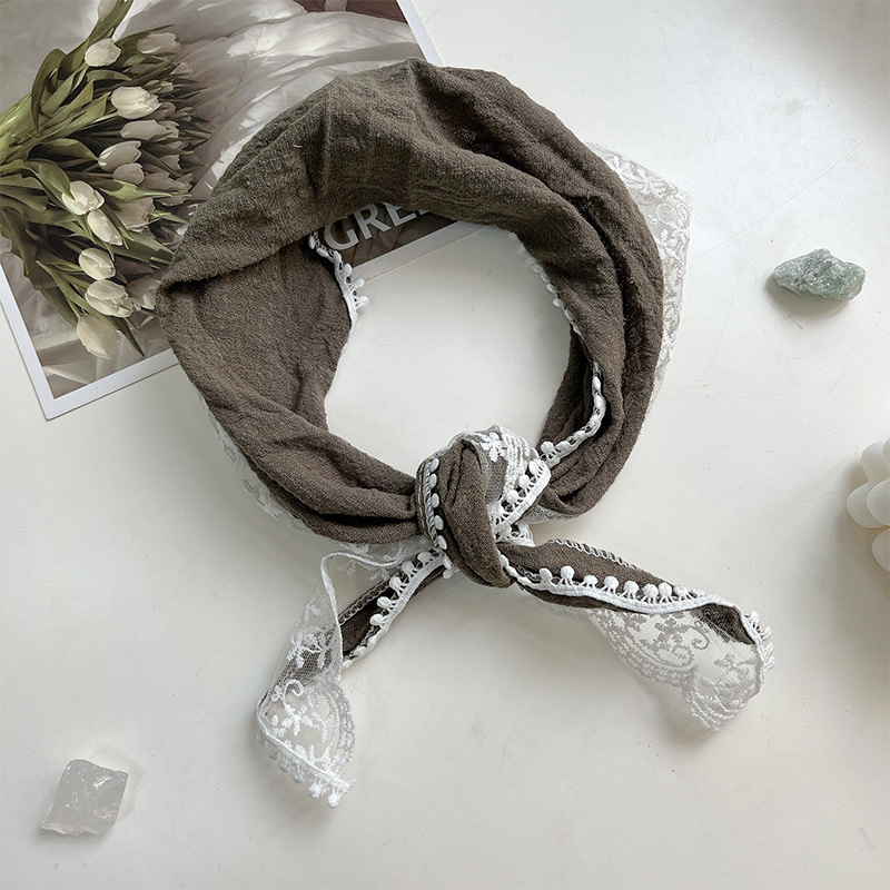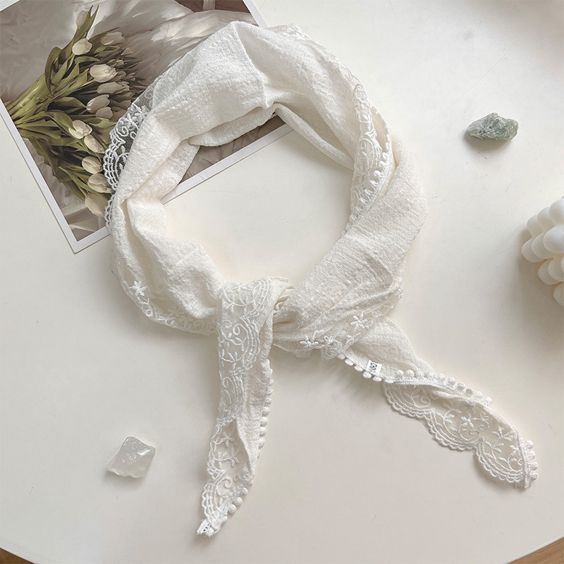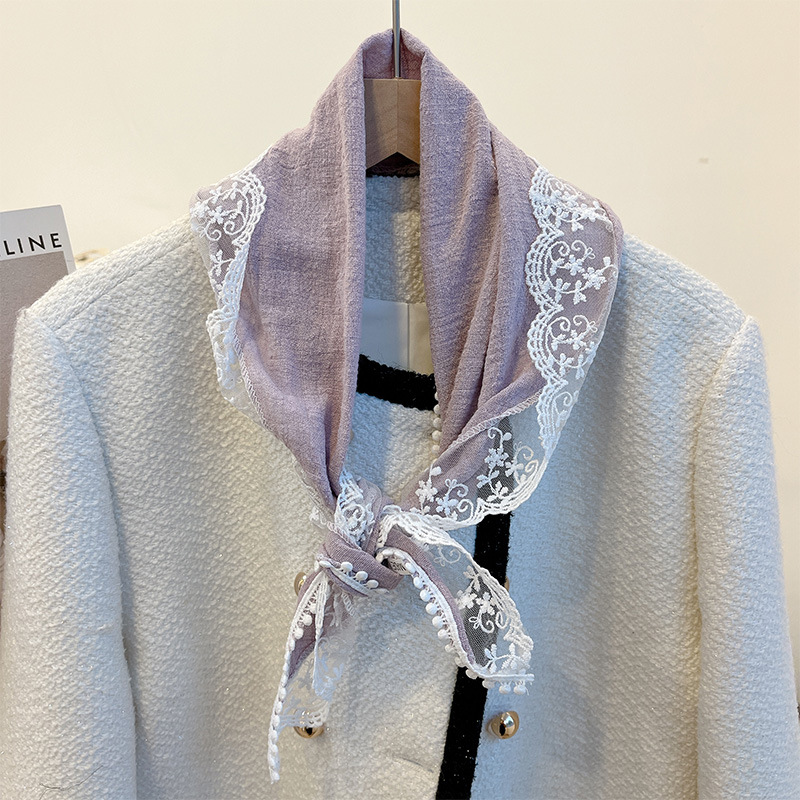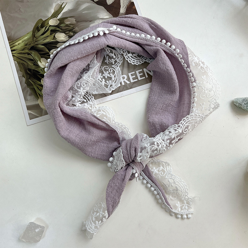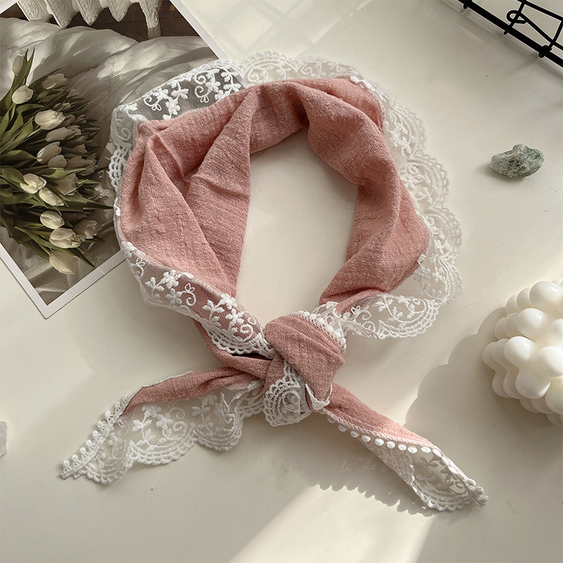 여성을위한 레이스 코튼과 린넨 삼각형 스카프 봄, 가을, 여름 한국 패션 스카프 머리 스카프 가방 장식 스카프
