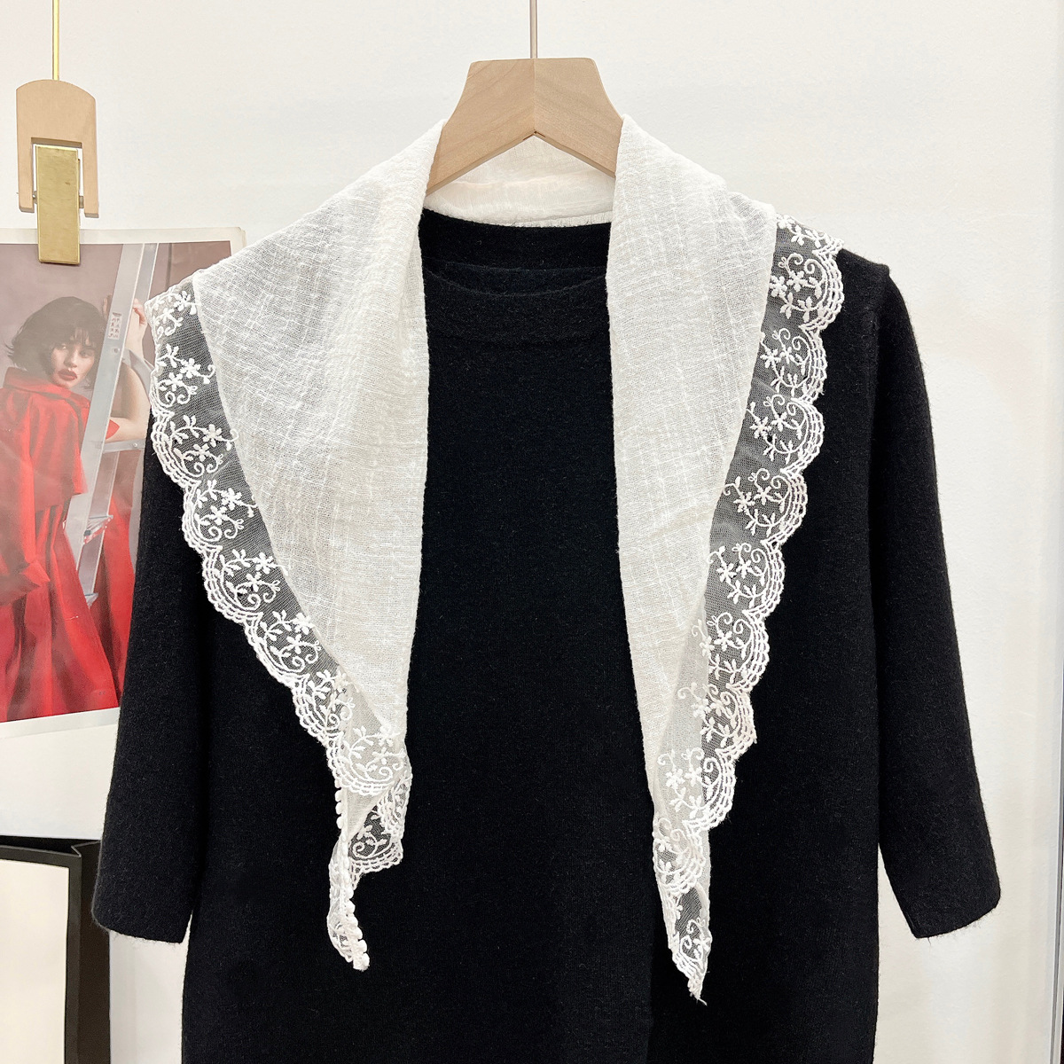 여성을위한 레이스 코튼과 린넨 삼각형 스카프 봄, 가을, 여름 한국 패션 스카프 머리 스카프 가방 장식 스카프스토어 가기