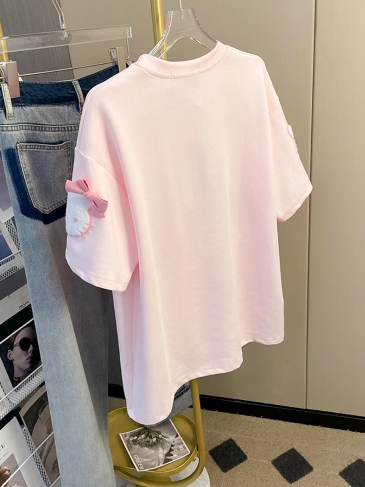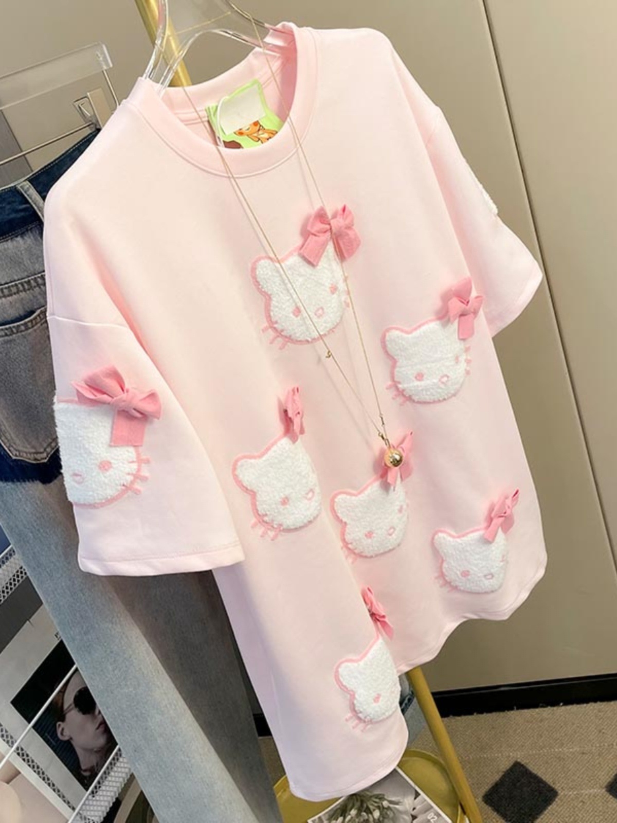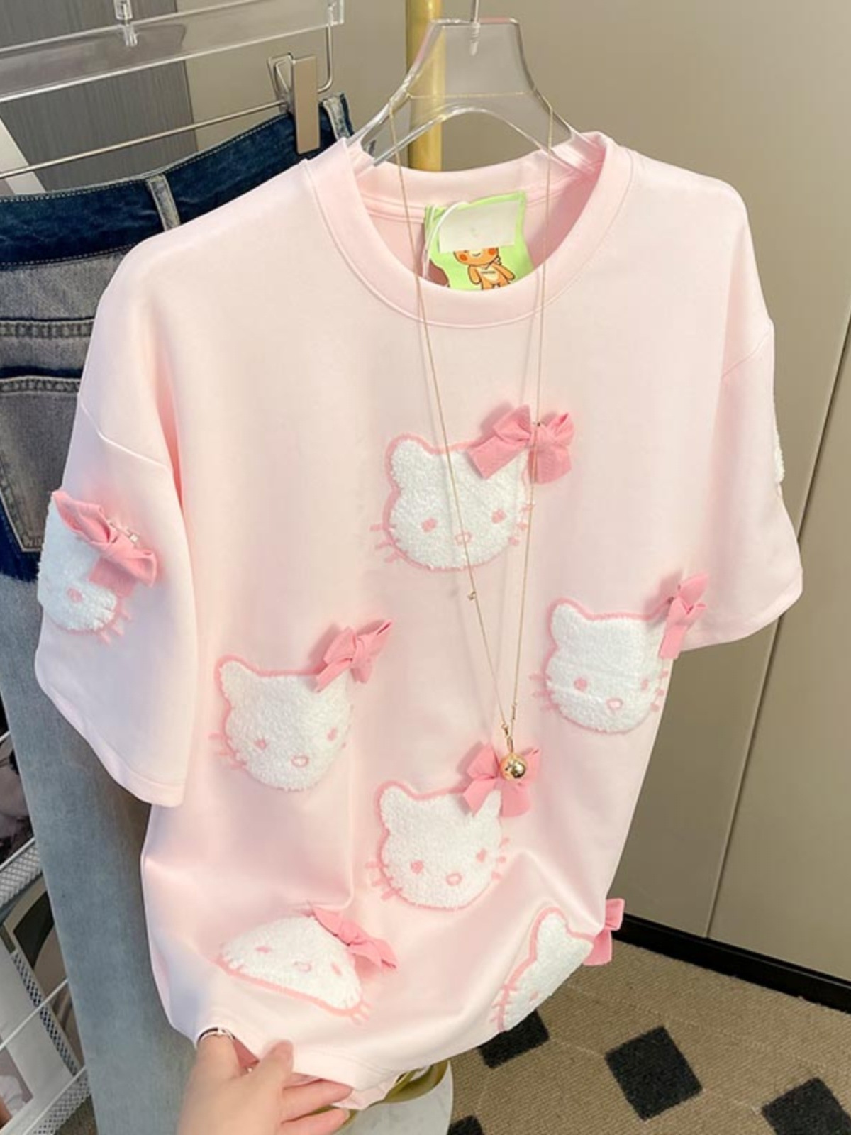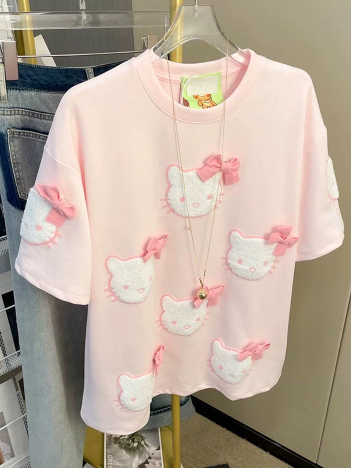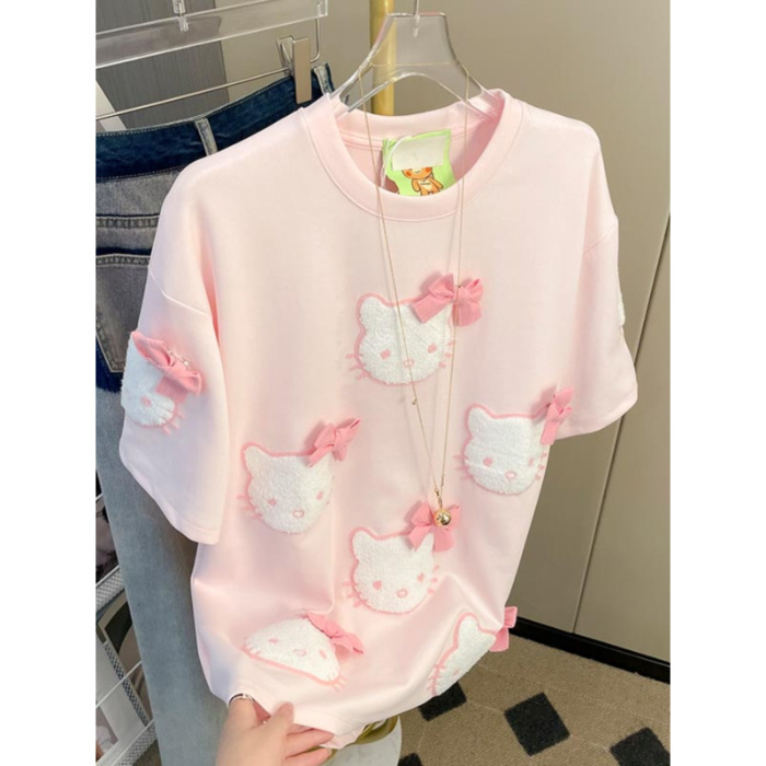 21 210g 빗질면 여름 만화 고양이 자수 활 반팔 티셔츠 여성용 느슨한 패션 탑스토어 가기