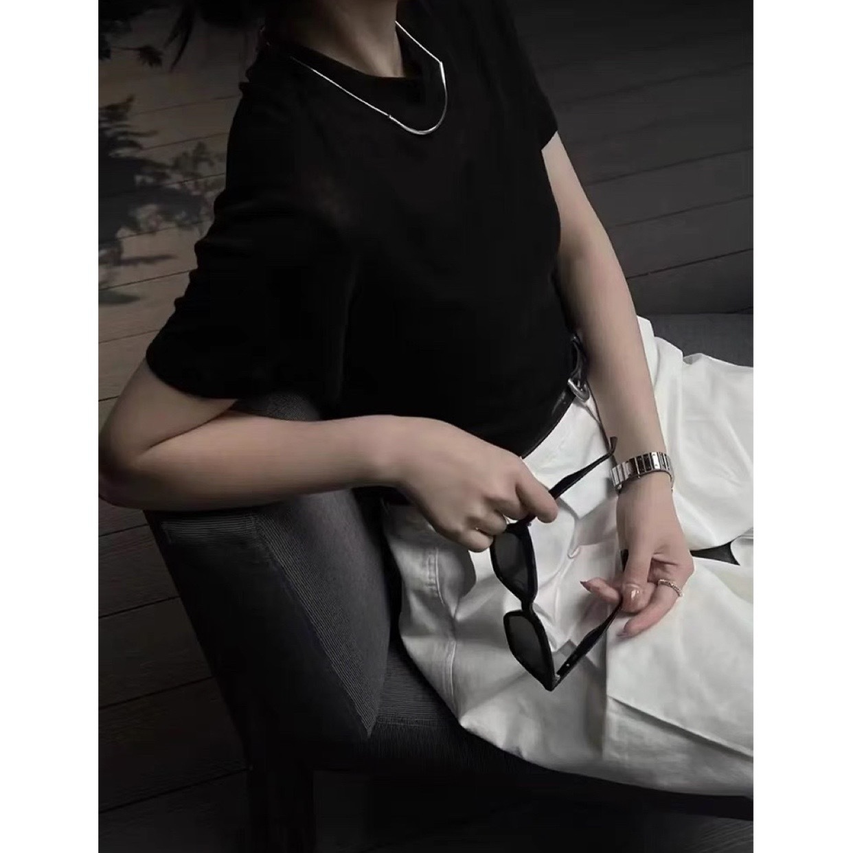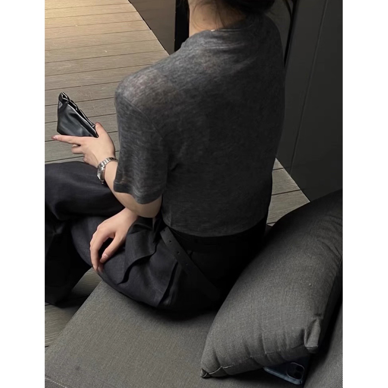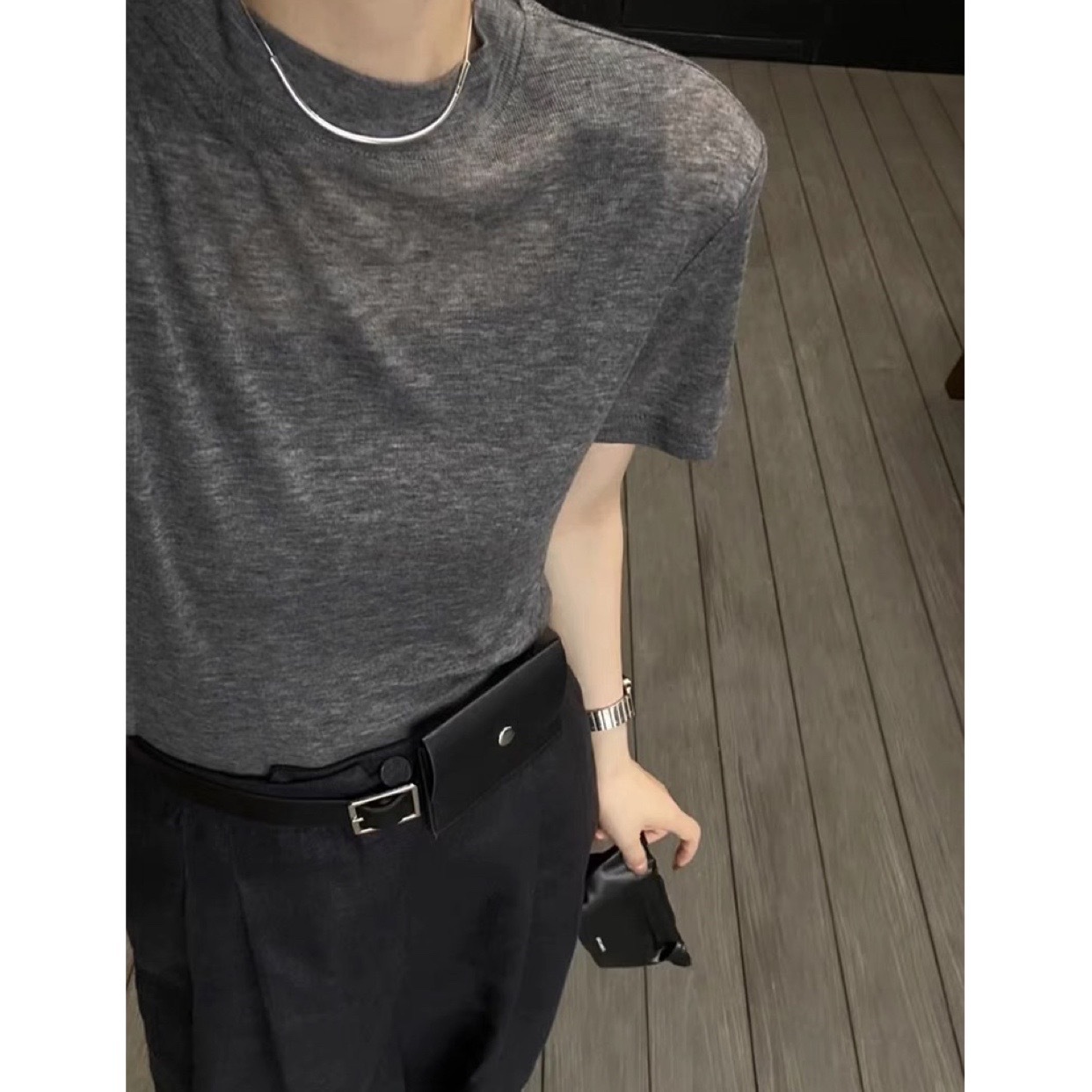 텐셀 마스크 반팔 티셔츠 여성 2024 년 여름 새로운 한국 스타일 패션 슬리밍 심플 솔리드 컬러 티셔츠 라운드 넥 탑