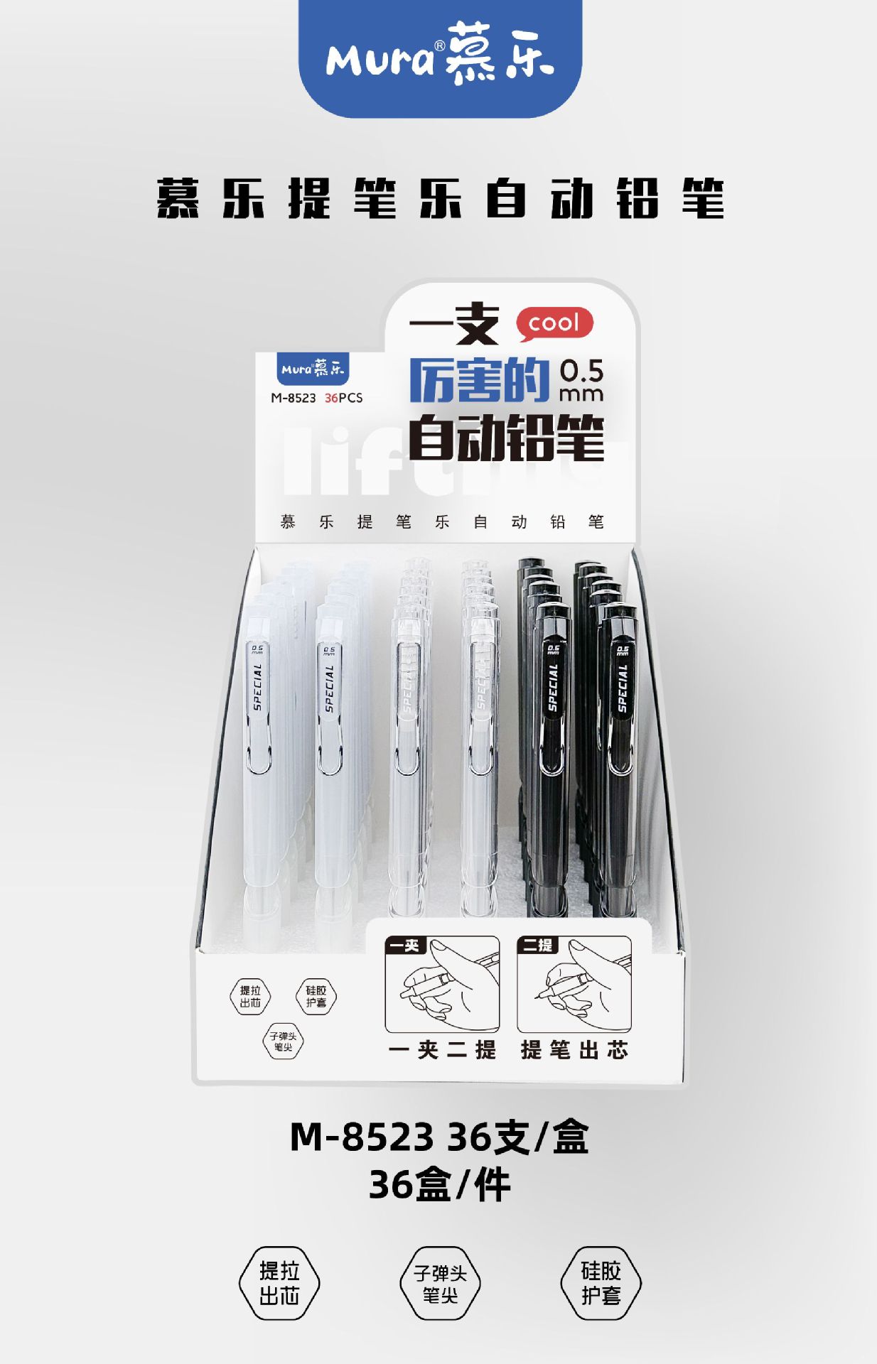 뮬 8523 펜 따기 르 기계 연필 간단한 학생 문구 높은 색 가치 학생 회화 활동 연필 0.5