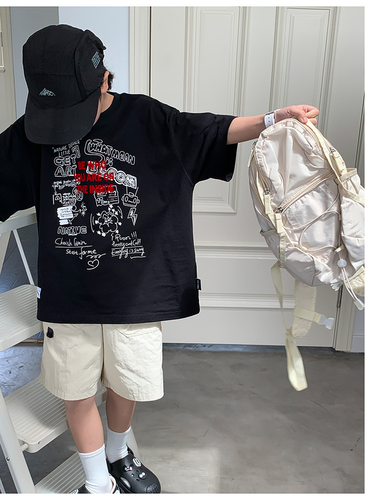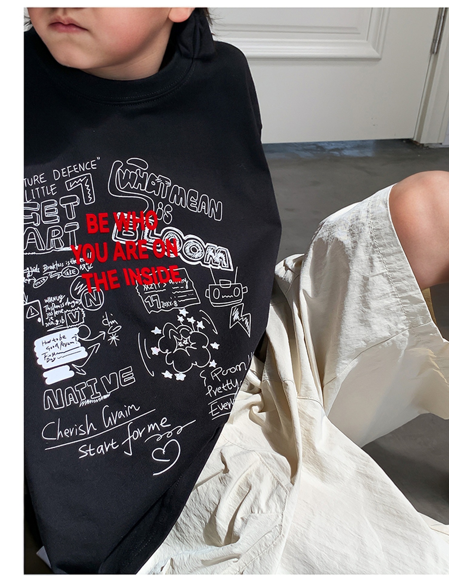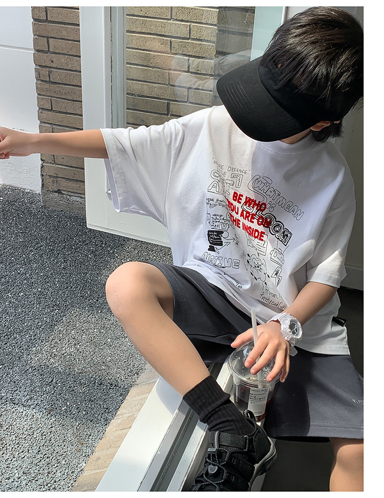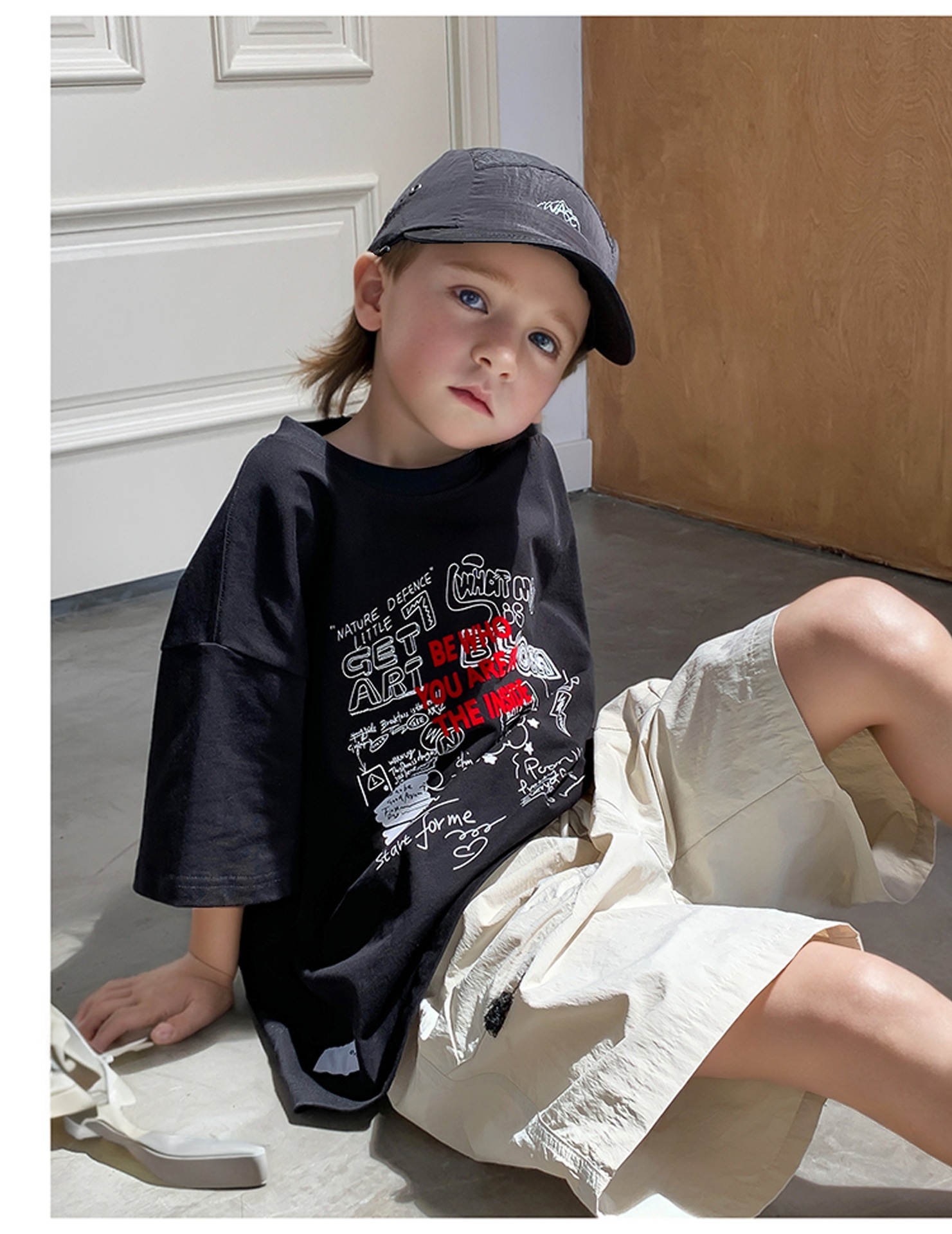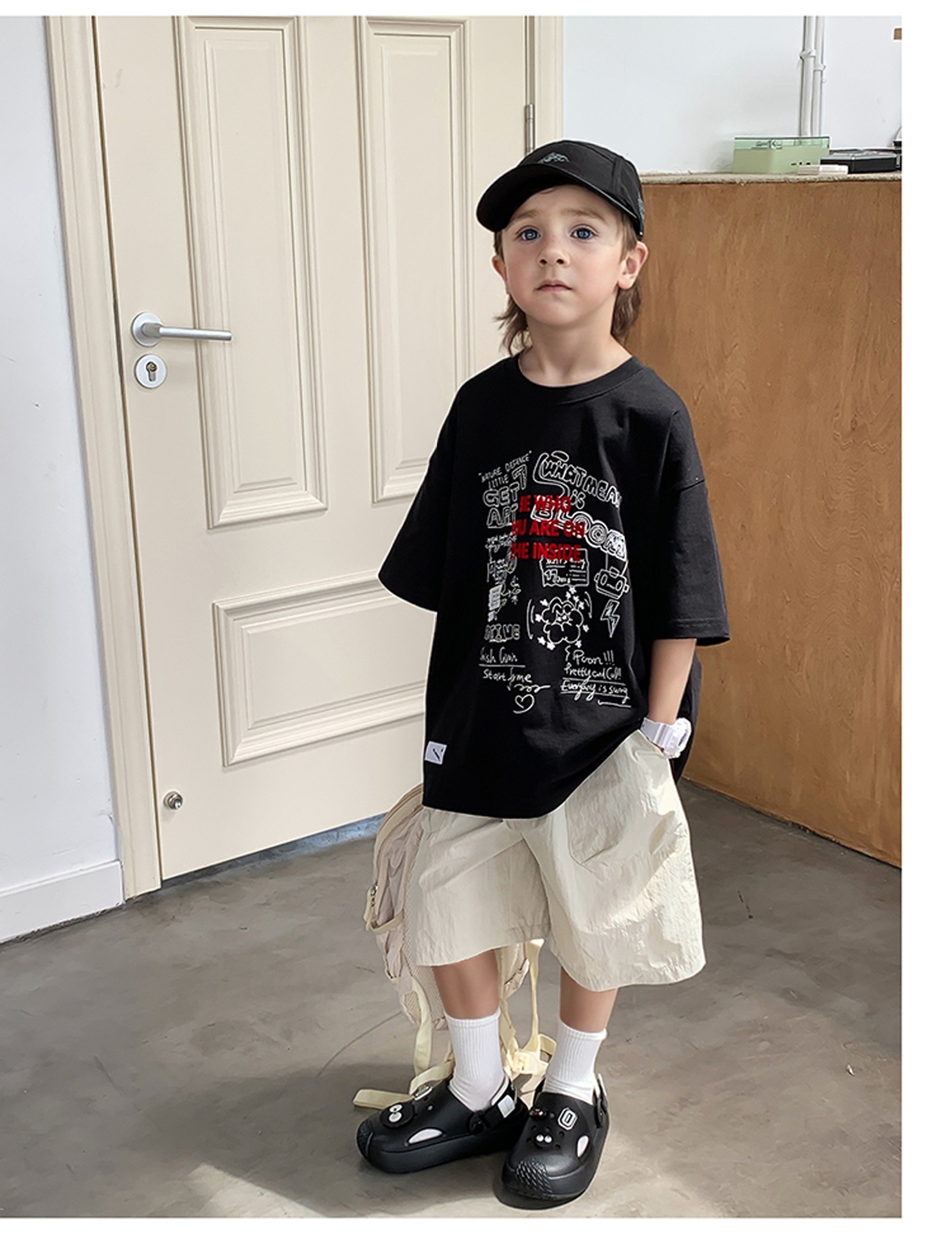 2025 소년과 소녀를위한 새로운 여름 옷 라운드 넥 티셔츠 반팔 유행 어린이 반팔 한국 스타일 베이비 탑 남성 유행스토어 가기