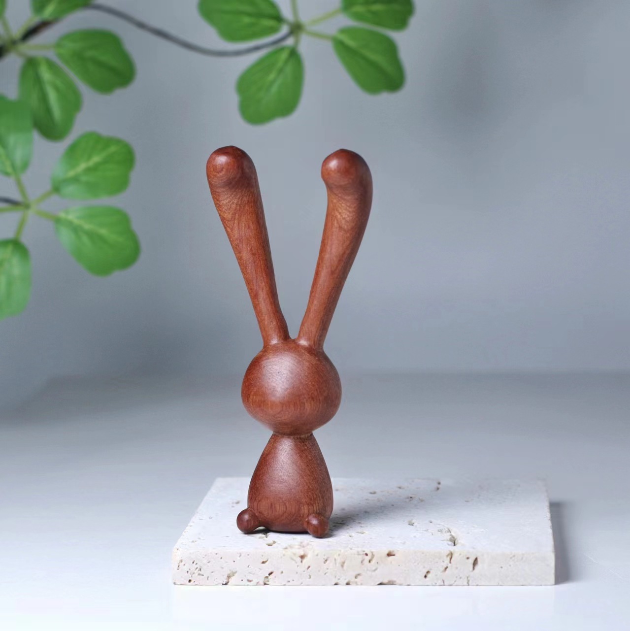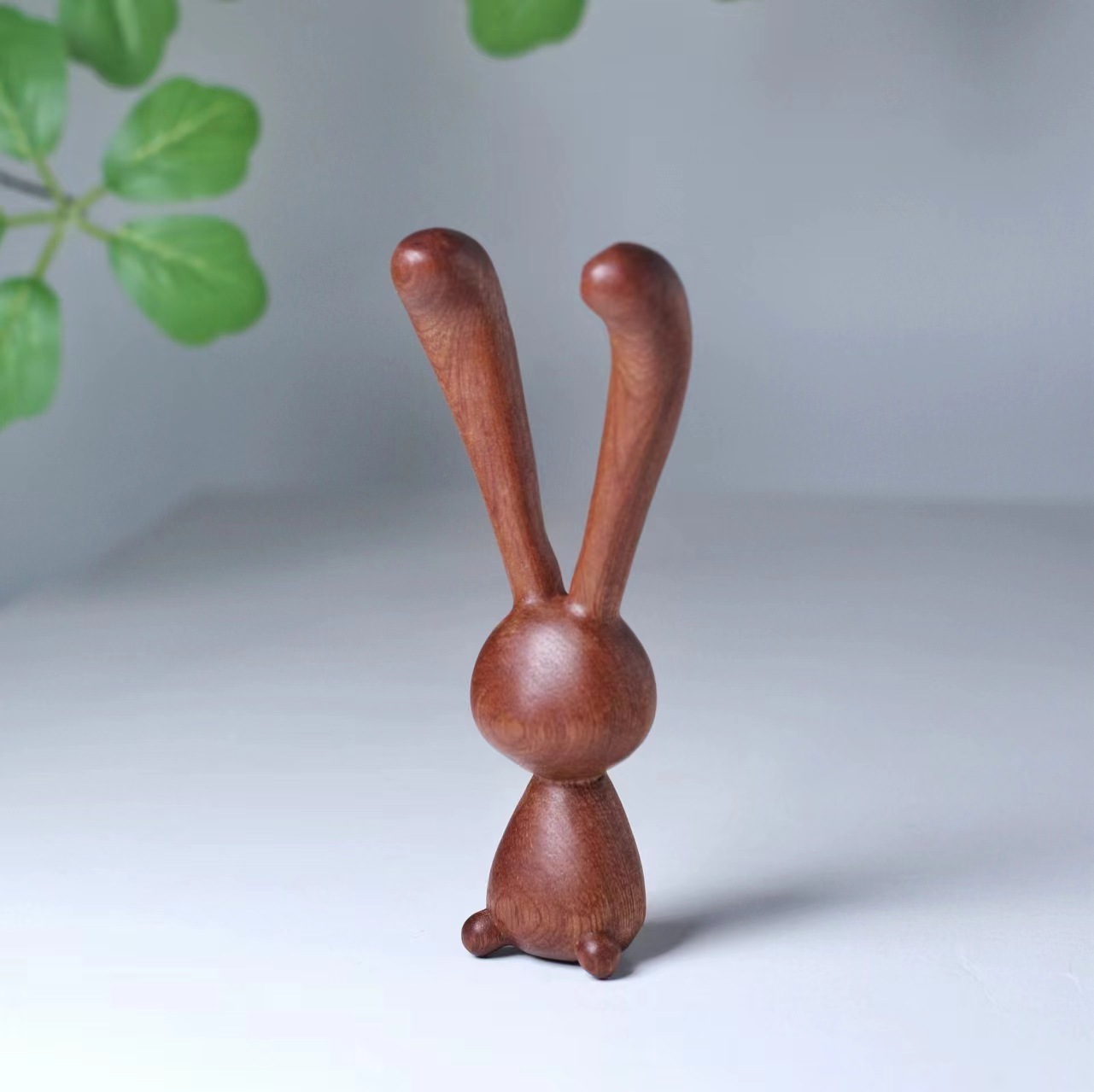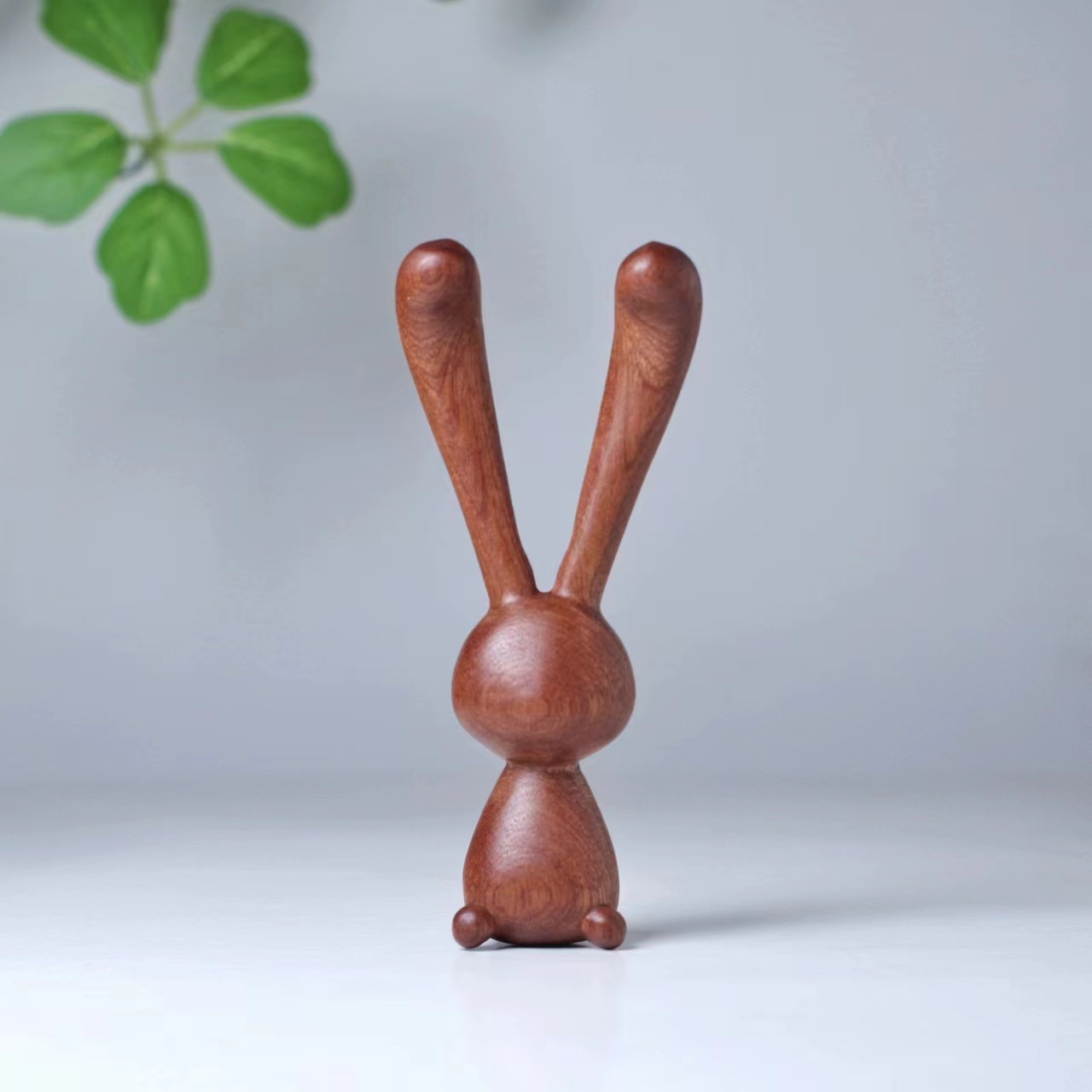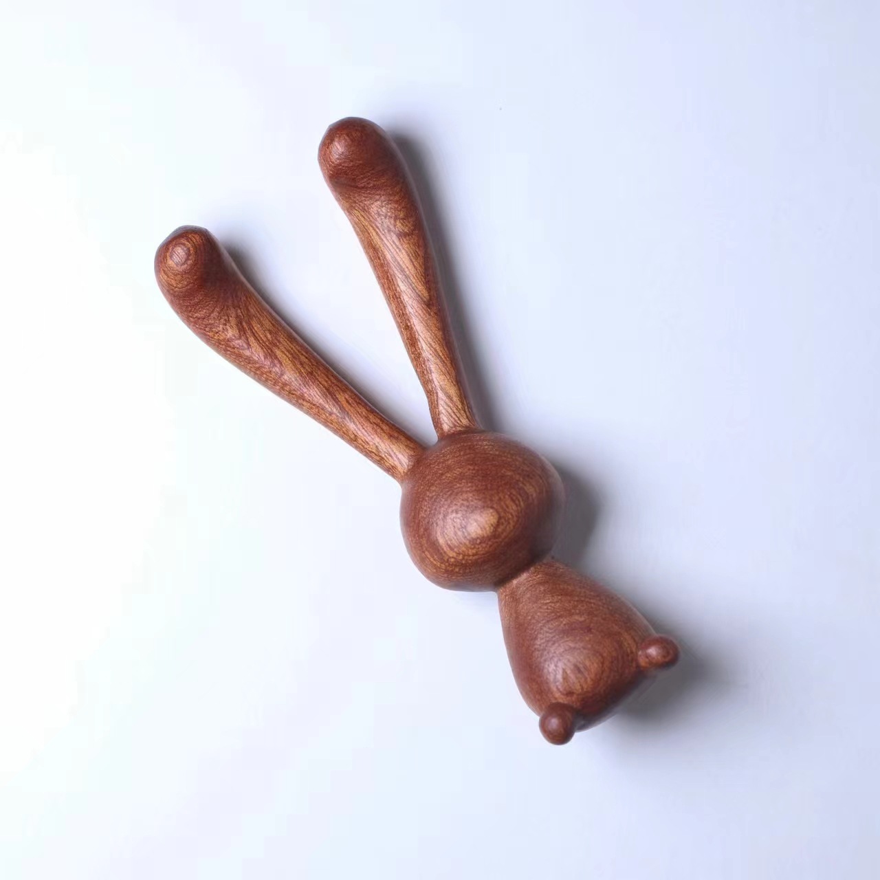 자연 백단 창조적 인 작은 장식품 작은 토끼 모양 마사지 스틱 턱 라인을 눌러 사원 생일 선물