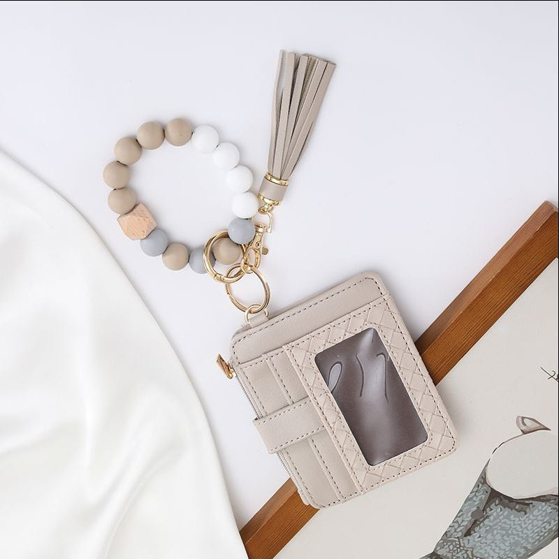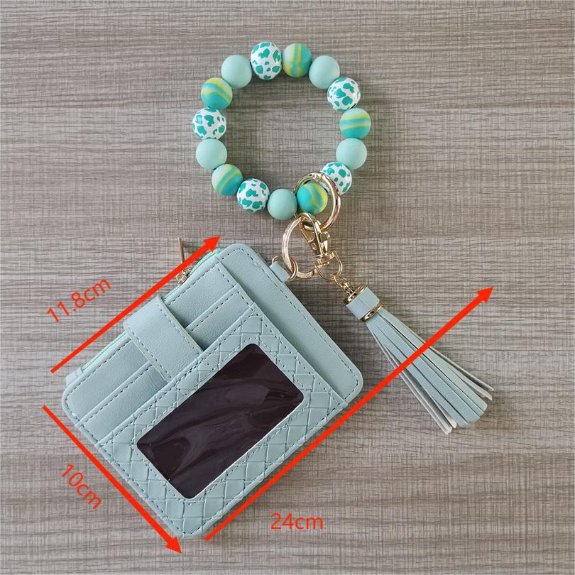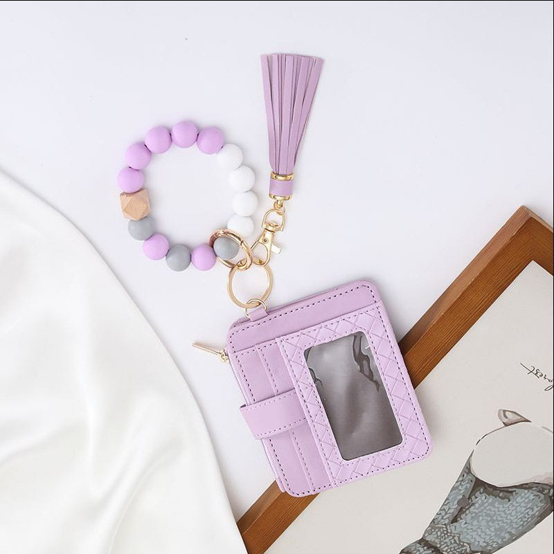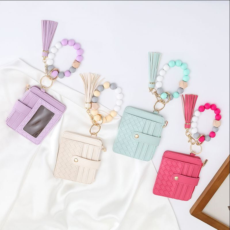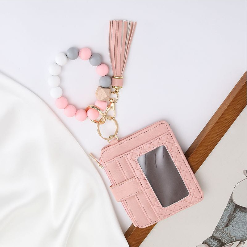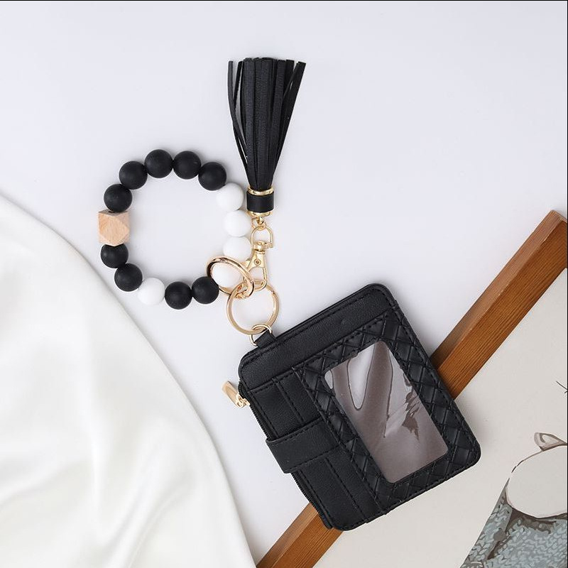 국경을 넘는 인기 상품 실리콘 비즈 손목 다층 대용량 동전 지갑 키체인 PU 프린지 팔찌 지퍼백스토어 가기