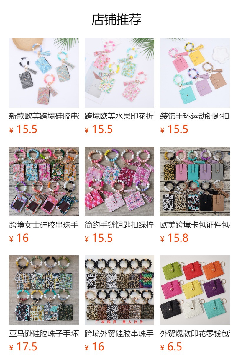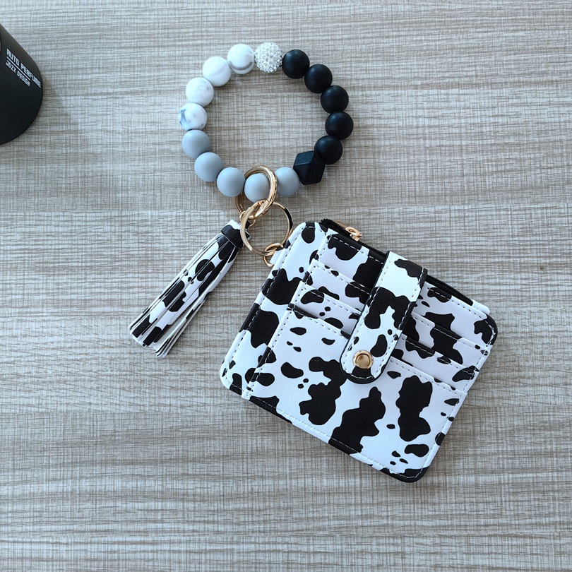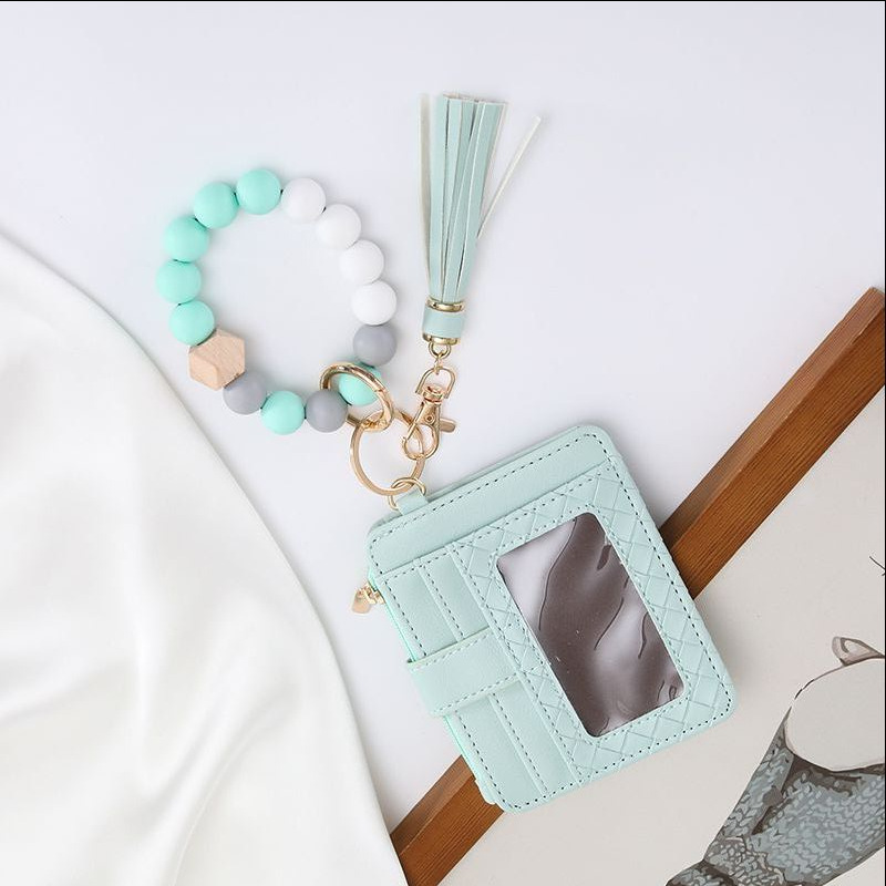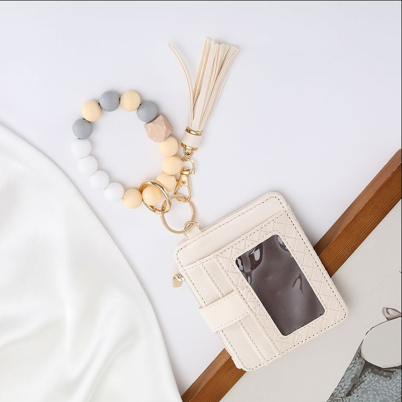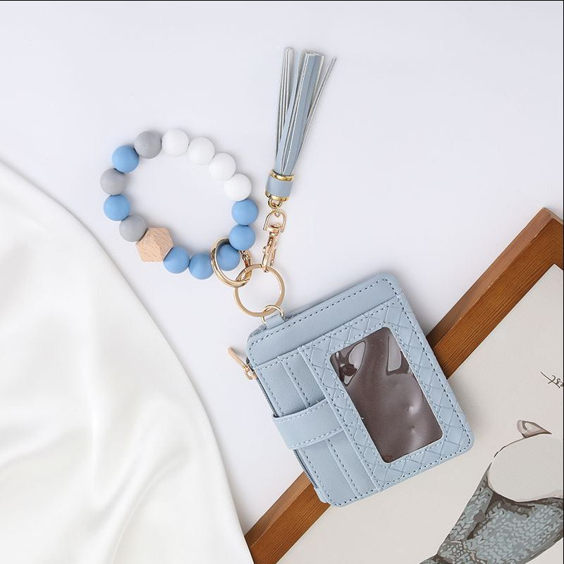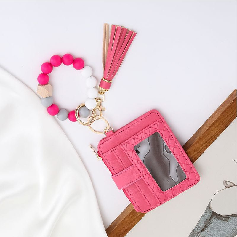 국경을 넘는 인기 상품 실리콘 비즈 손목 다층 대용량 동전 지갑 키체인 PU 프린지 팔찌 지퍼백스토어 가기