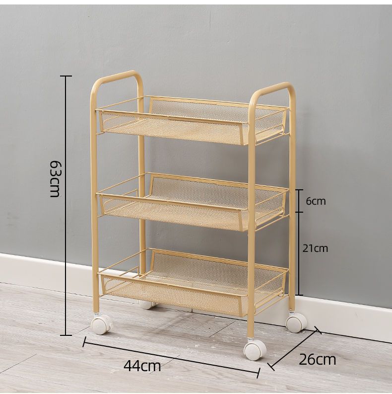 • 3 층 탄소 강철 빨간 바구니 베이지 폴 트롤리