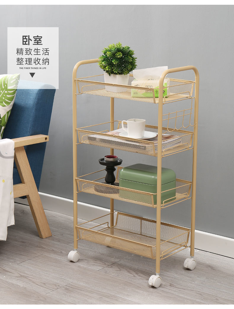 손으로 밀어 이동식 스토리지 랙 바닥 서 어린이 장난감 스토리지 랙 가정용 간단한 스토리지 계층화 된 스낵 트롤리