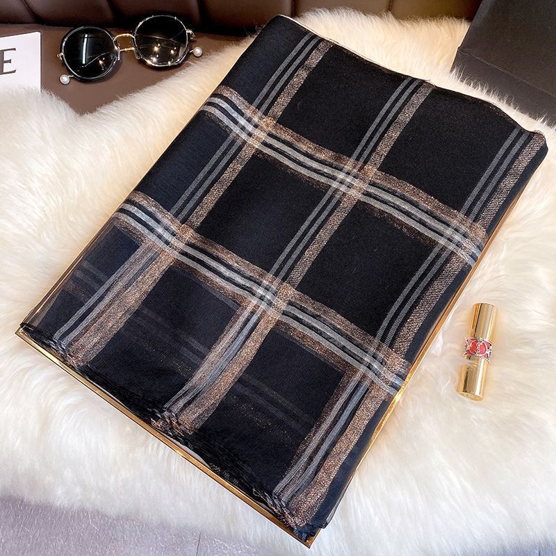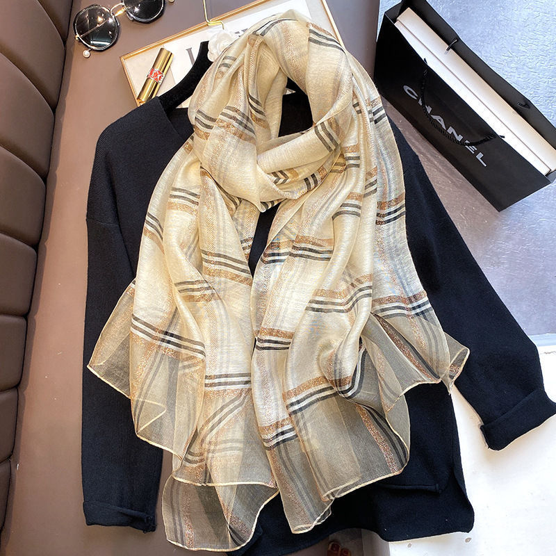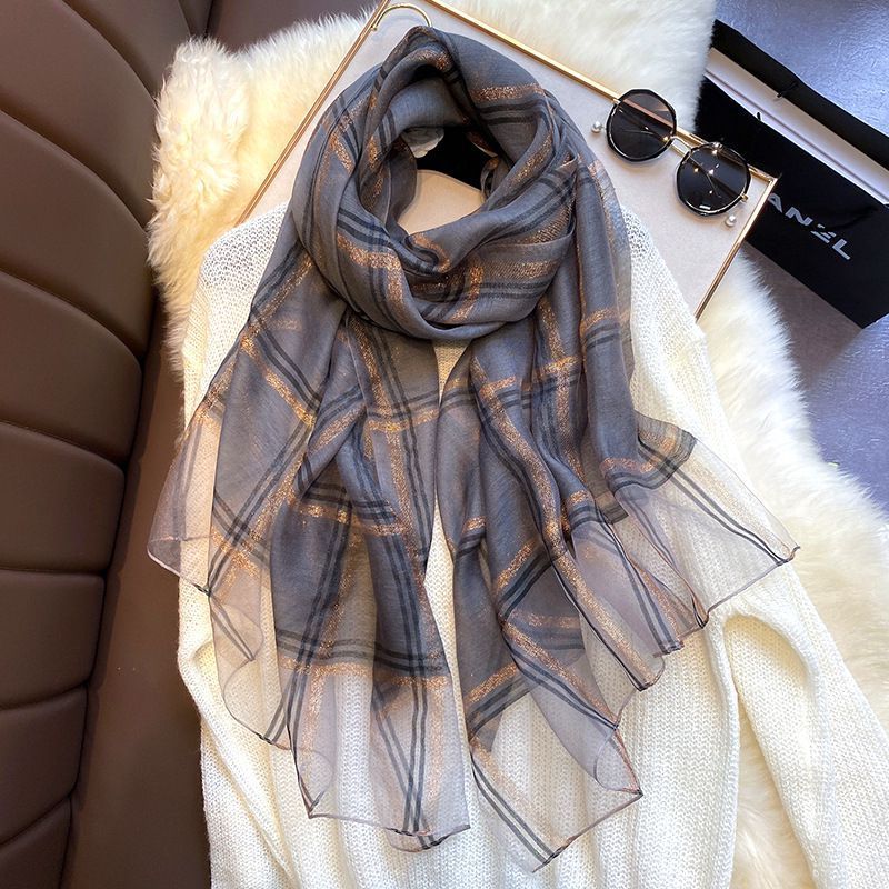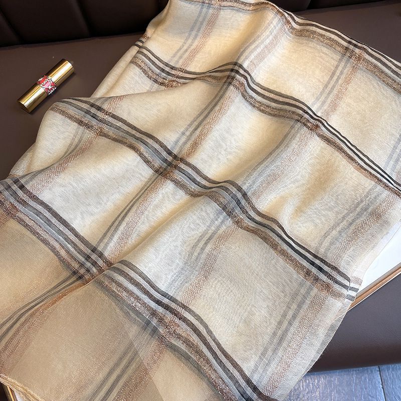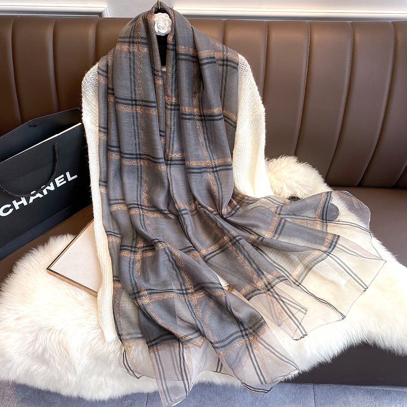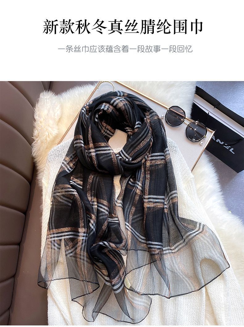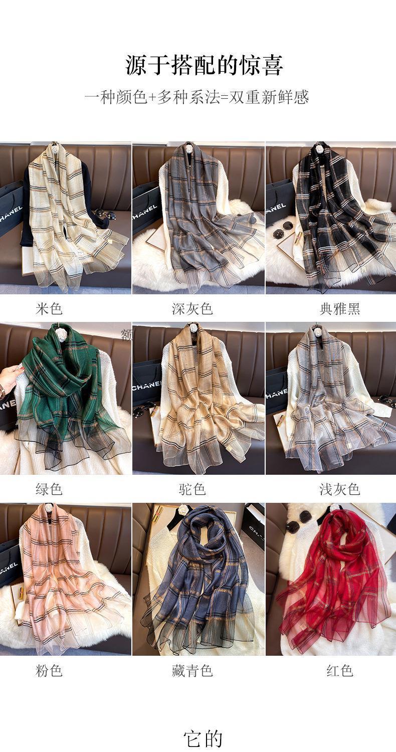 가을과 겨울 새로운 영국 프놈펜 격자 무늬 실크 울 스카프 여성 기질 뽕나무 실크 이중 목적 목도리 따뜻한 거즈