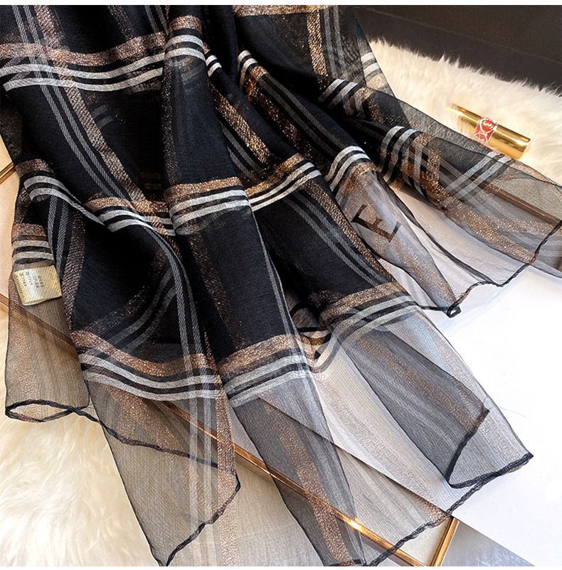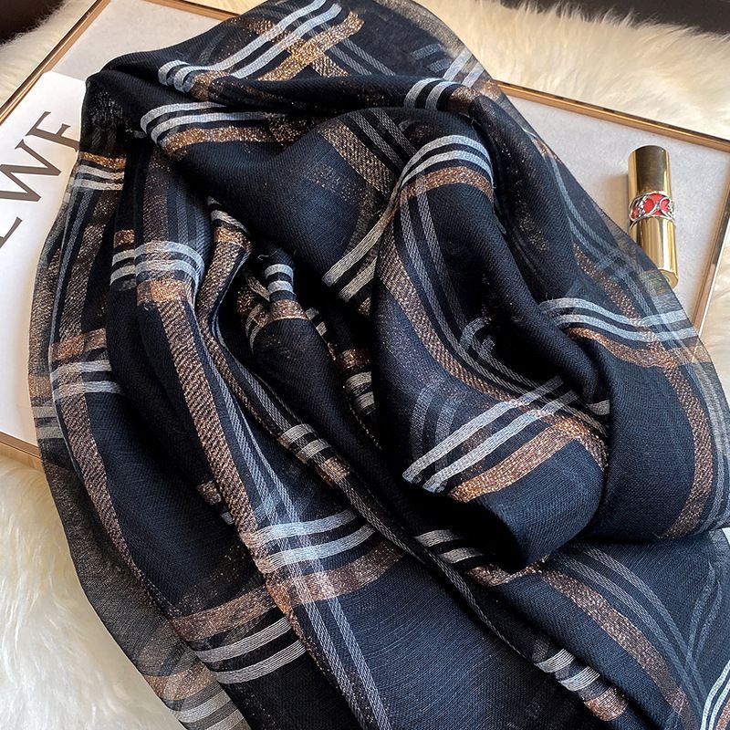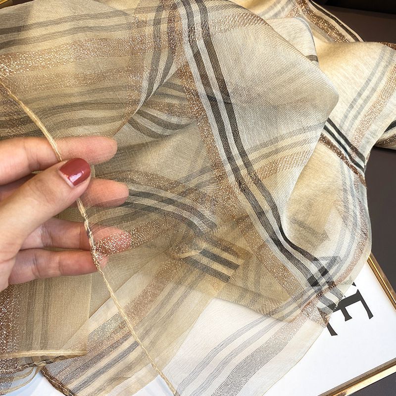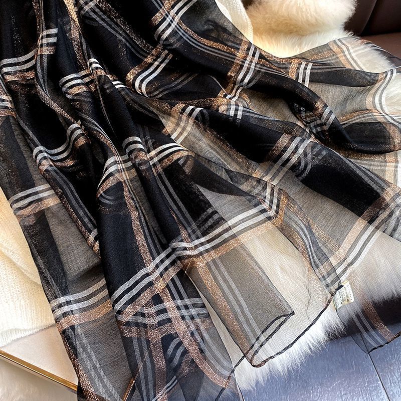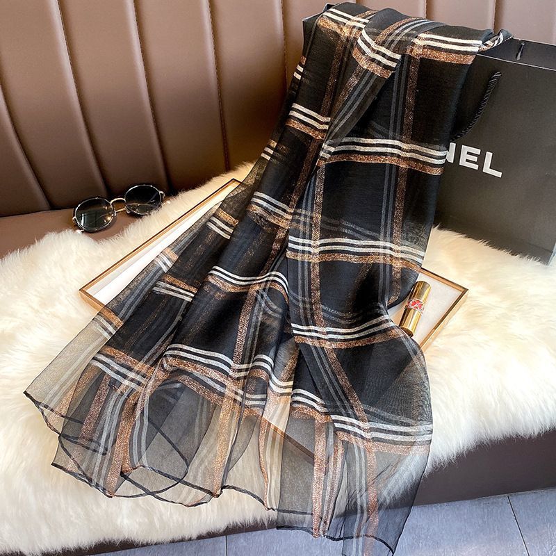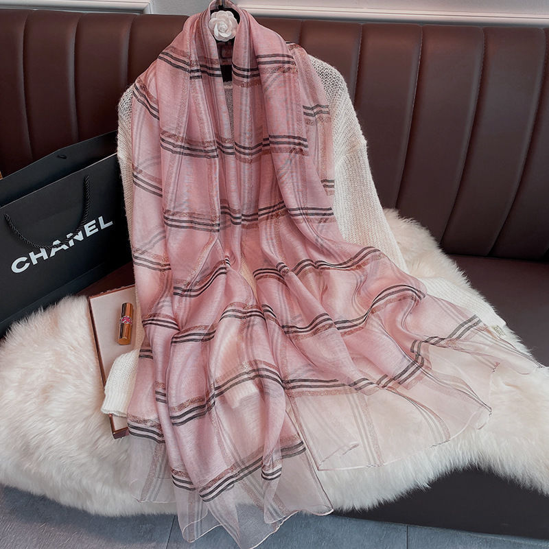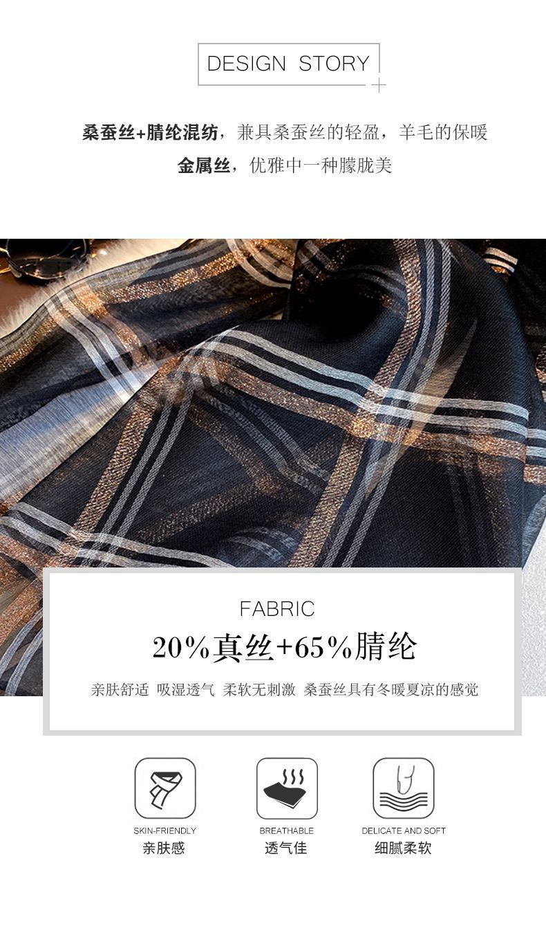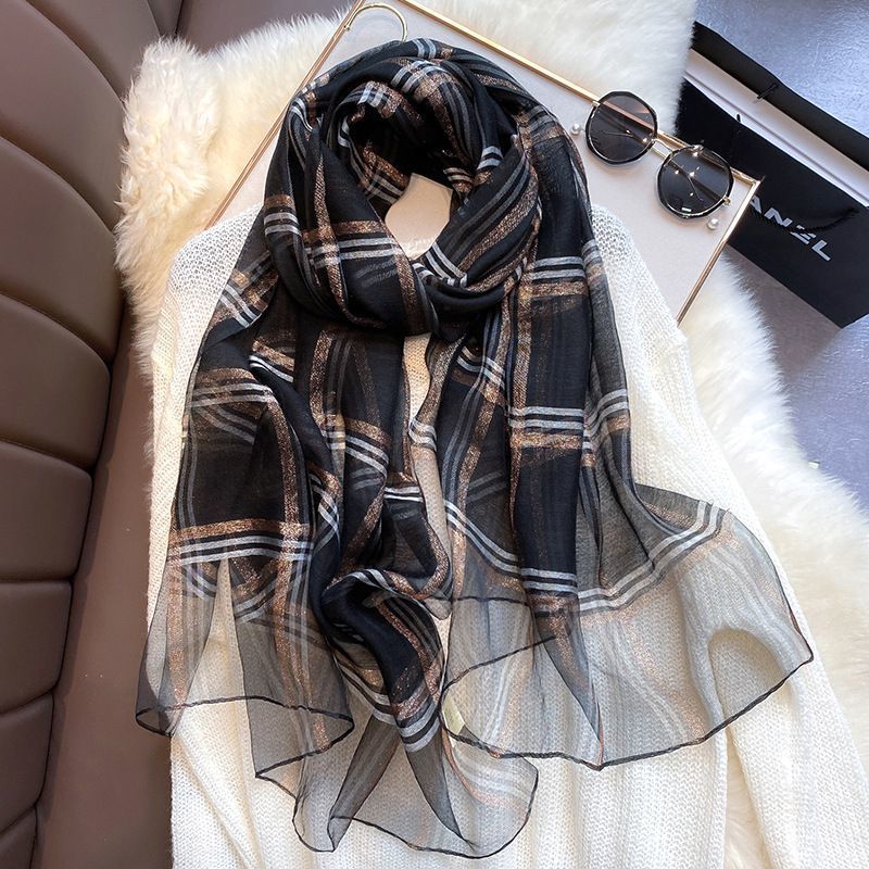 가을과 겨울 새로운 영국 프놈펜 격자 무늬 실크 울 스카프 여성 기질 뽕나무 실크 이중 목적 목도리 따뜻한 거즈