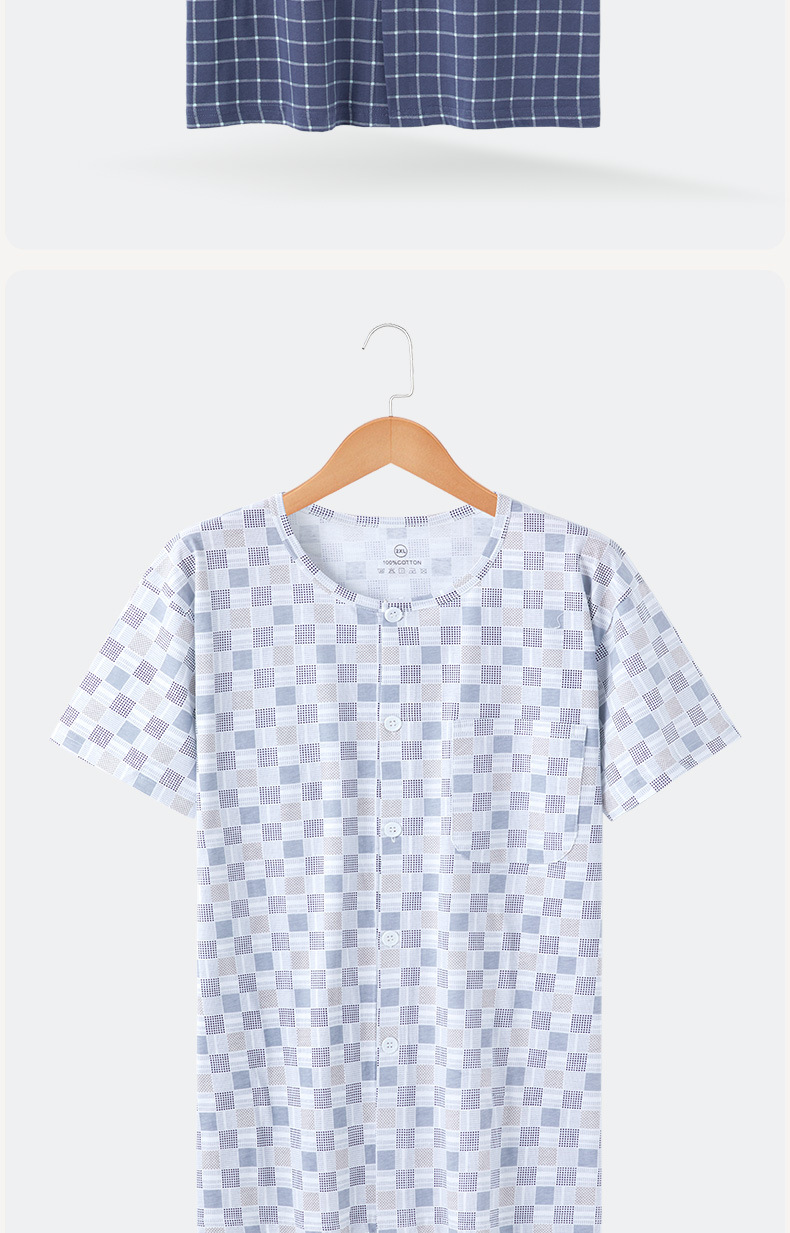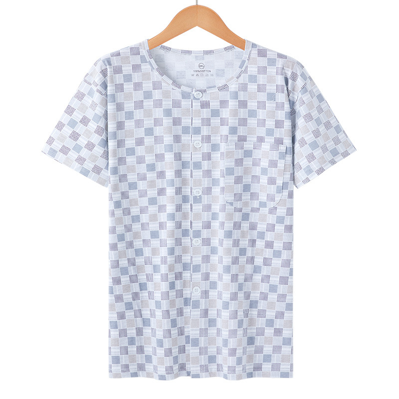 노인을위한 여름 얇은 에어컨 옷을위한 노인의 순수한면 파자마 반팔 카디건 탑