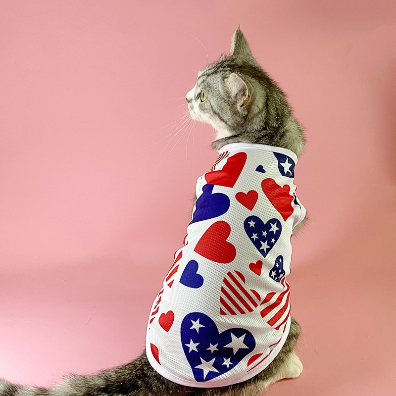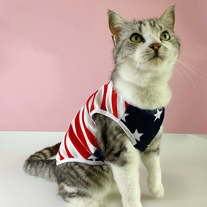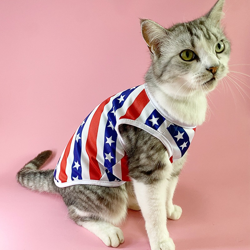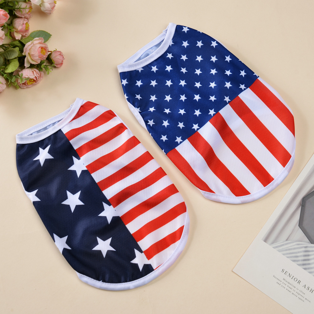 아마존 새로운 여름 유럽과 미국 독립 기념일 깃발 얇은 통기성 조끼 애완 동물 고양이 개 스타 인쇄 조끼