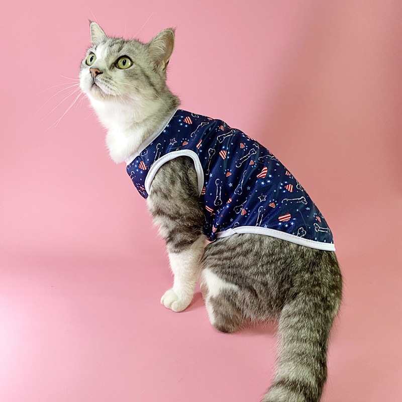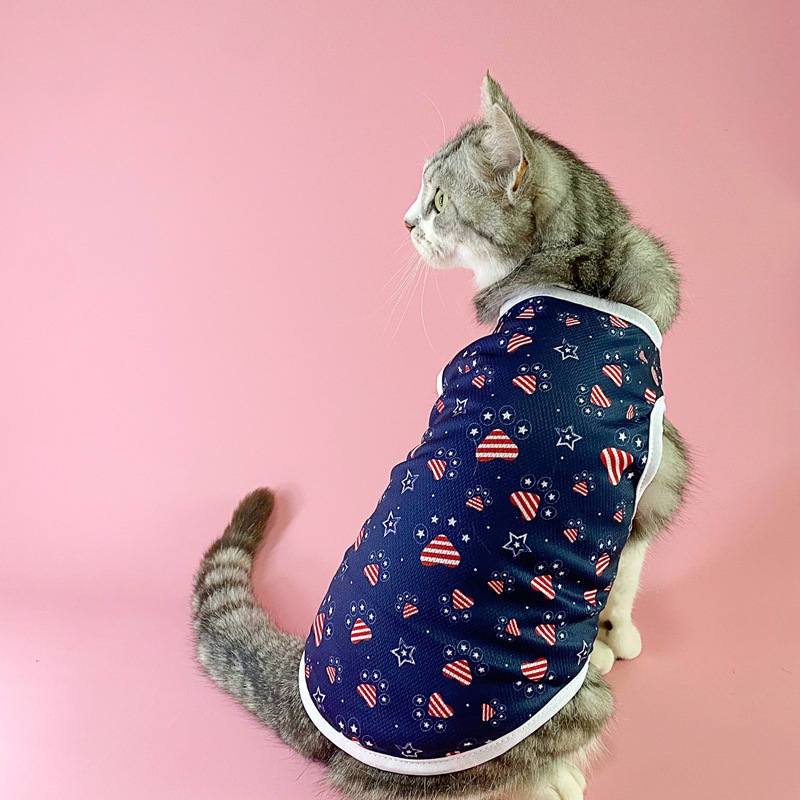 아마존 새로운 여름 유럽과 미국 독립 기념일 깃발 얇은 통기성 조끼 애완 동물 고양이 개 스타 인쇄 조끼스토어 가기