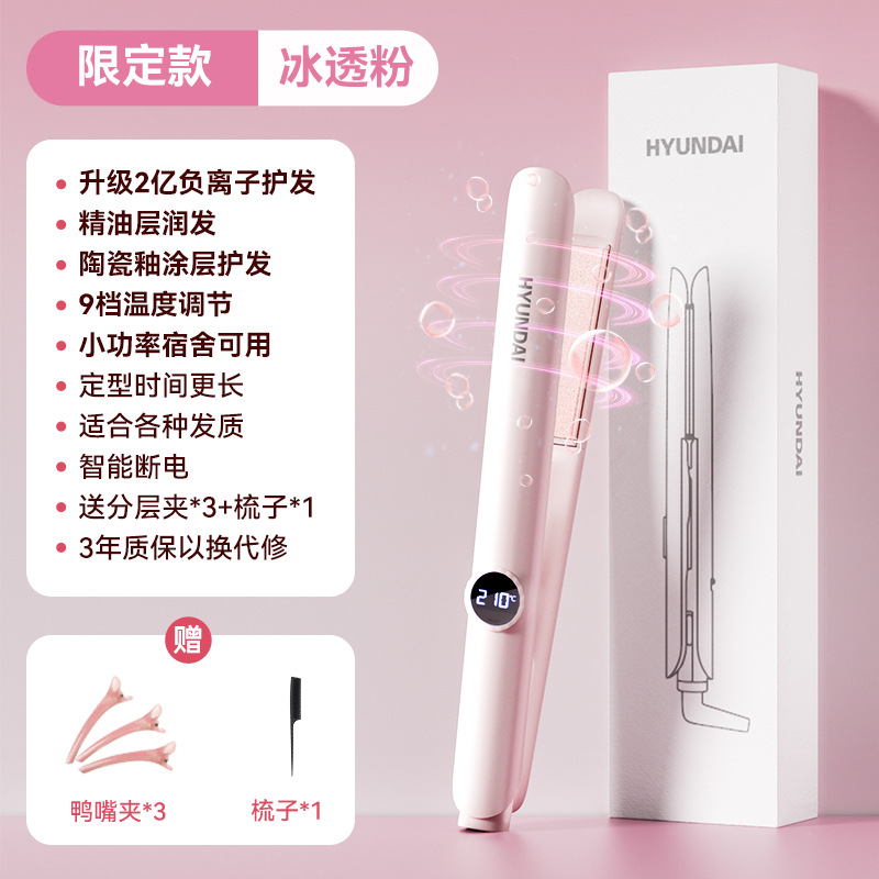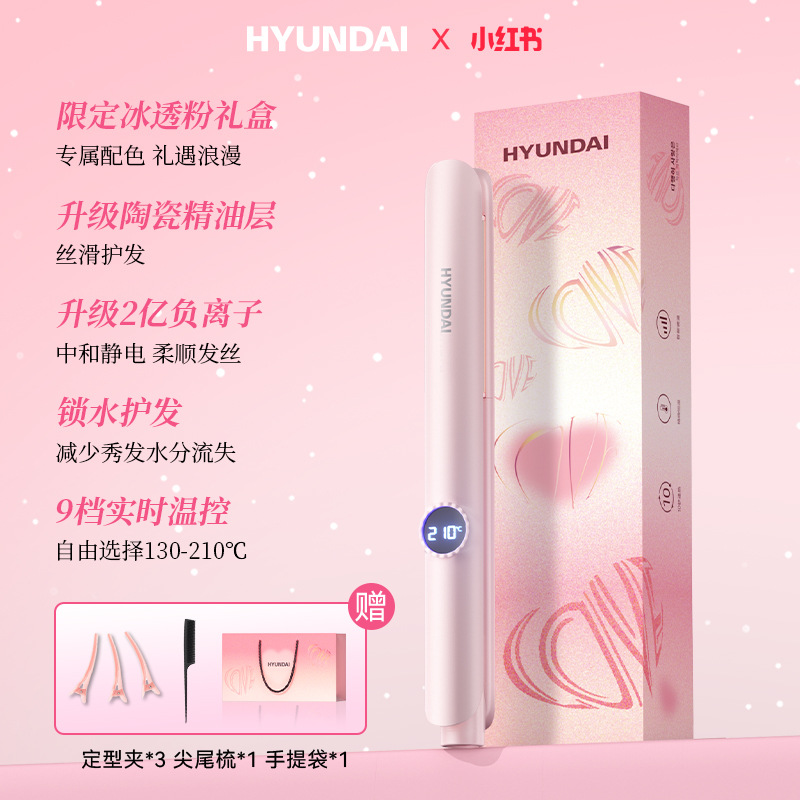 • 【스트레이트너 - 한정 아이스 핑크 선물 세트】 2억 개 음이온 + 업그레이드 세라믹 에센셜 오일 헤어 케어 + 더욱 강력한 고정력 + 3년 품질 보증